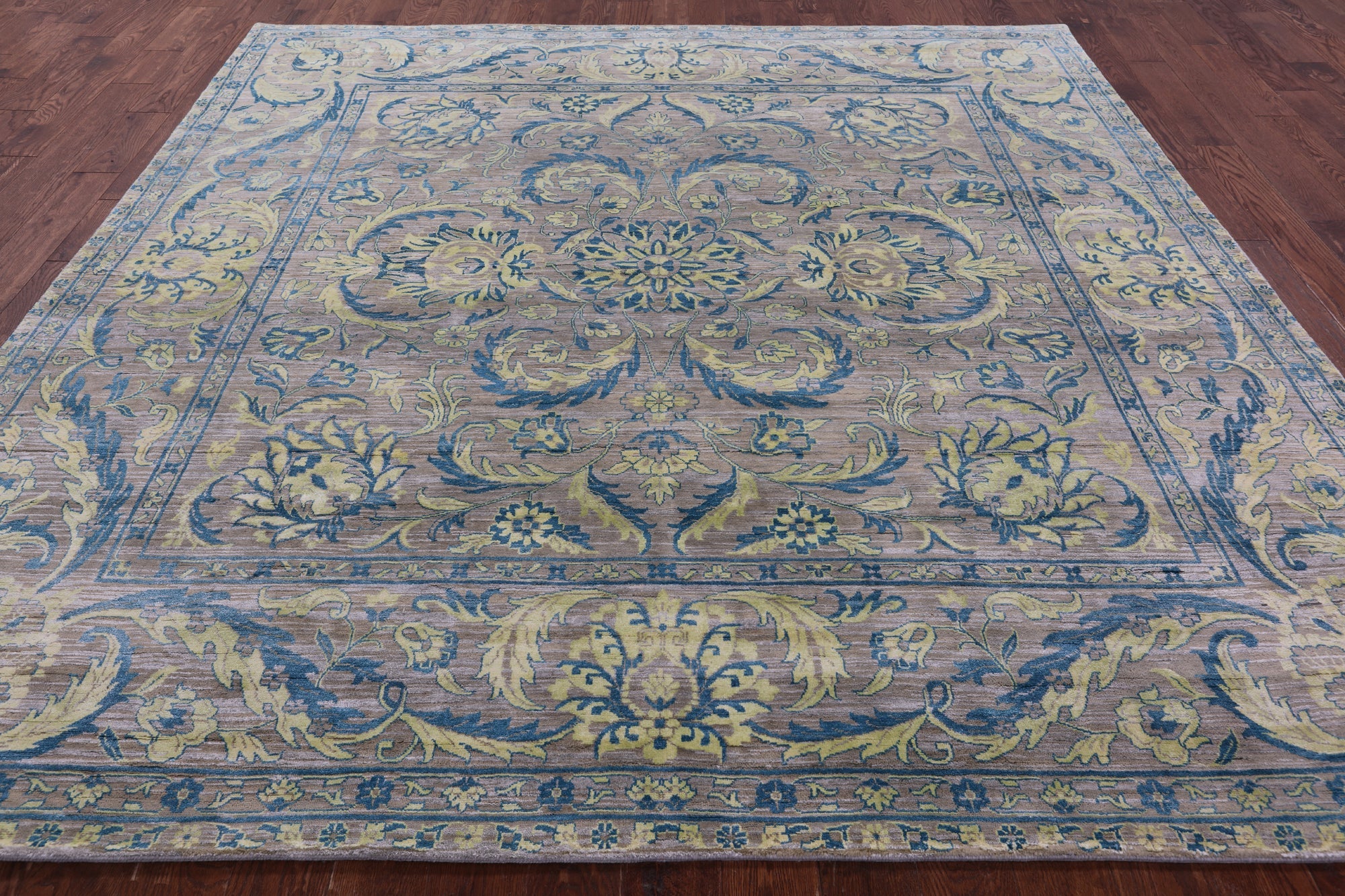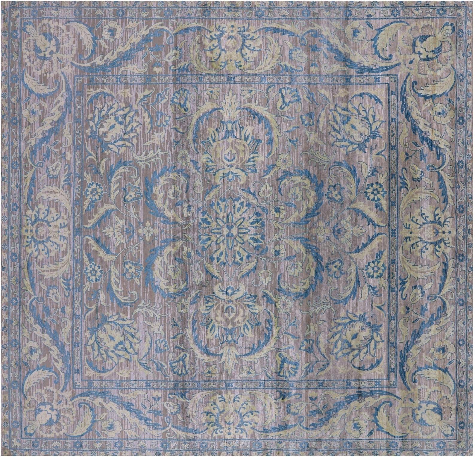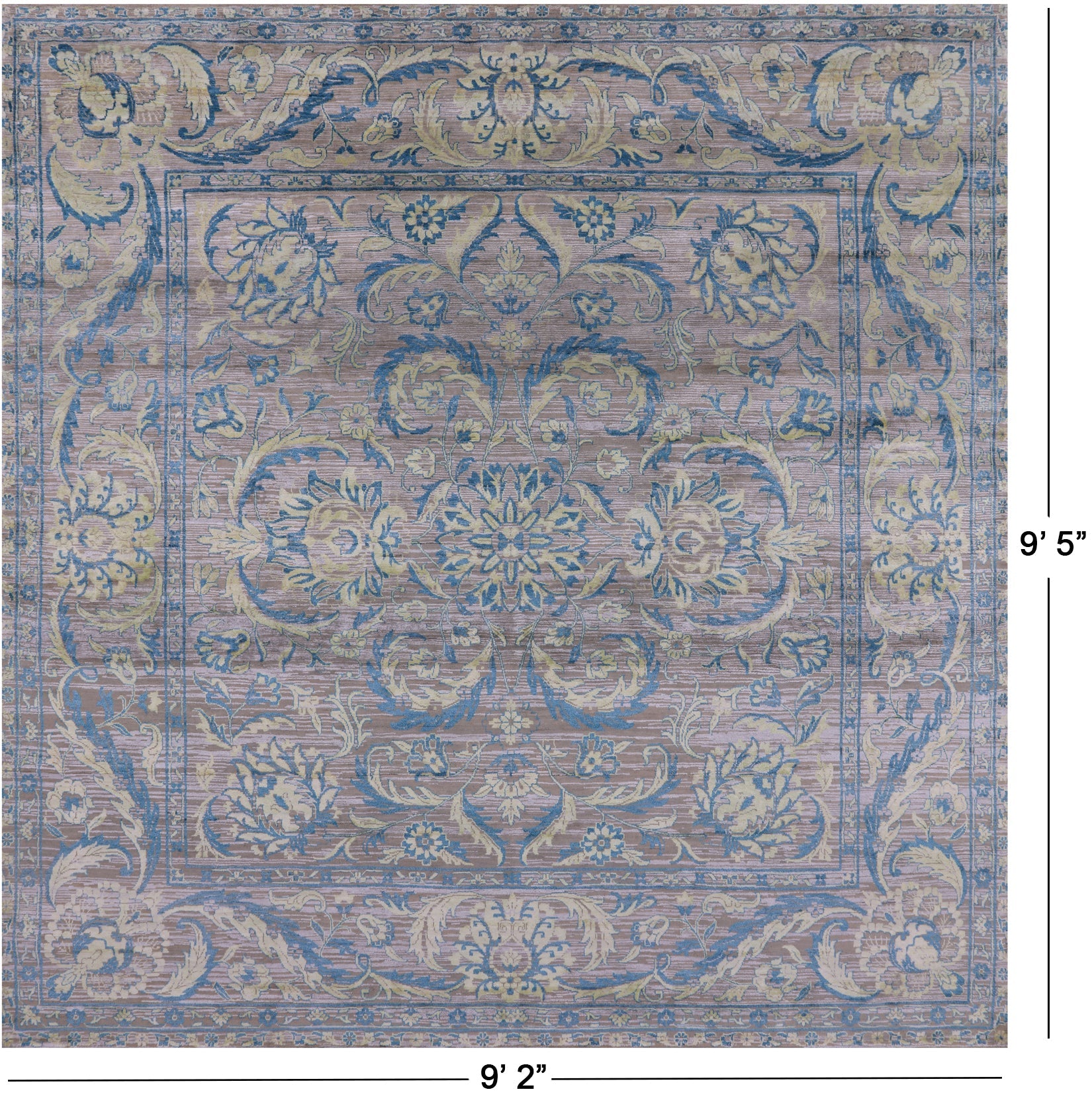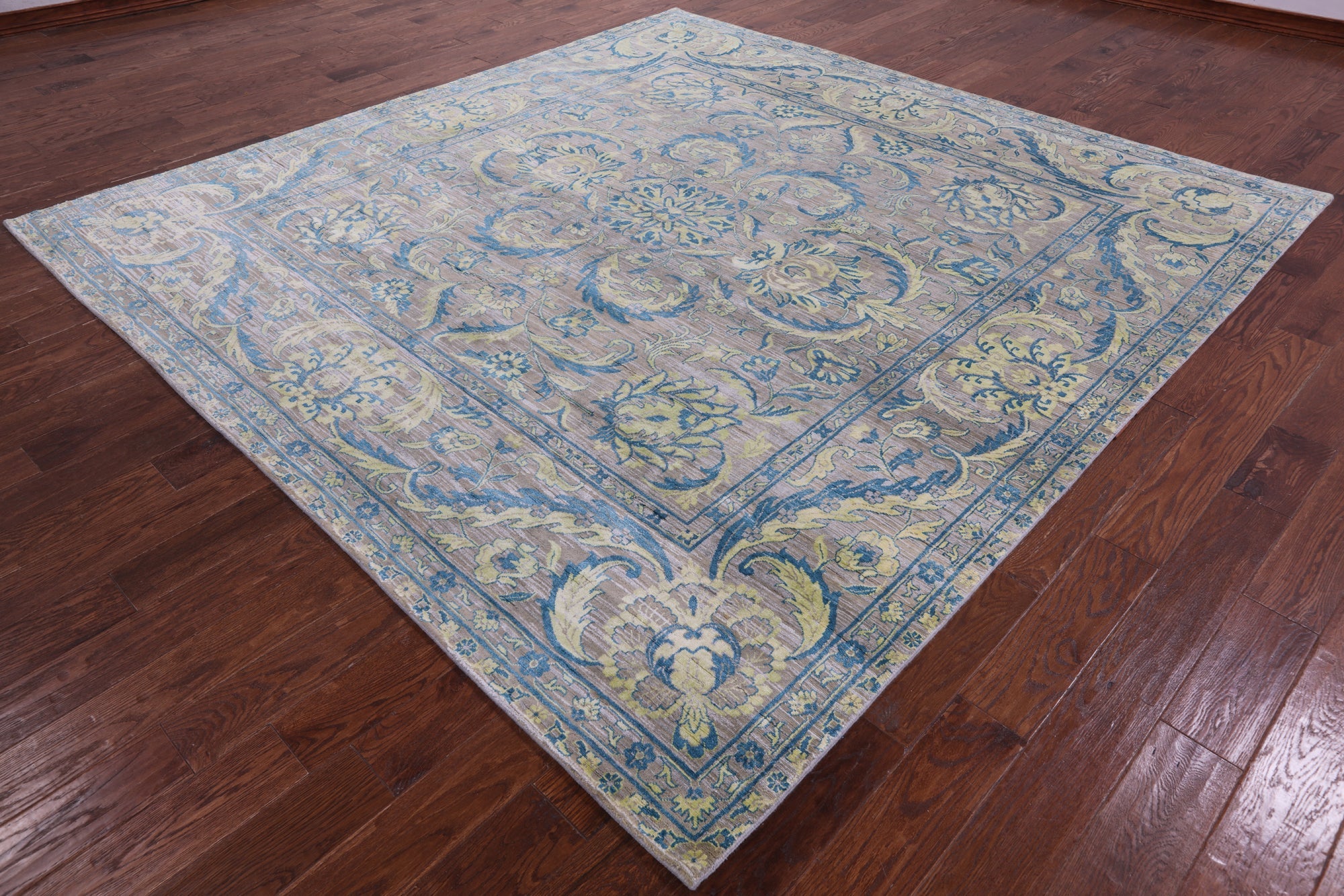 Grey 9' Square Persian Tabriz Hand Knotted Wool Rug - Q21620