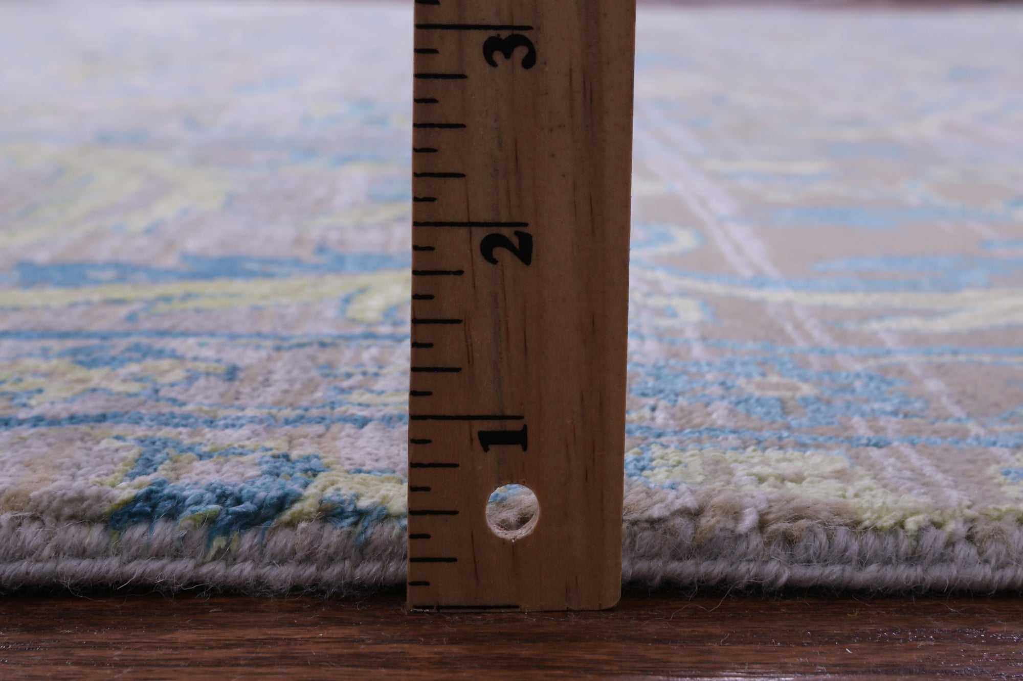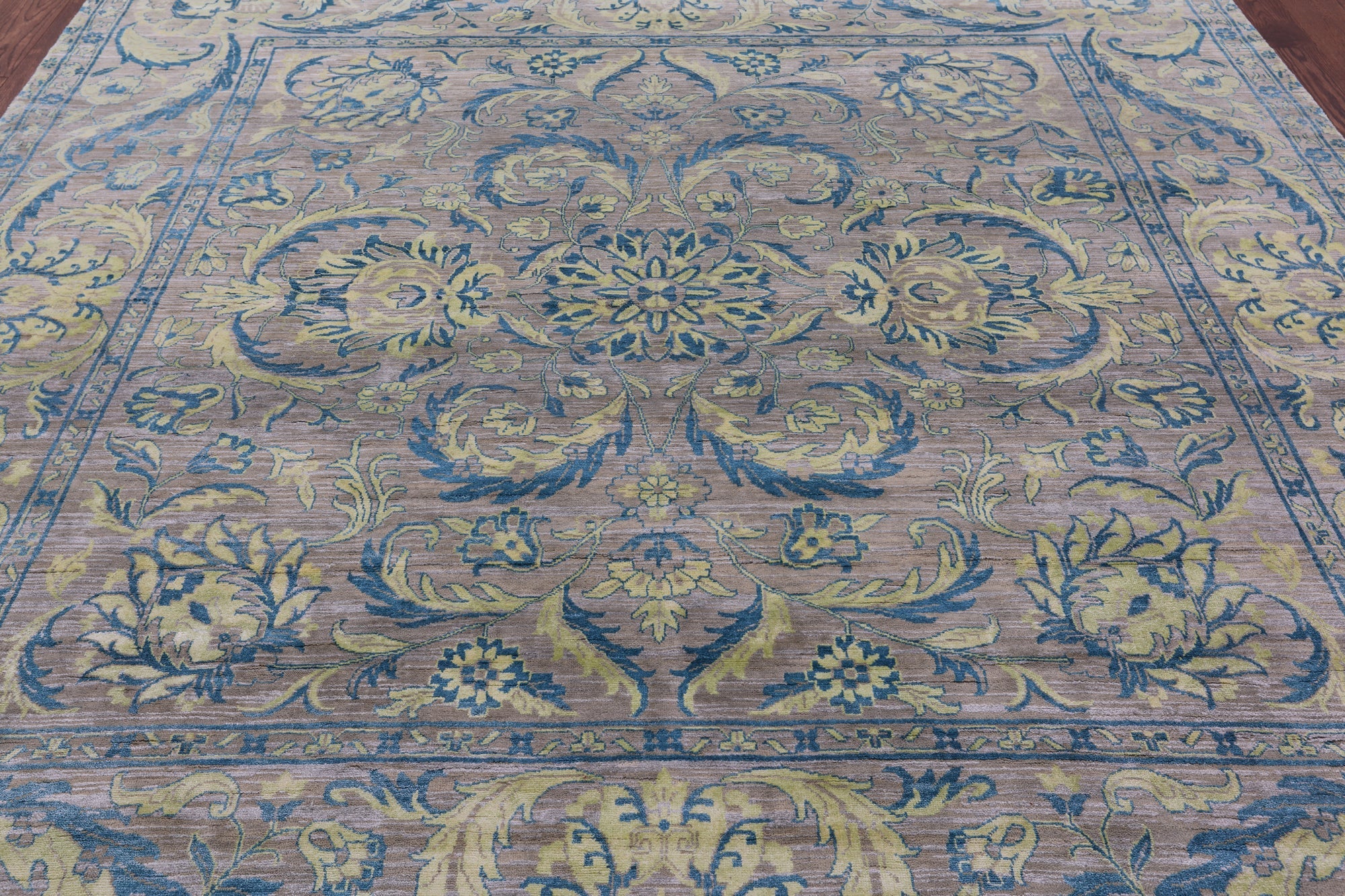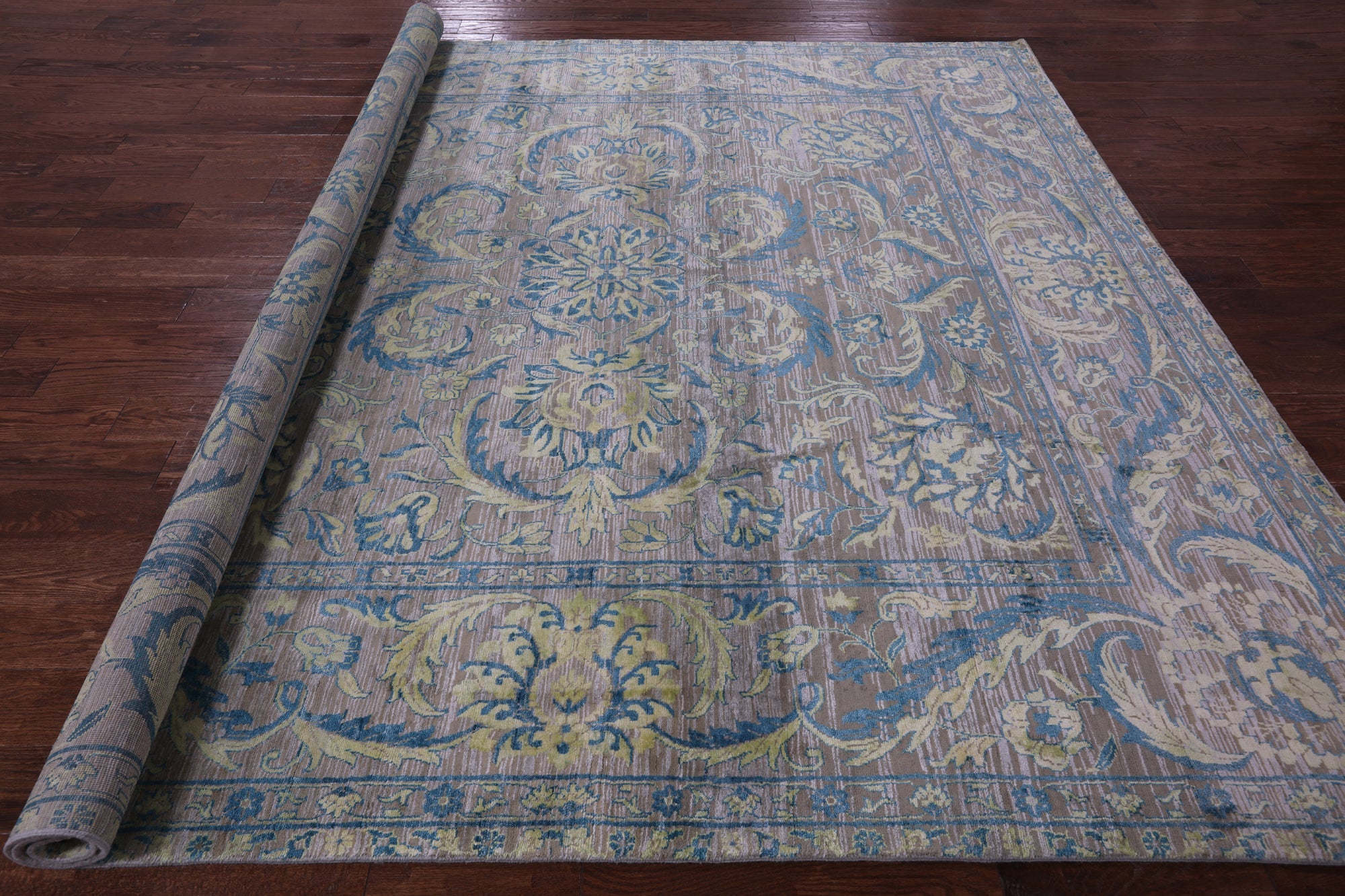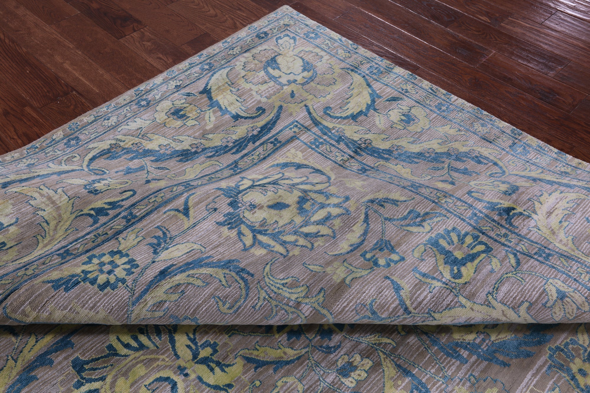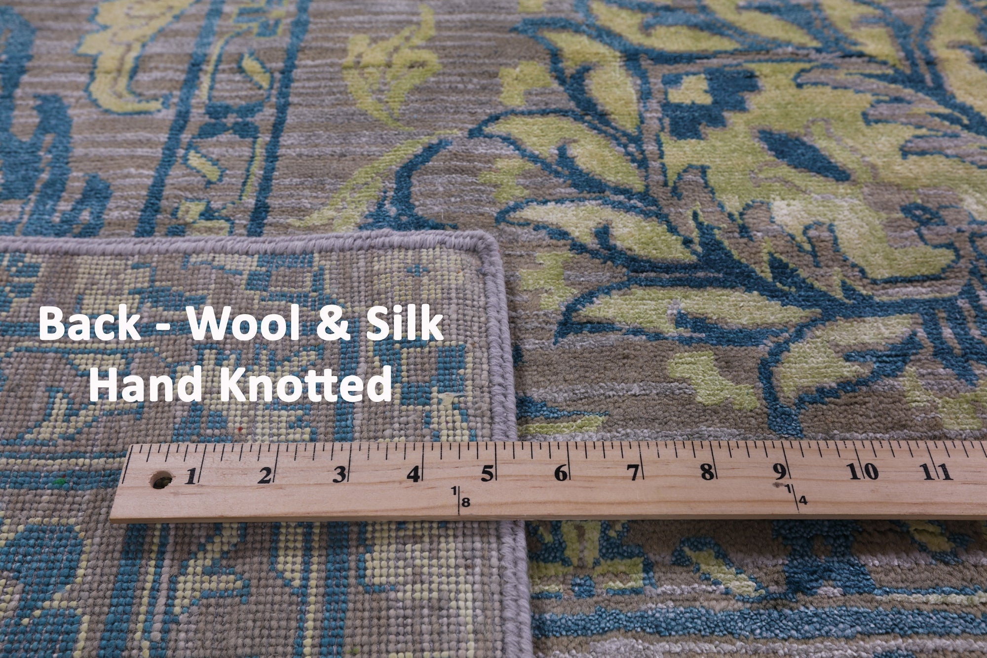 Grey 9' Square Persian Tabriz Hand Knotted Wool Rug - Q21620