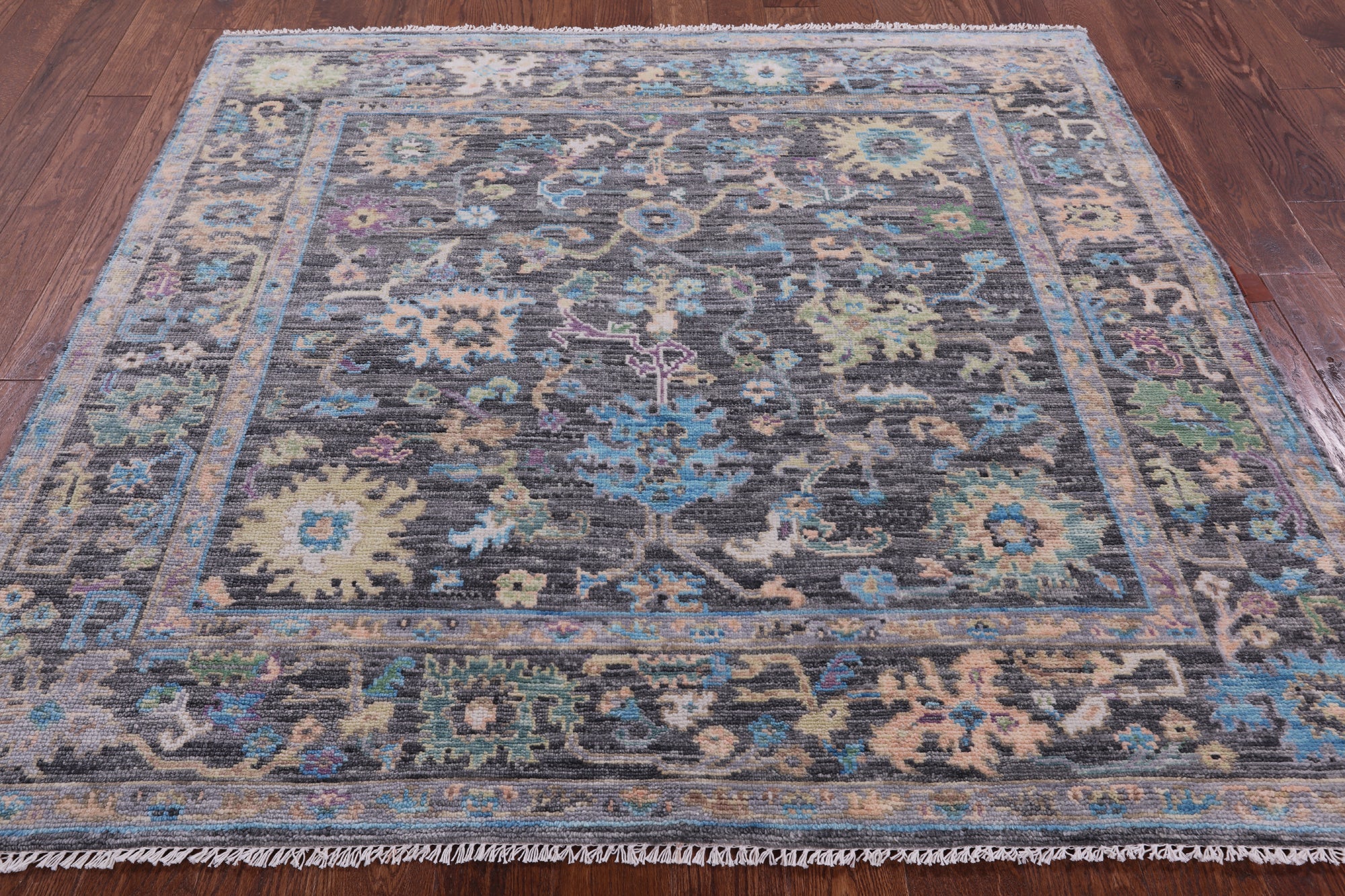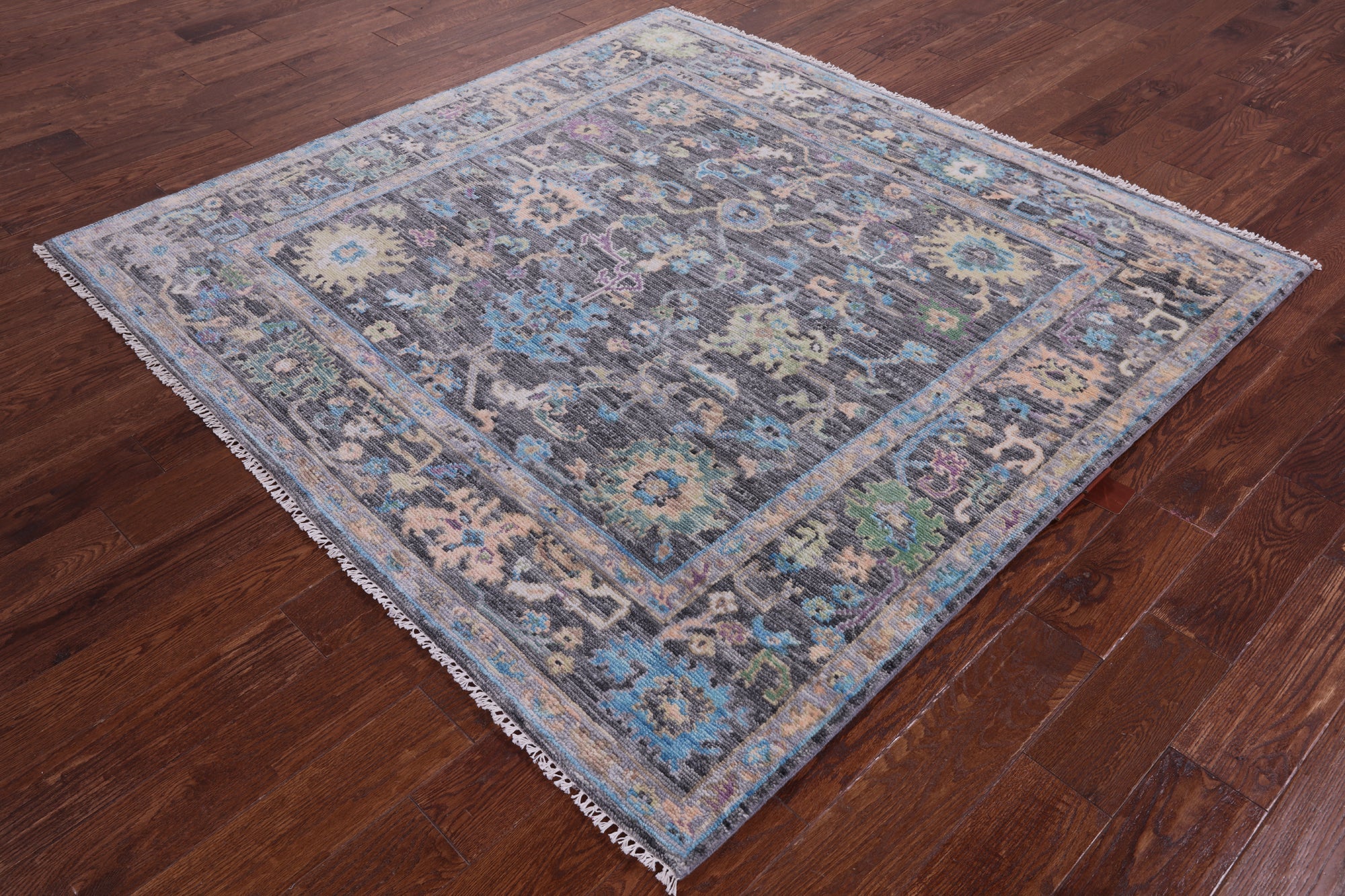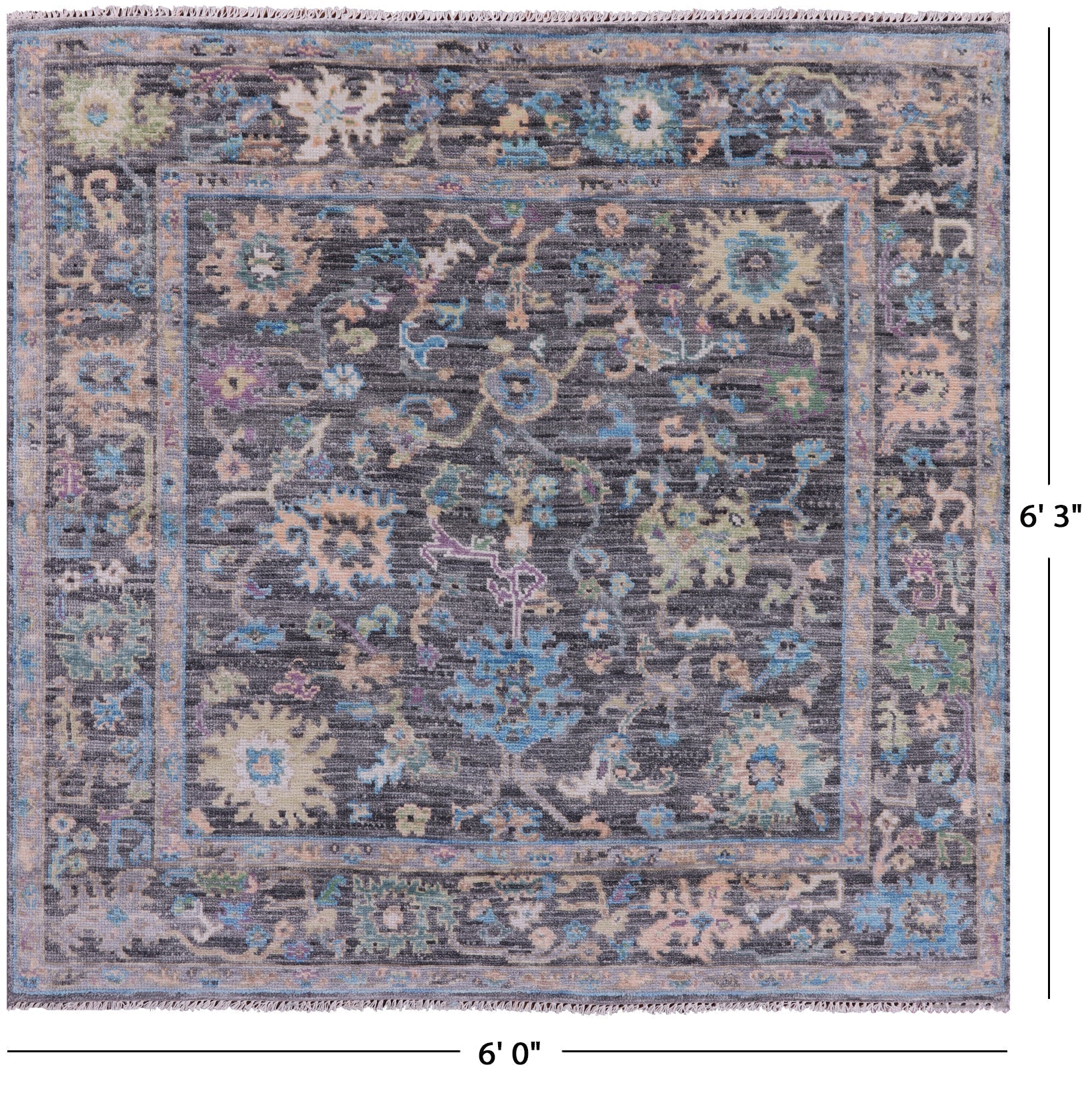 Grey 6' Square Turkish Angora Oushak Hand Knotted Wool Rug - Q13469