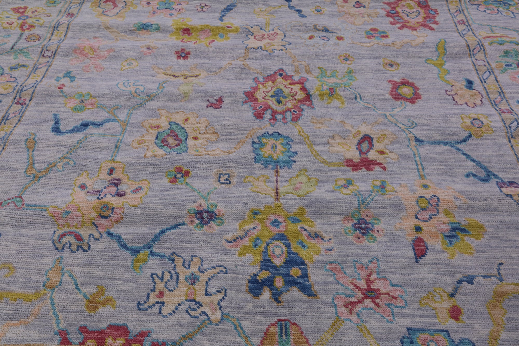 Featuring a classic Oushak design, this rug is adorned with intricate geometric patterns and elegant floral motifs that are reminiscent of the art and architecture of the Ottoman Empire. The soft and plush pile is a pleasure to walk on, making it perfect for use in a bedroom, living room, or dining room.