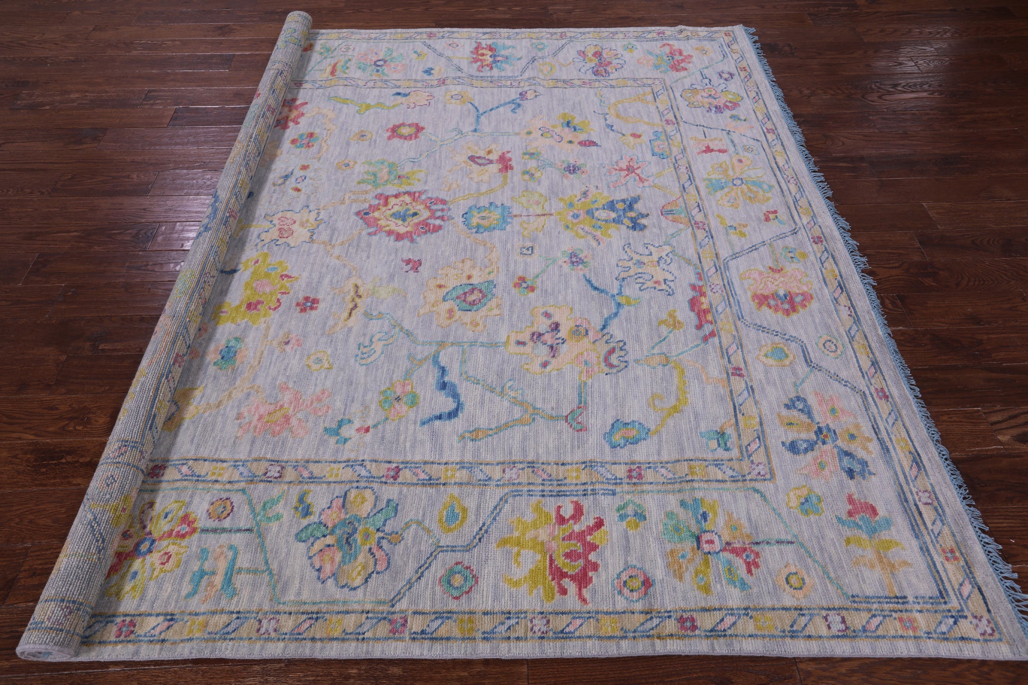 Grey 8' Square Turkish Angora Oushak Hand Knotted Wool Rug - Q19854 is backordered and will ship as soon as it is back in stock.