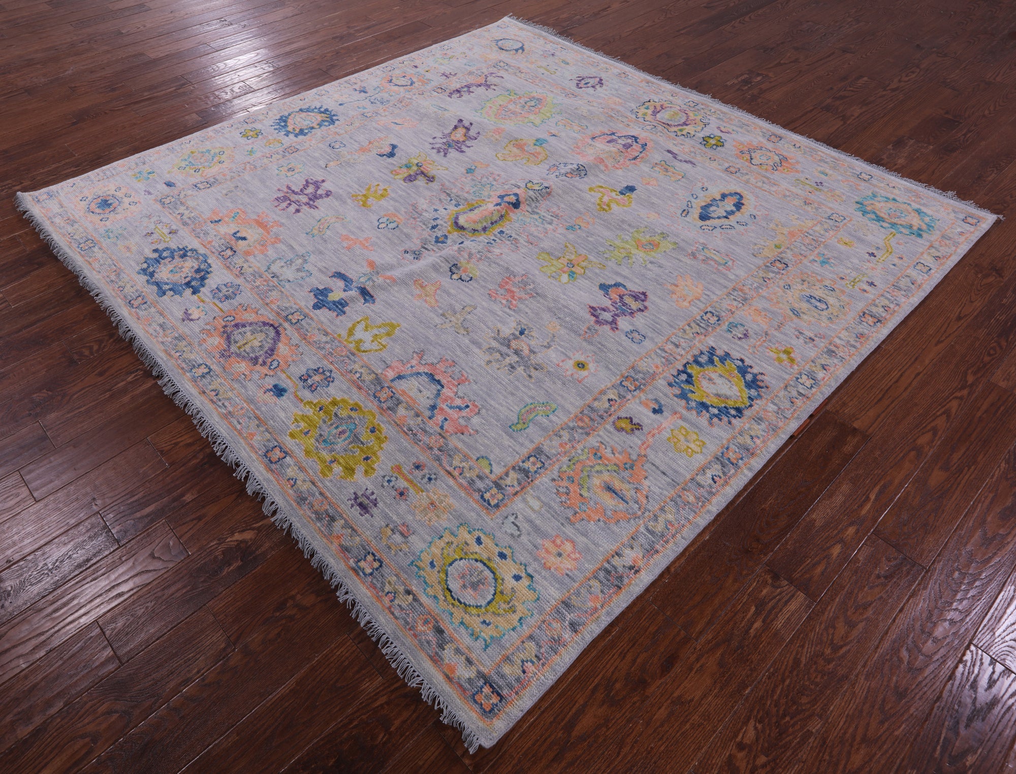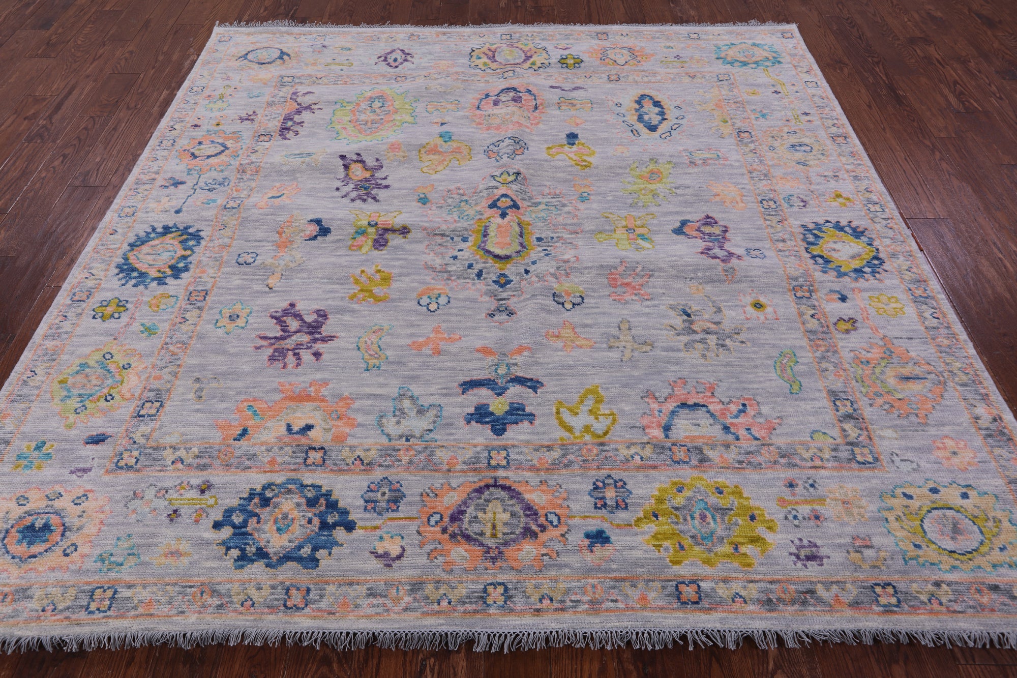 Grey 8' Square Turkish Angora Oushak Hand Knotted Wool Rug - Q19858 is backordered and will ship as soon as it is back in stock.