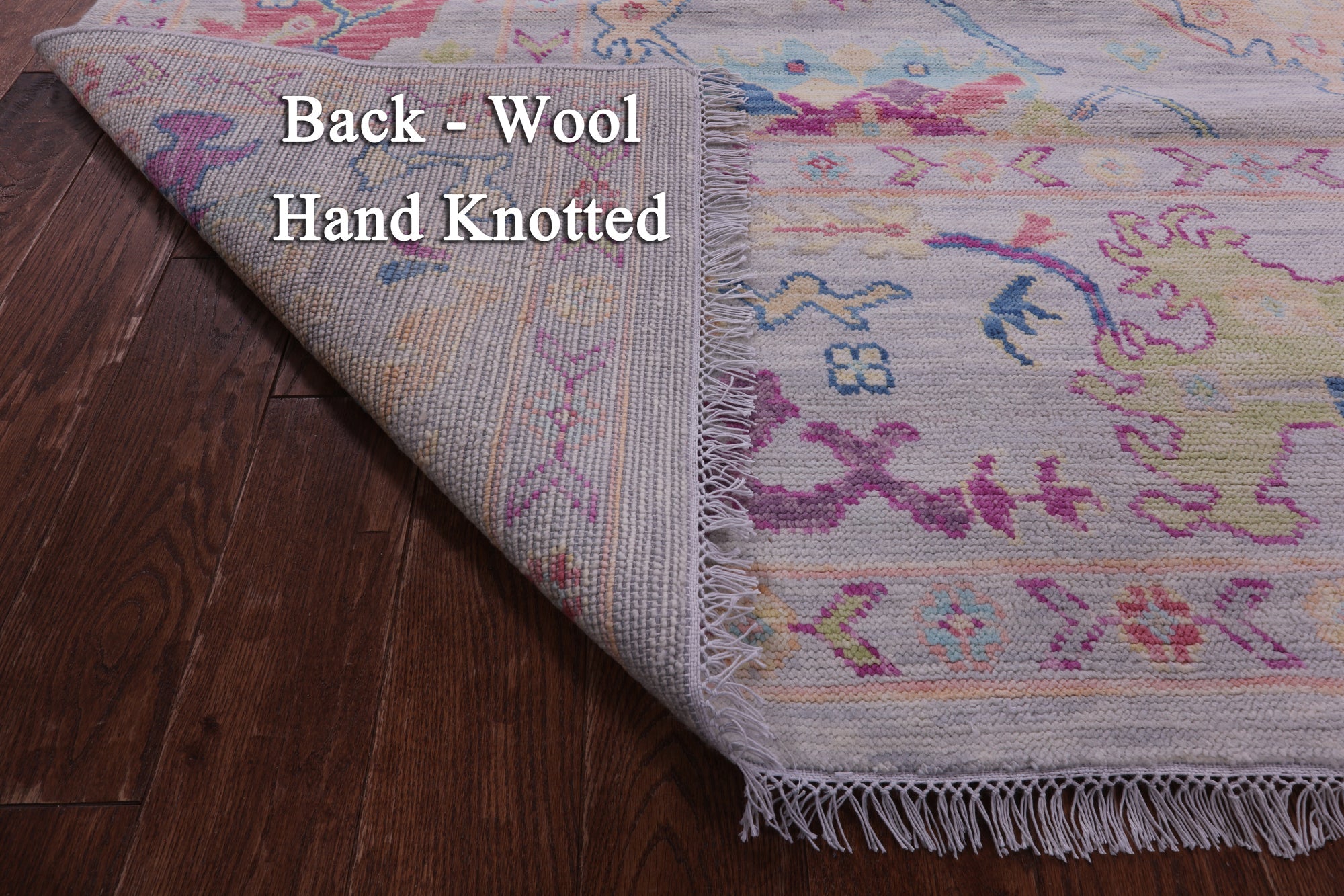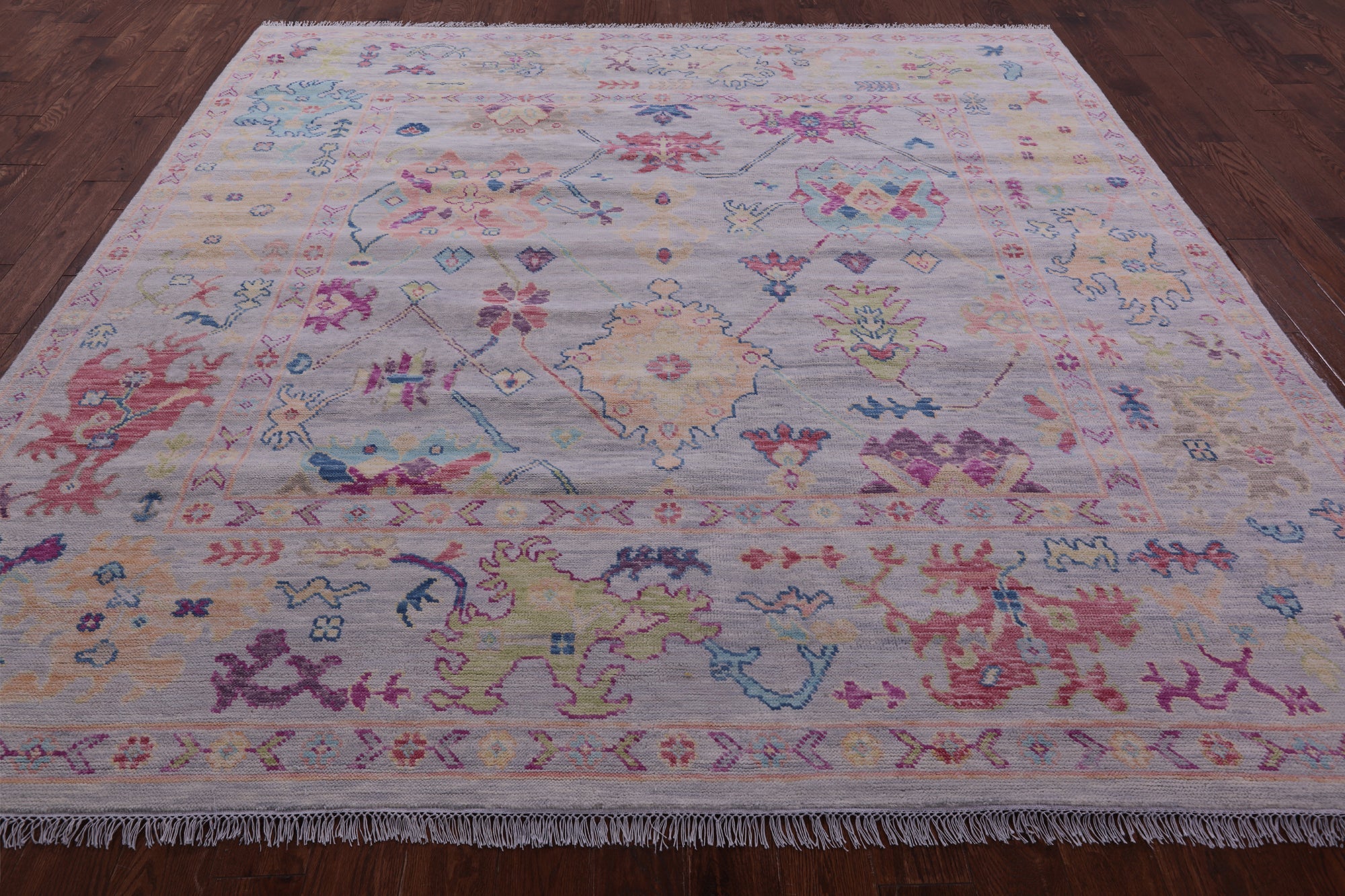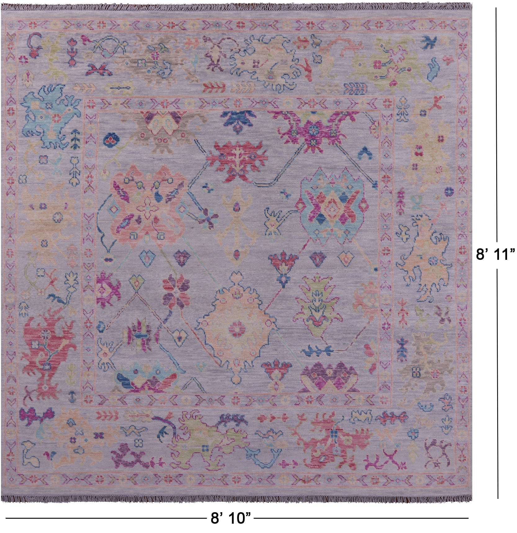 Grey 9' Square Turkish Angora Oushak Hand-Knotted Wool Rug - Q22328 is backordered and will ship as soon as it is back in stock.