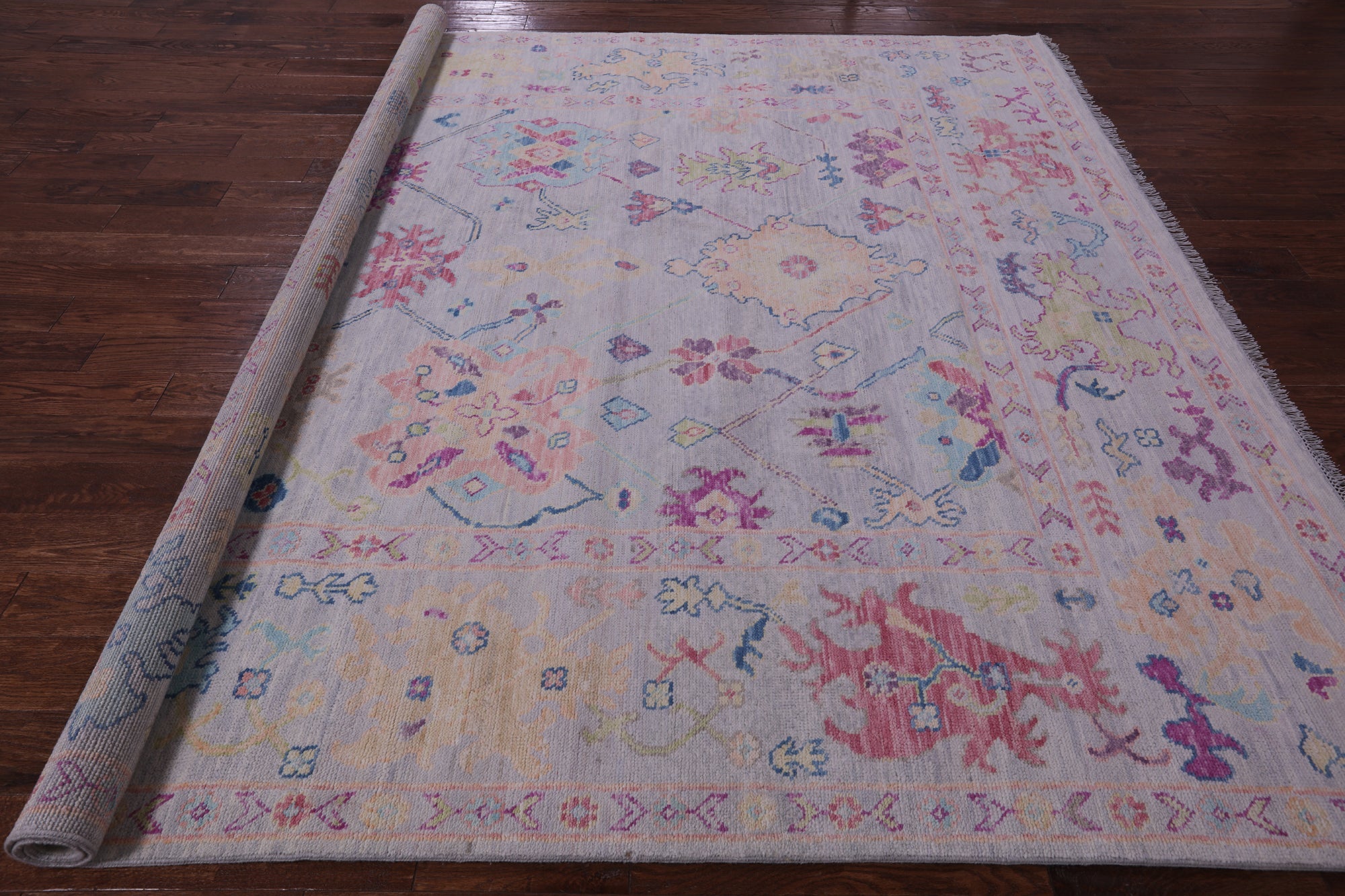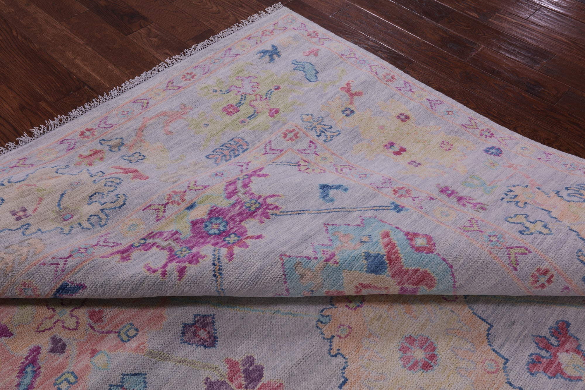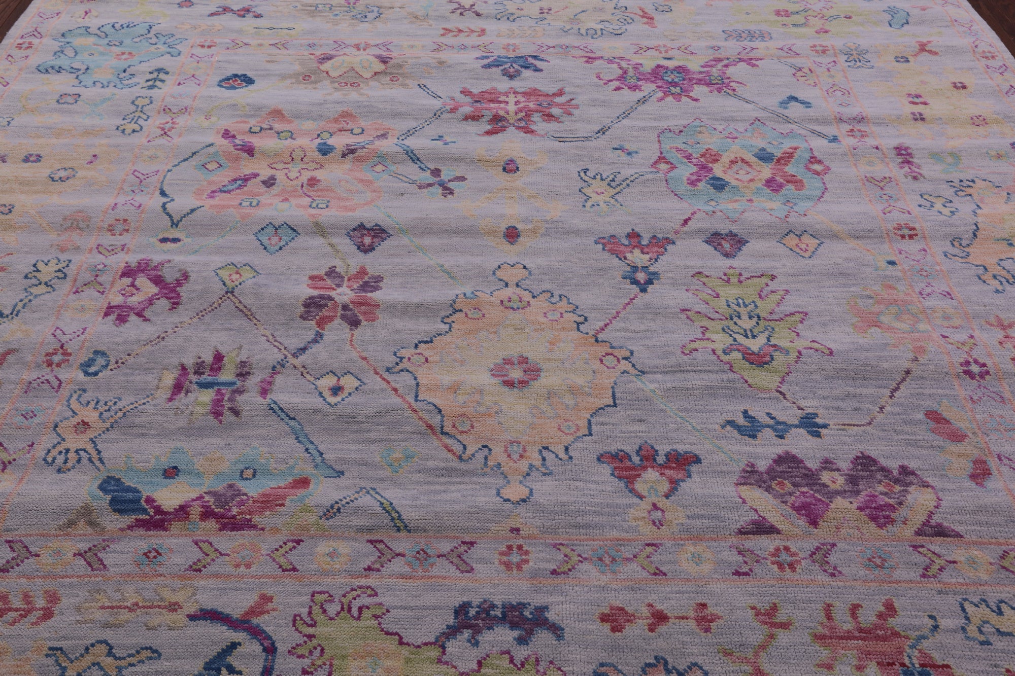Grey 9' Square Turkish Angora Oushak Hand-Knotted Wool Rug - Q22328 is backordered and will ship as soon as it is back in stock.