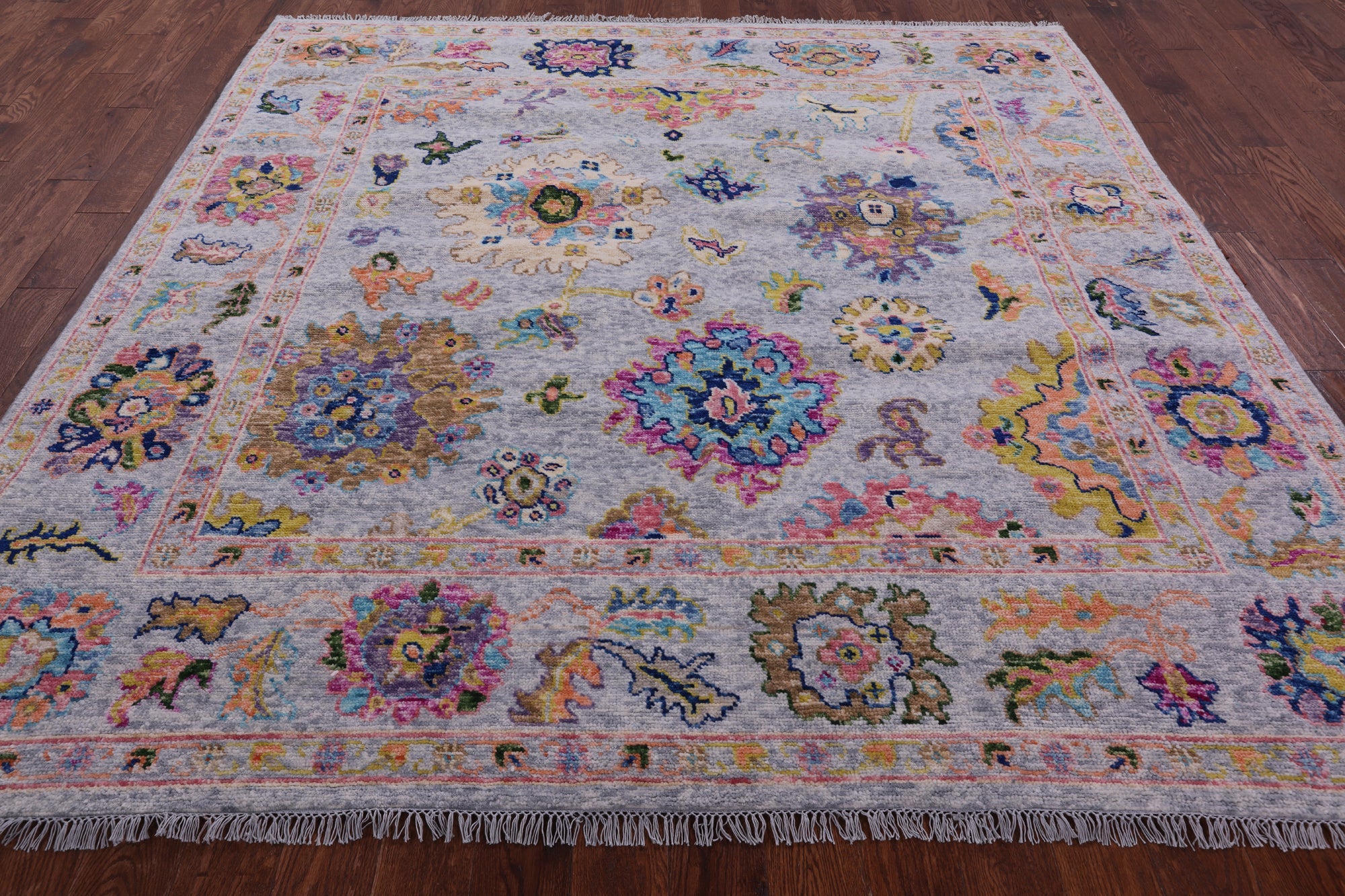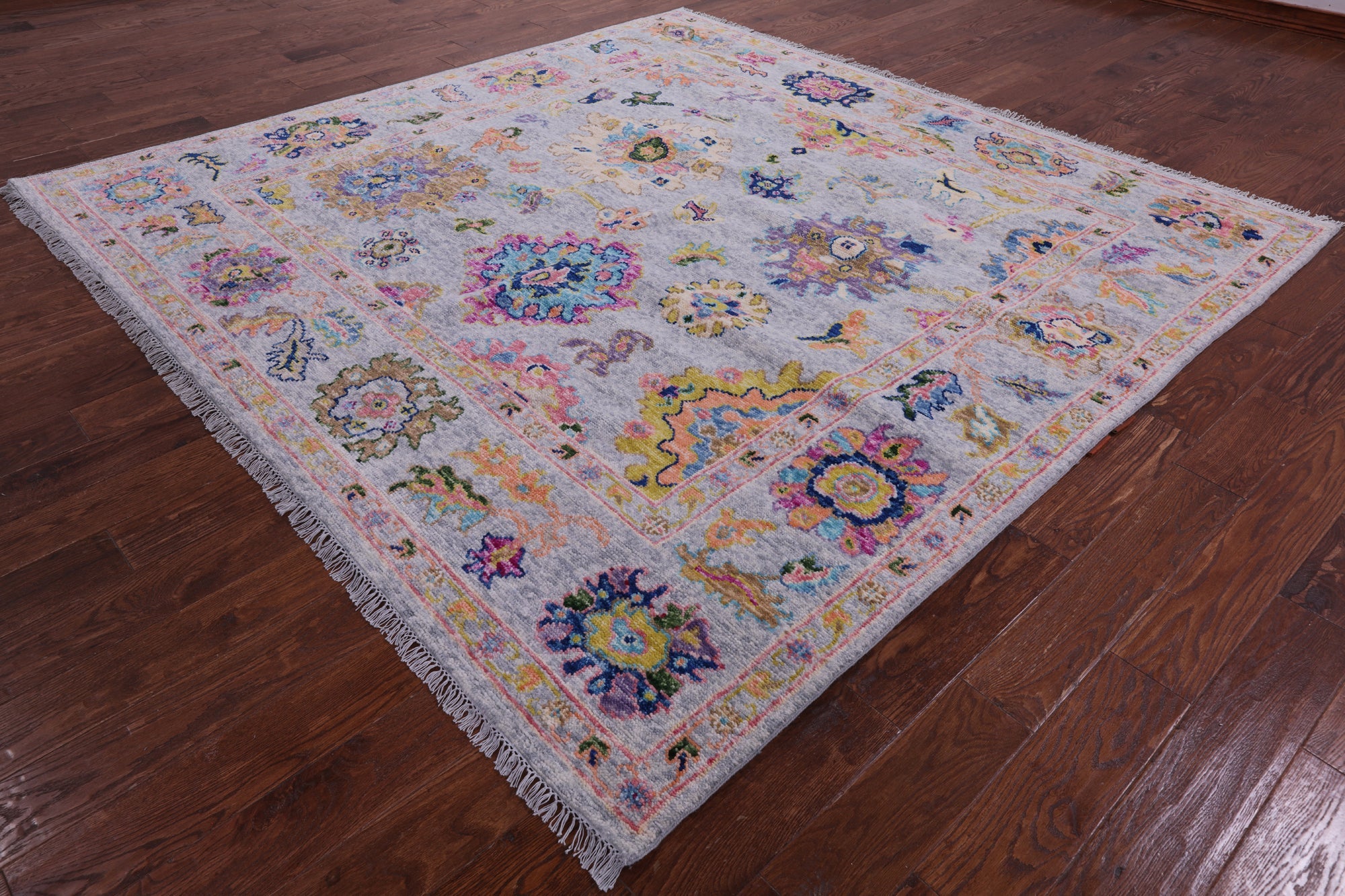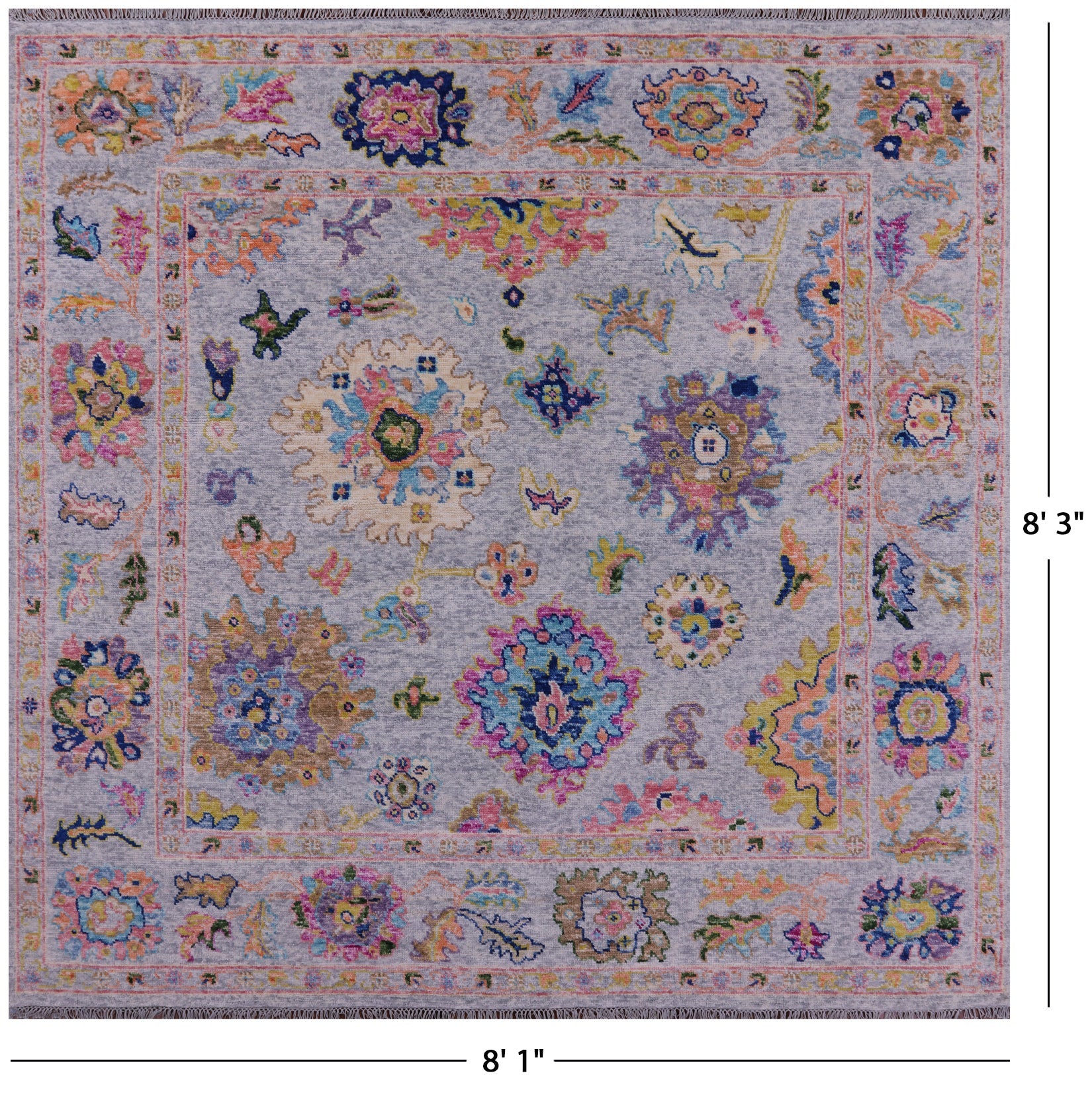 Grey 8' Square Turkish Angora Oushak Handmade Rug - Q18955