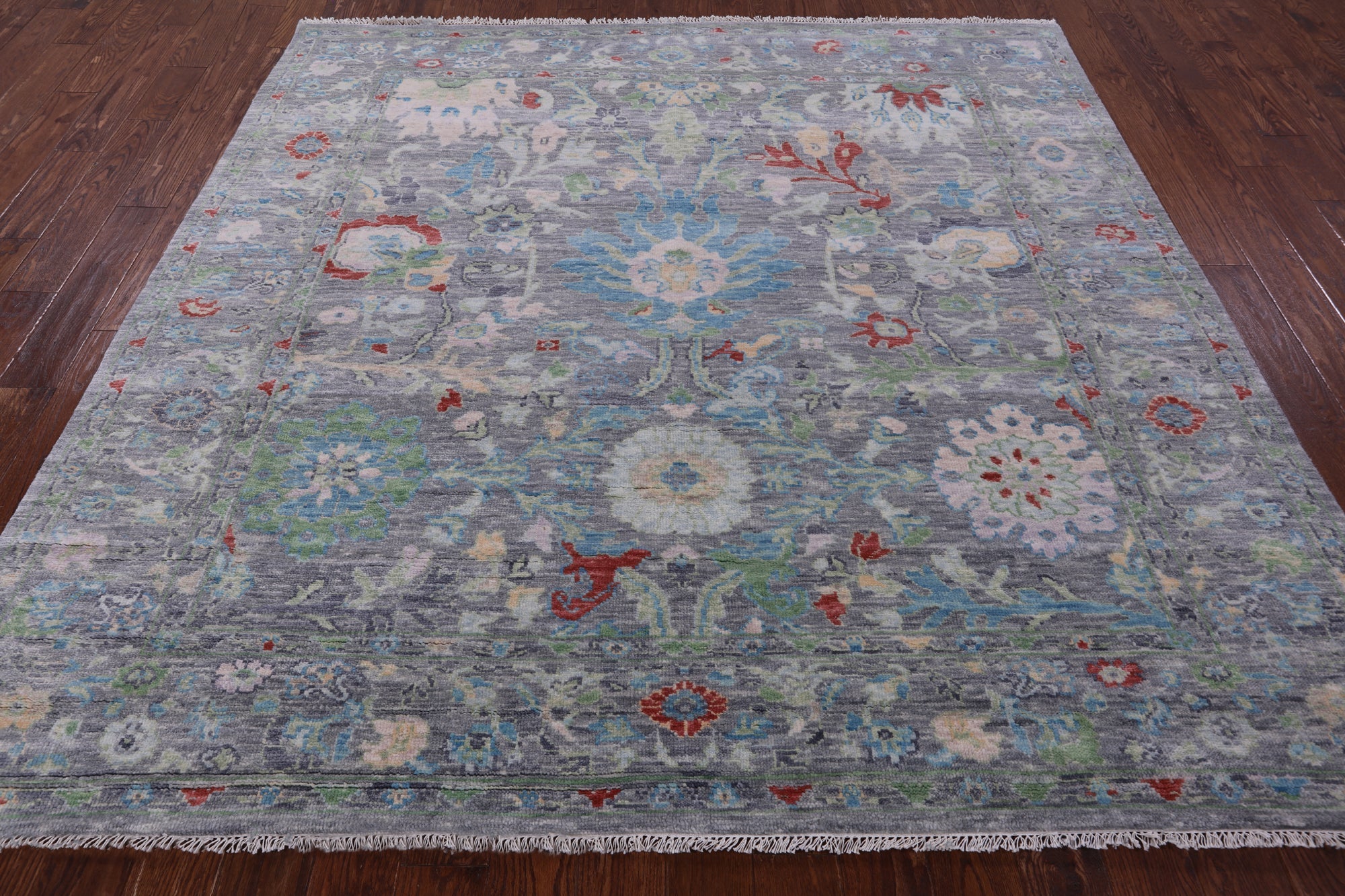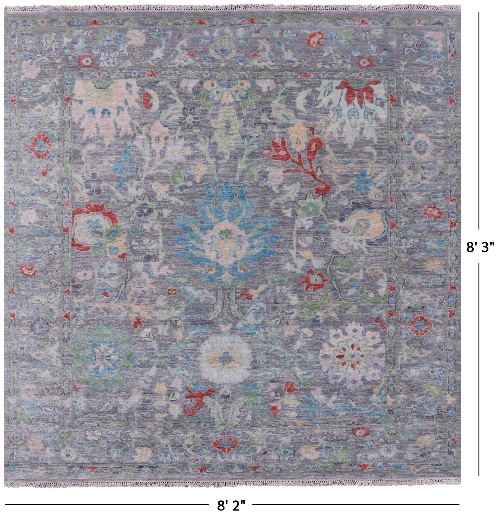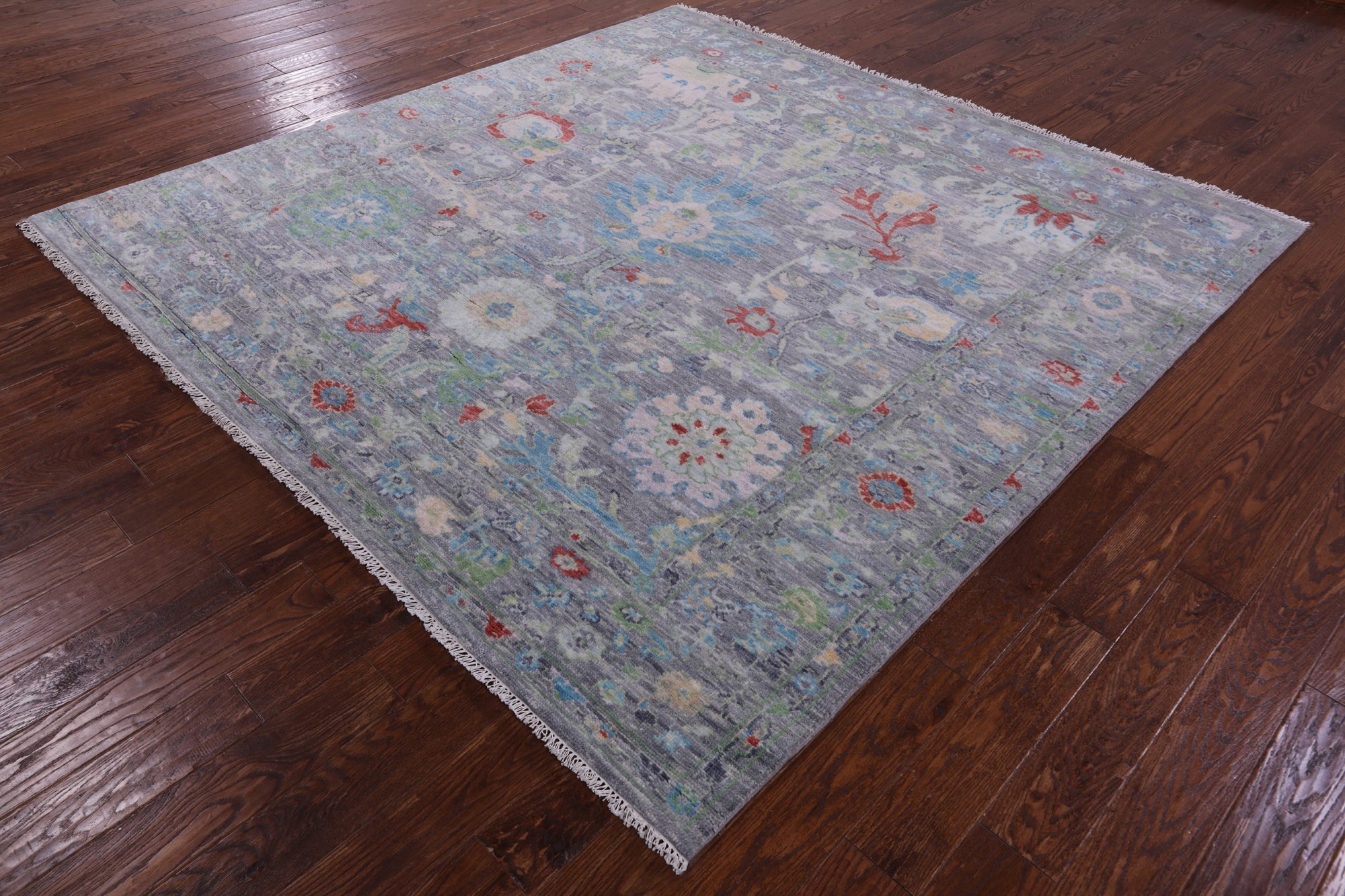 Grey 8' Square Turkish Angora Oushak Handmade Wool Rug - Q13403