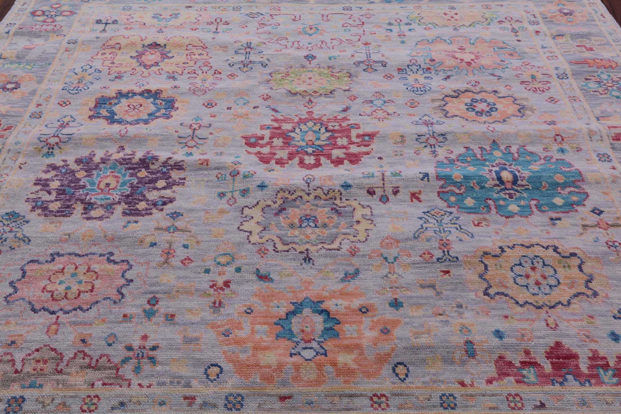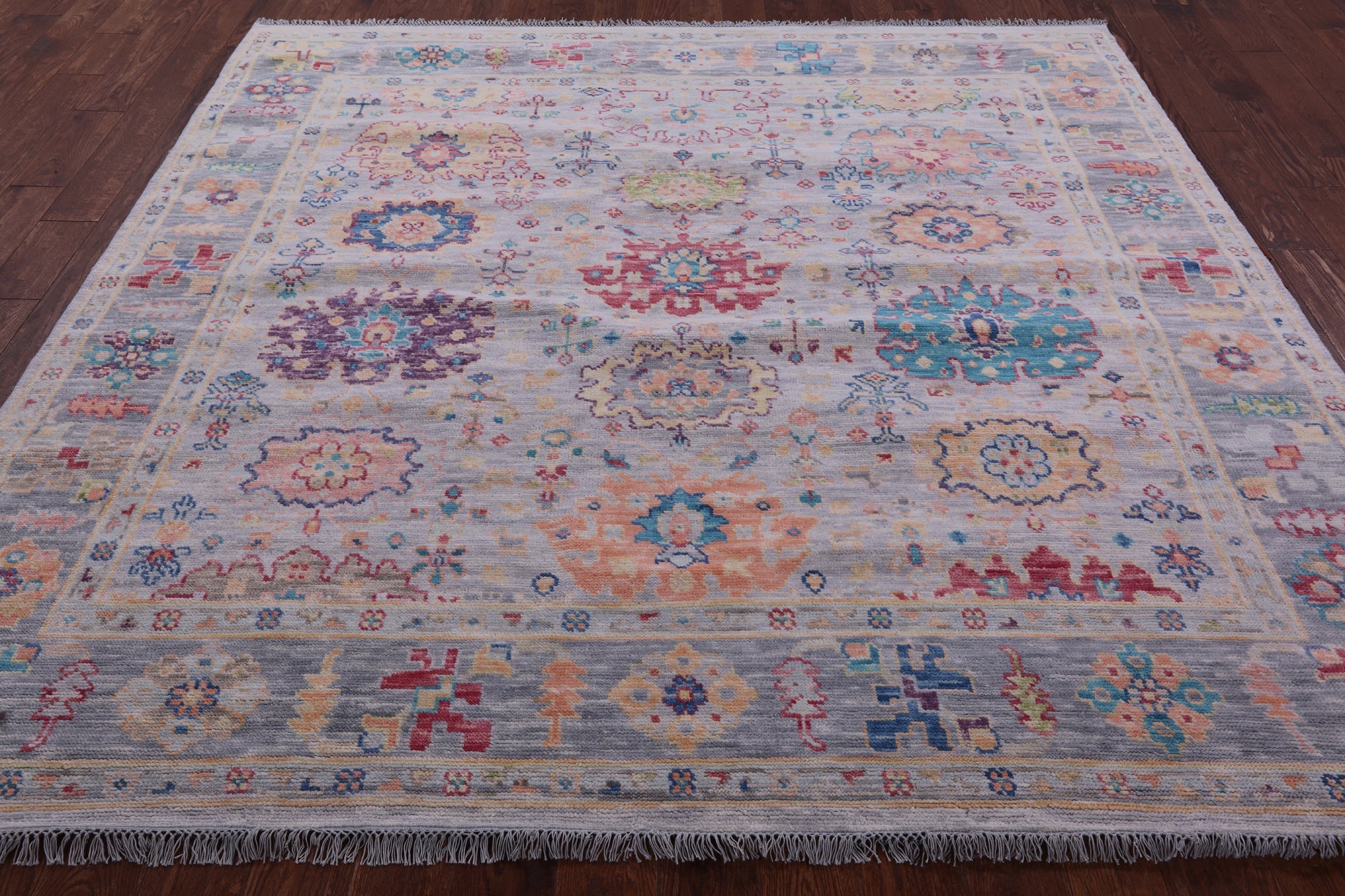 Grey 8' Square Turkish Angora Oushak Handmade Wool Rug - Q19857 is backordered and will ship as soon as it is back in stock.