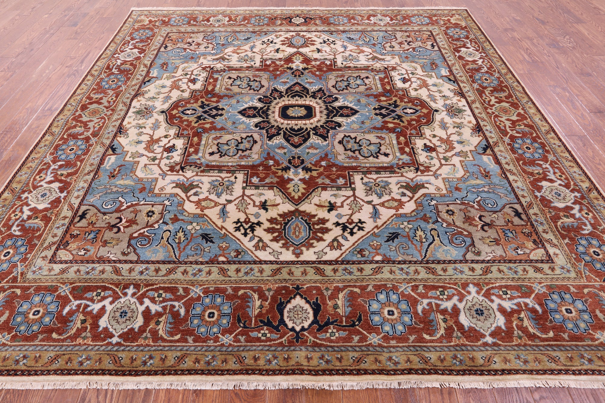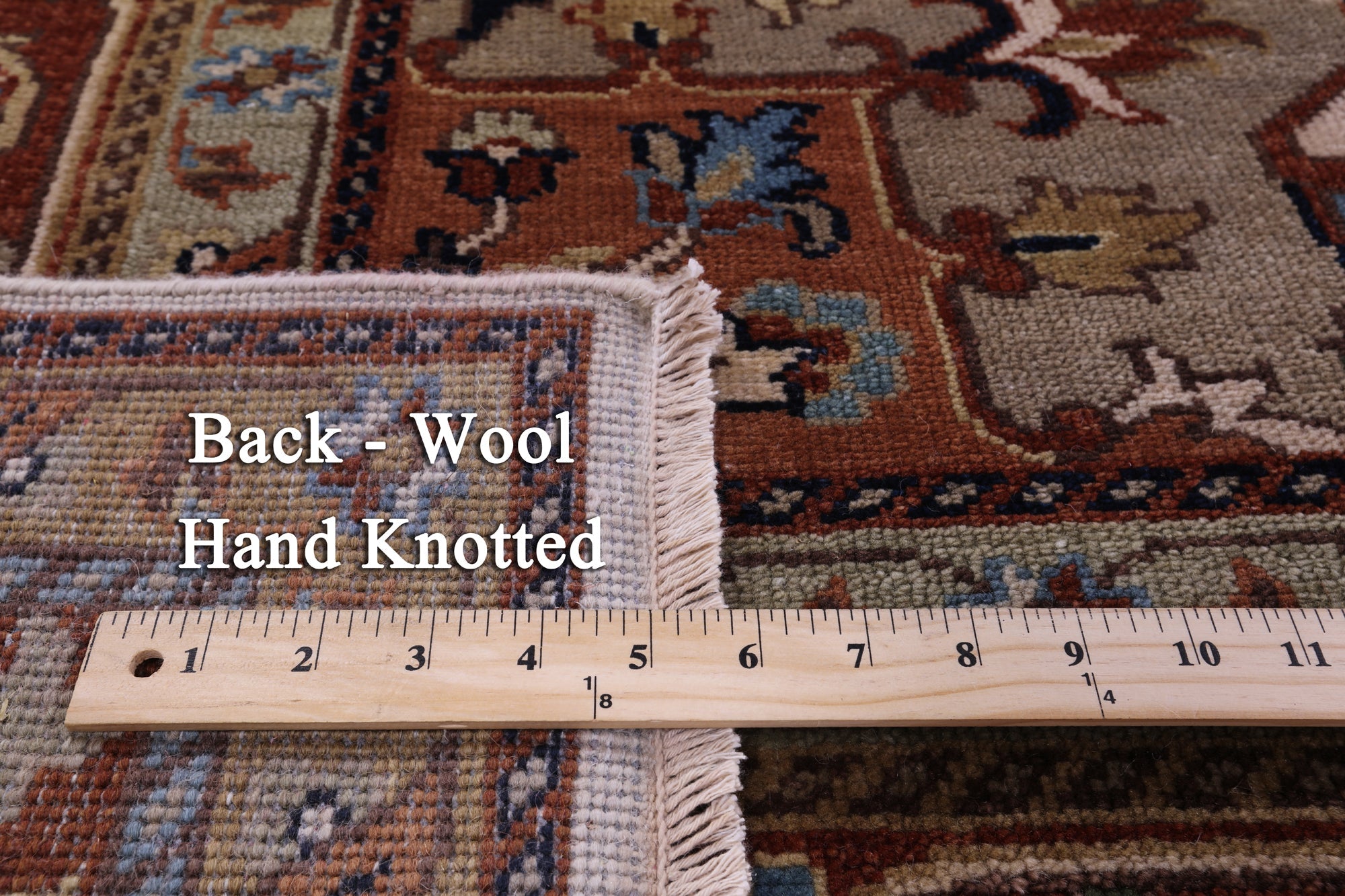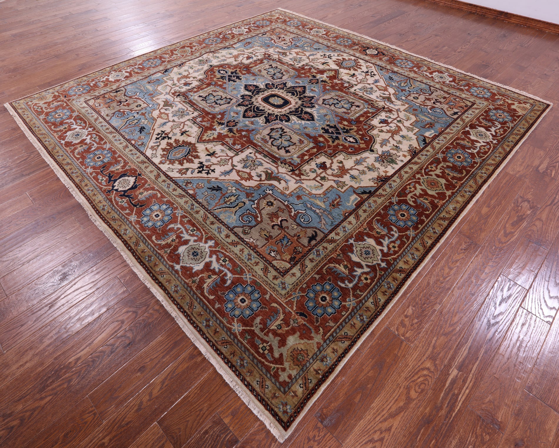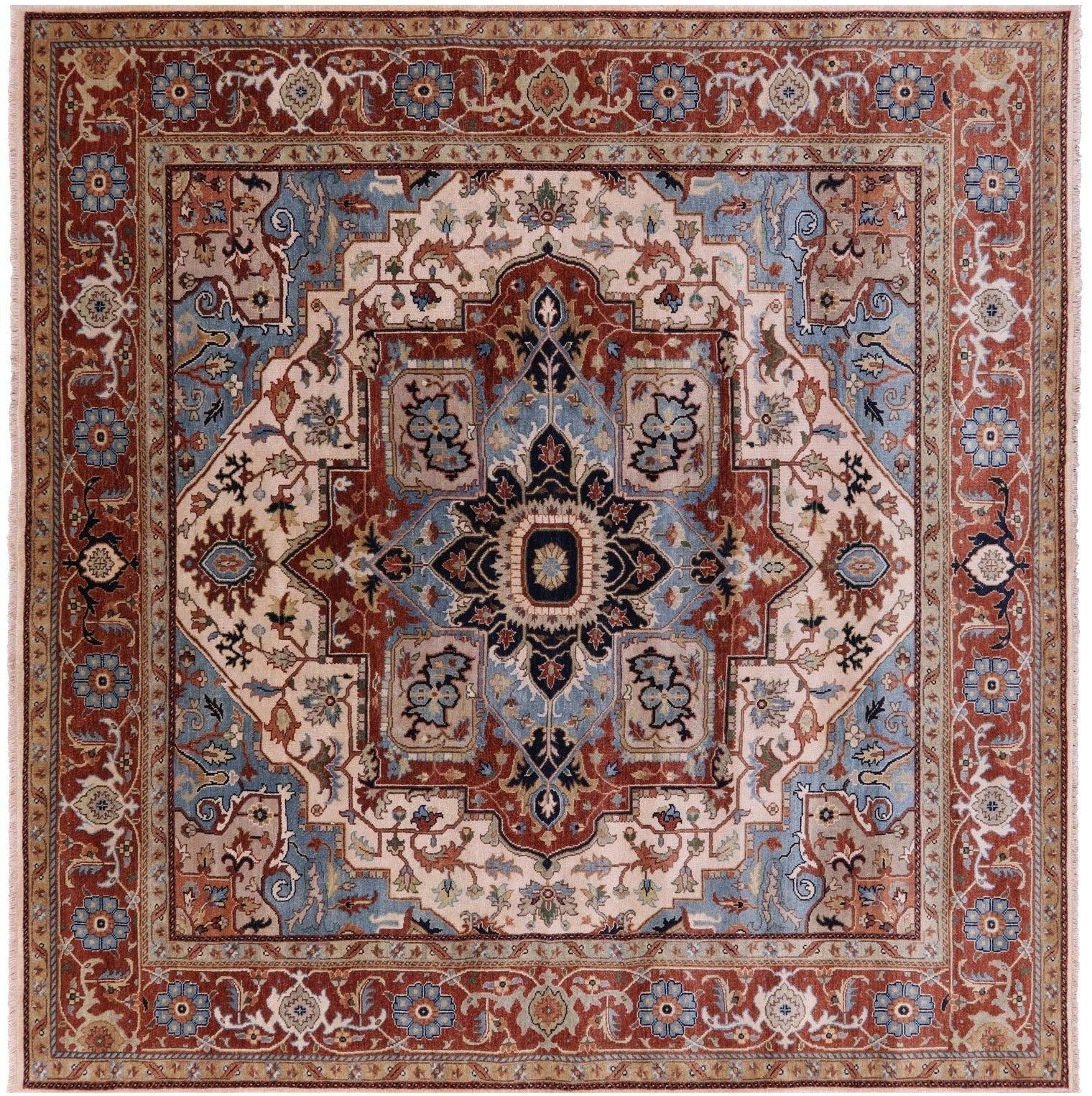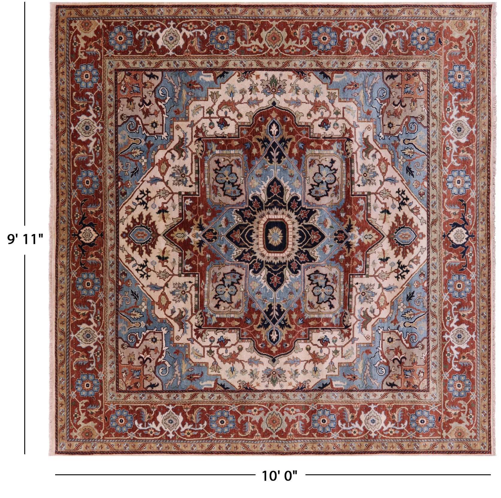 Ivory 10' Square Handmade Heriz Serapi Wool Rug - Q21083