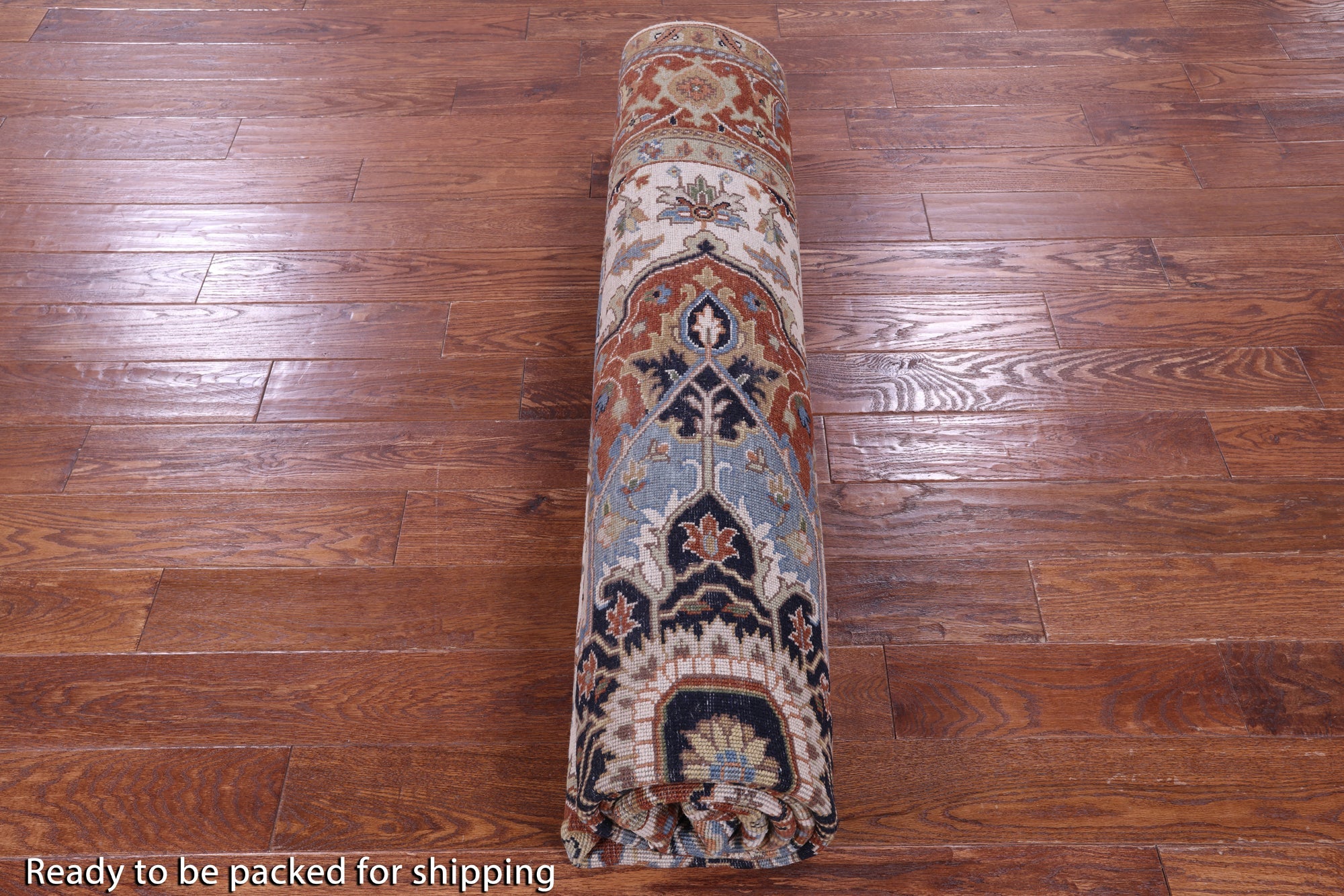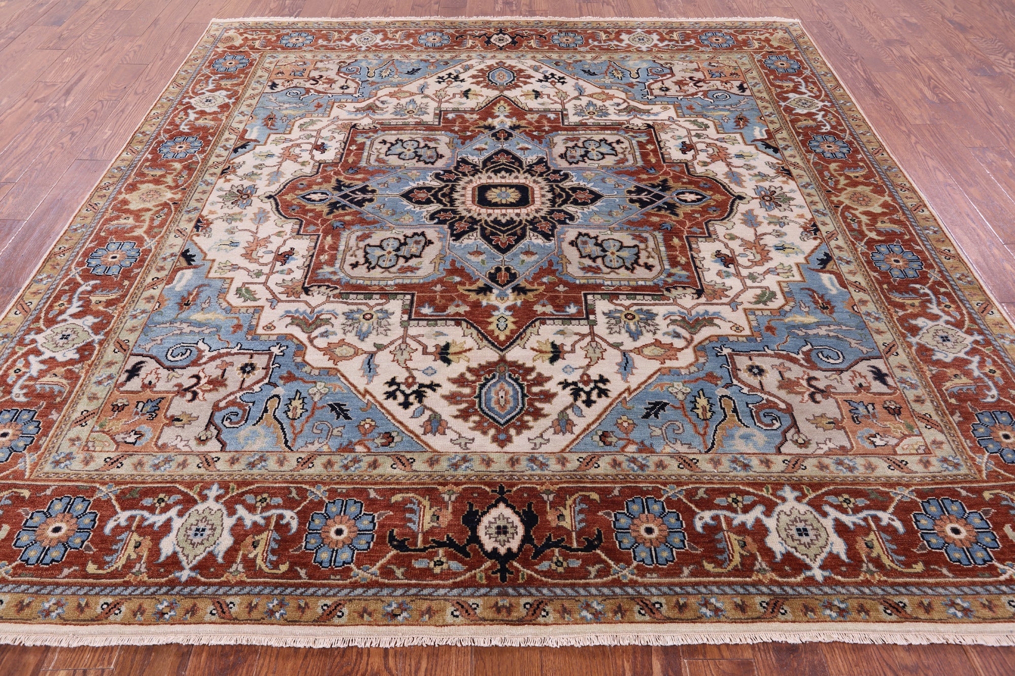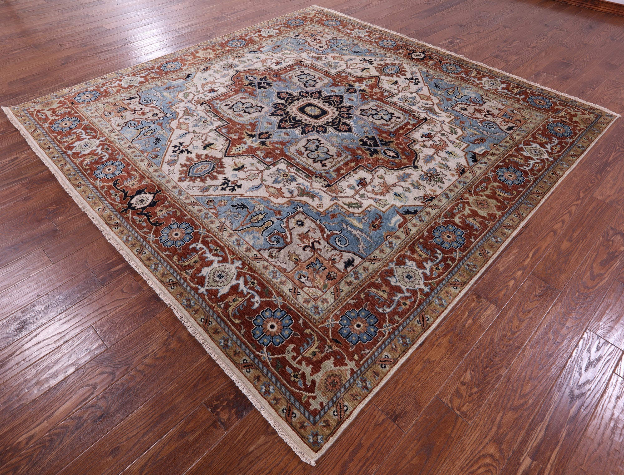 Ivory 9' Square Persian Heriz Serapi Handmade Wool Rug - Q22183 is backordered and will ship as soon as it is back in stock.