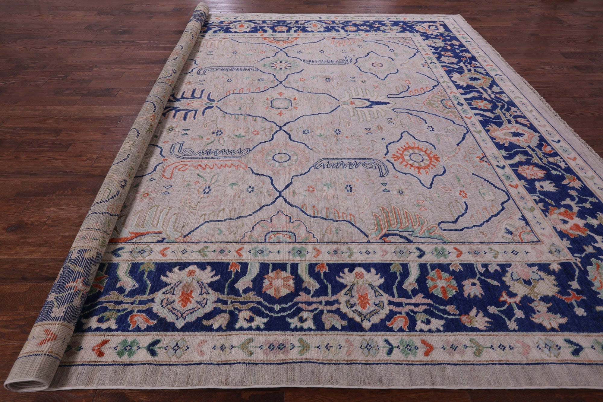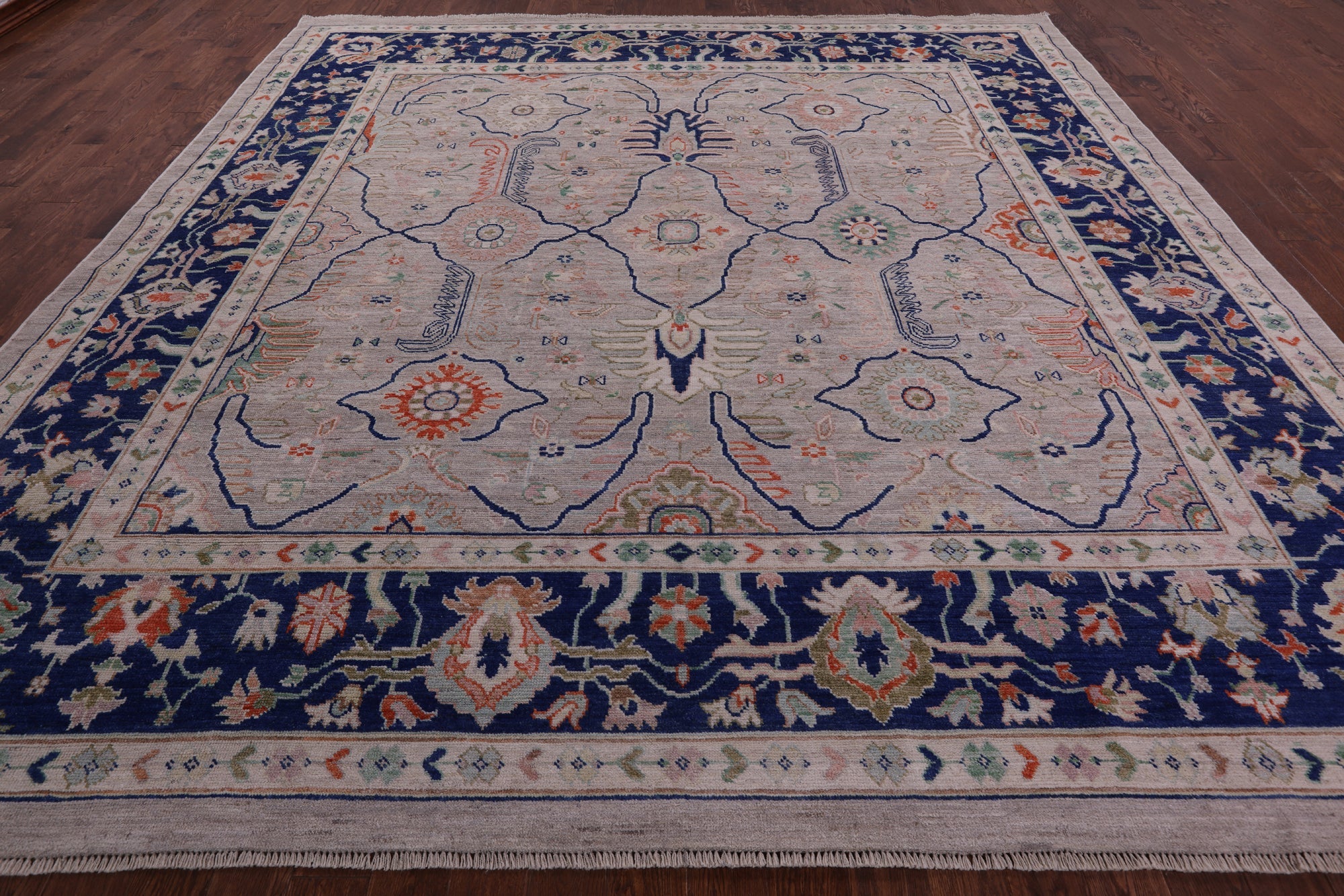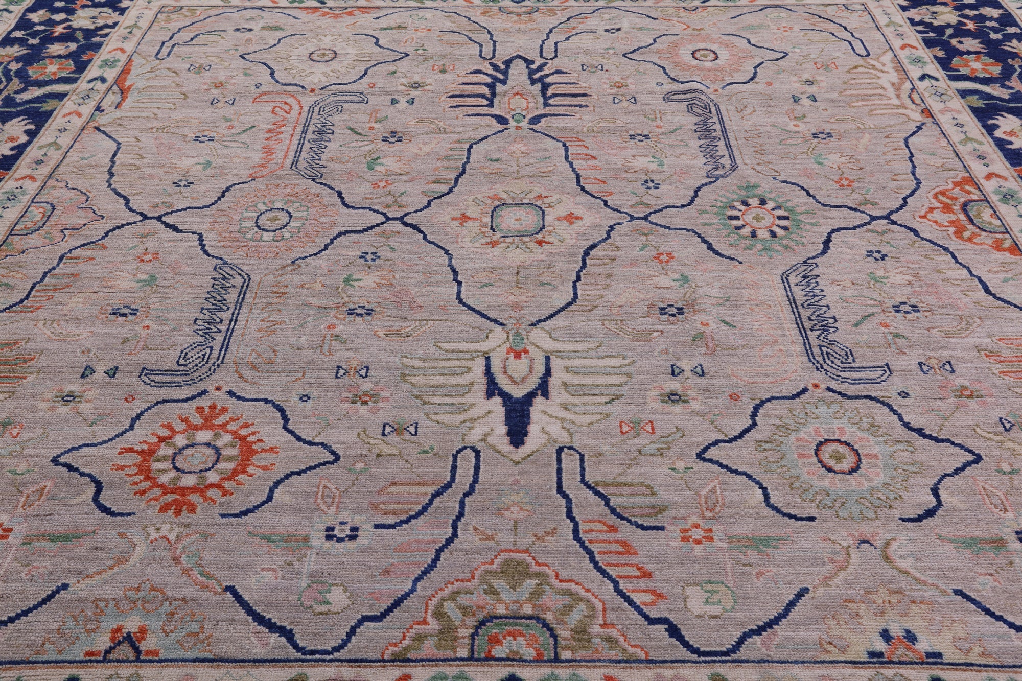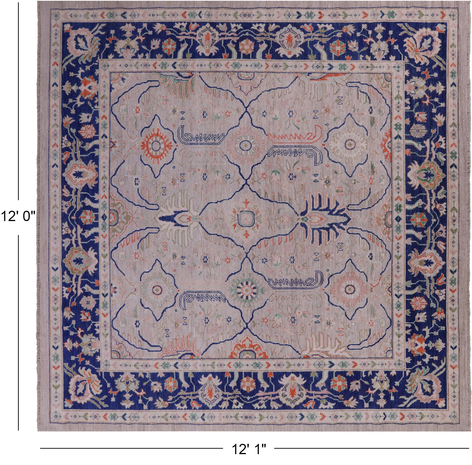 Ivory 12' Square Turkish Oushak Hand Knotted Wool On Wool Rug - Q10508 is backordered and will ship as soon as it is back in stock.