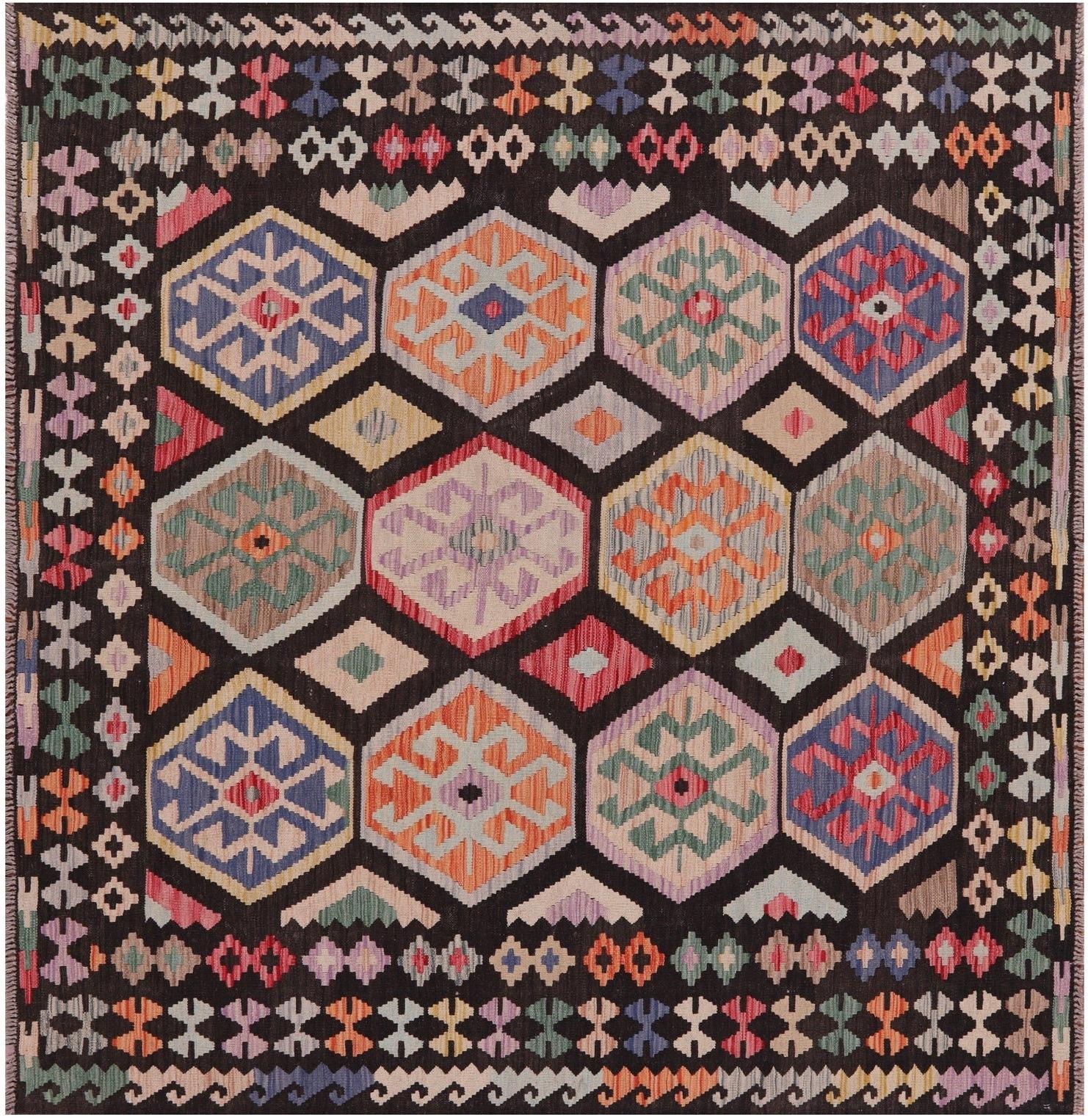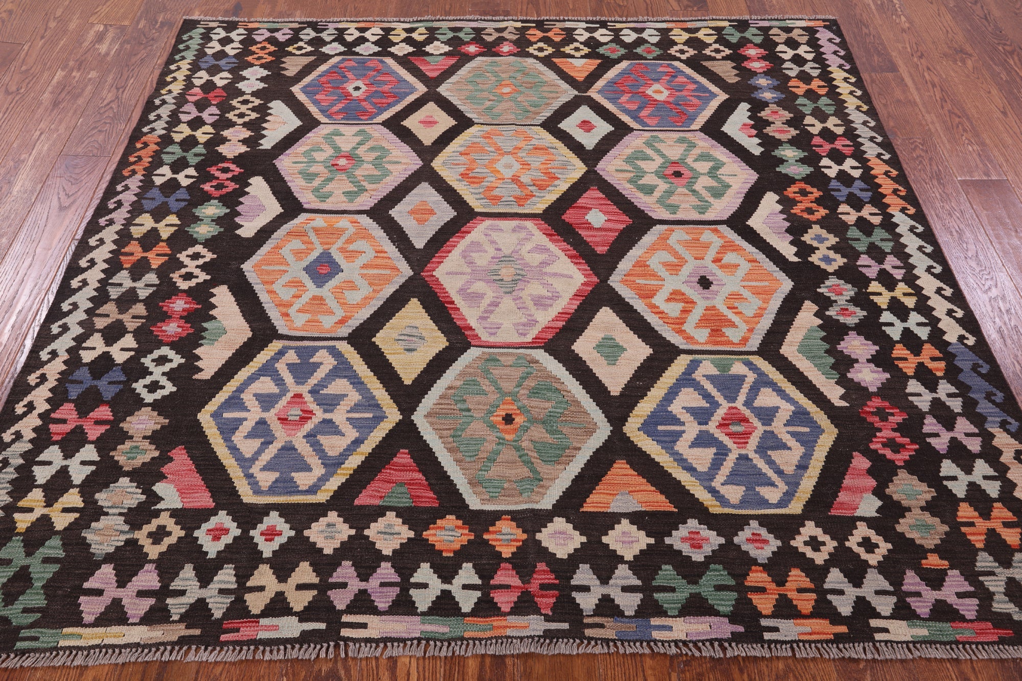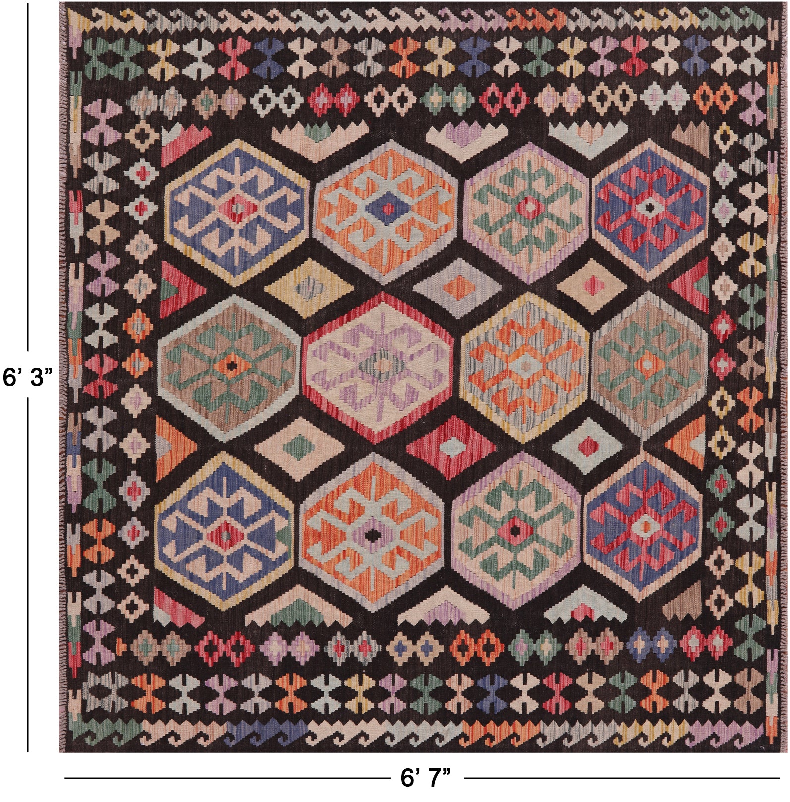6' 3" X 6' 7" Square Kilim Flat Weave Reversible Wool On Wool Rug - Q18028