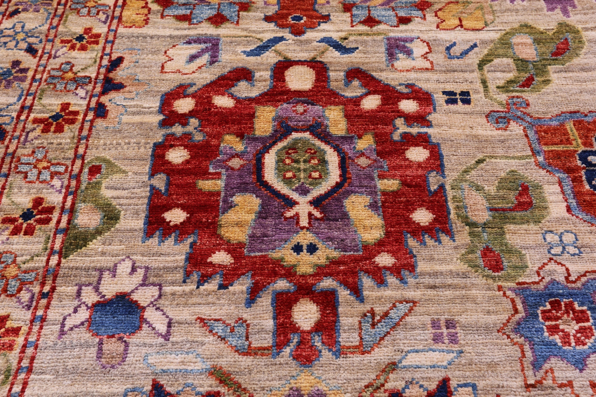 This is a genuine hand knotted cut pile rug, not tufted, hooked, or machine made. All we do is hand knotted.