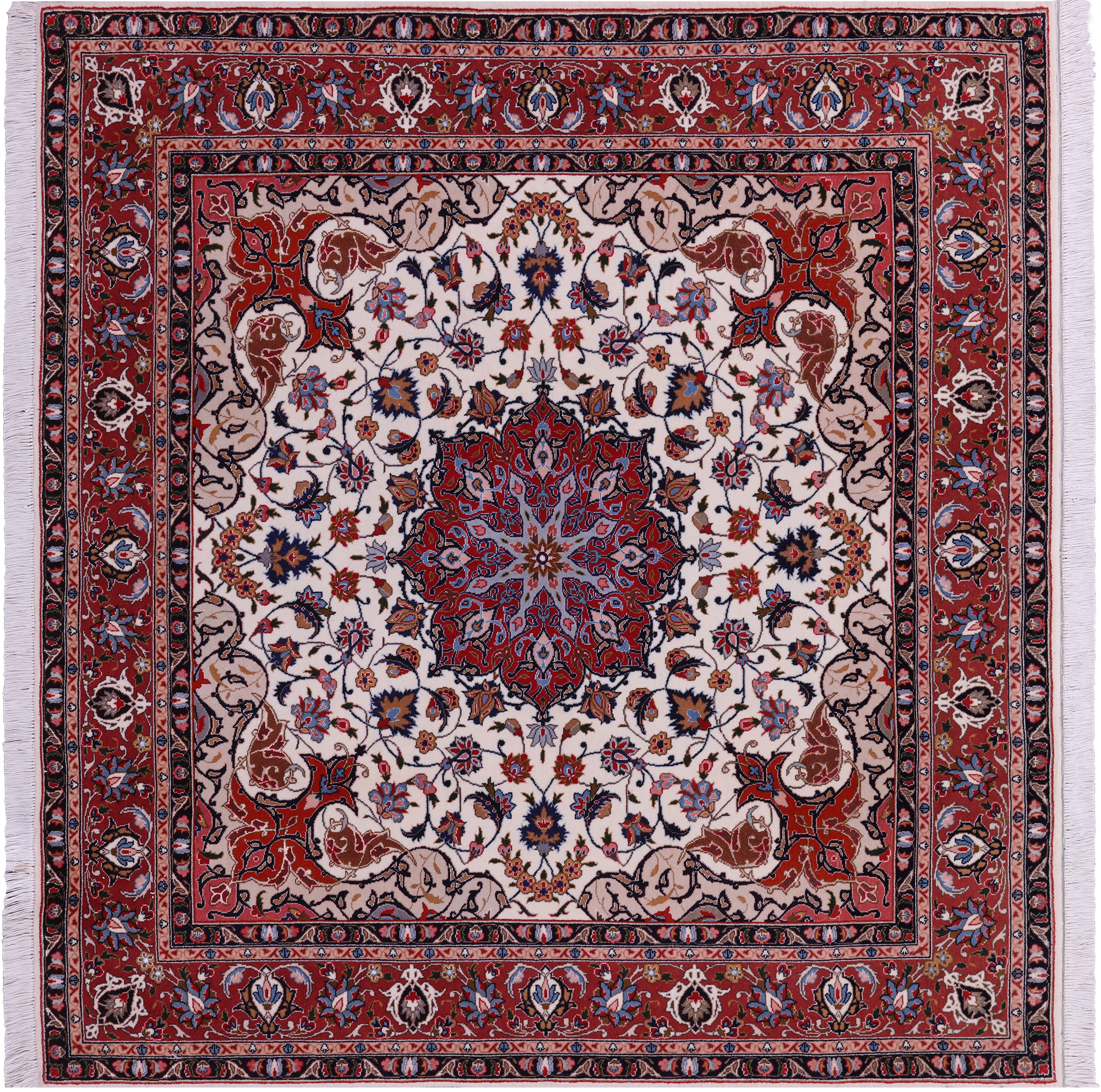 5' Square High End Persian Tabriz Handmade Wool & Silk Rug - Q23656
