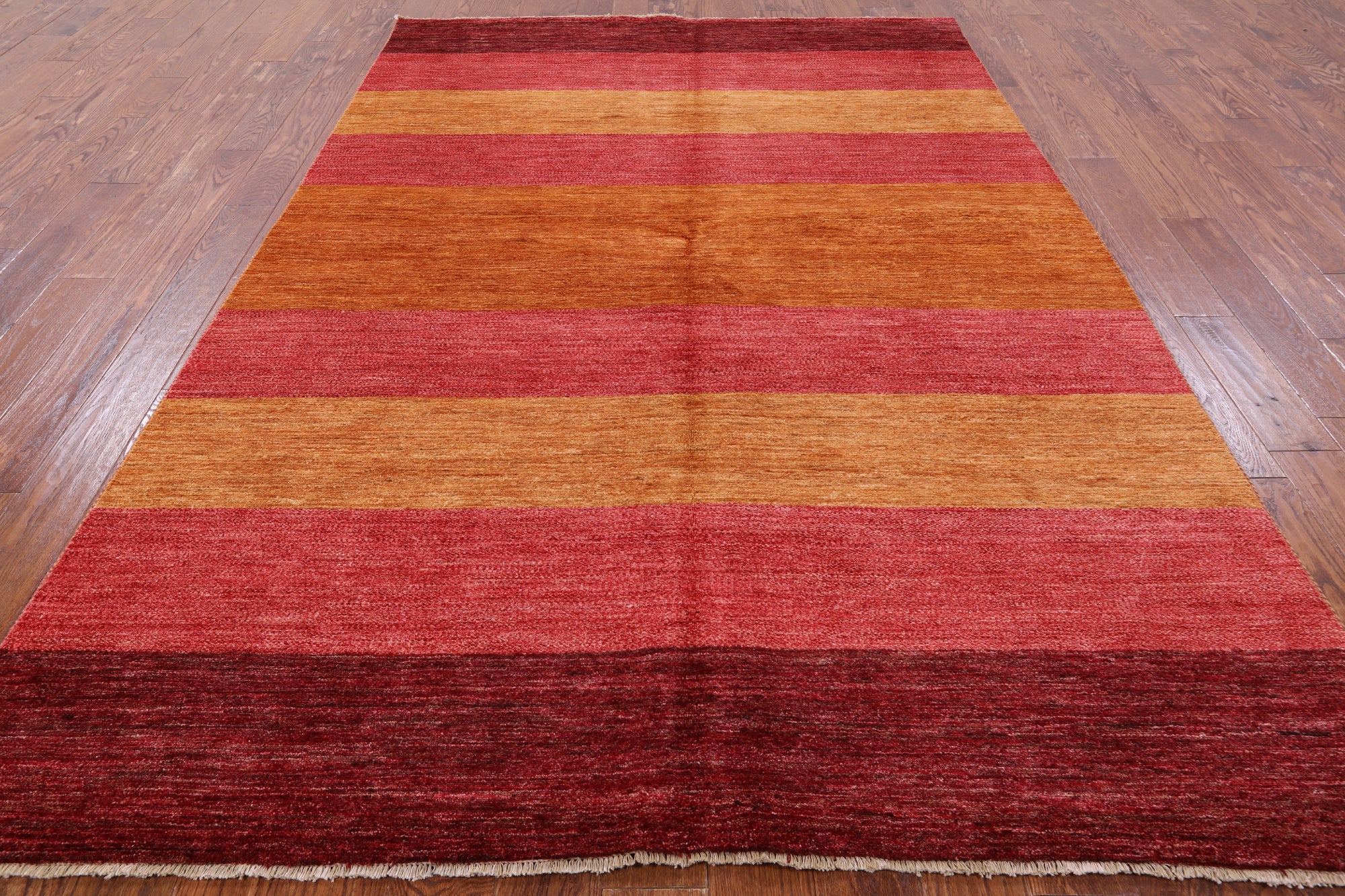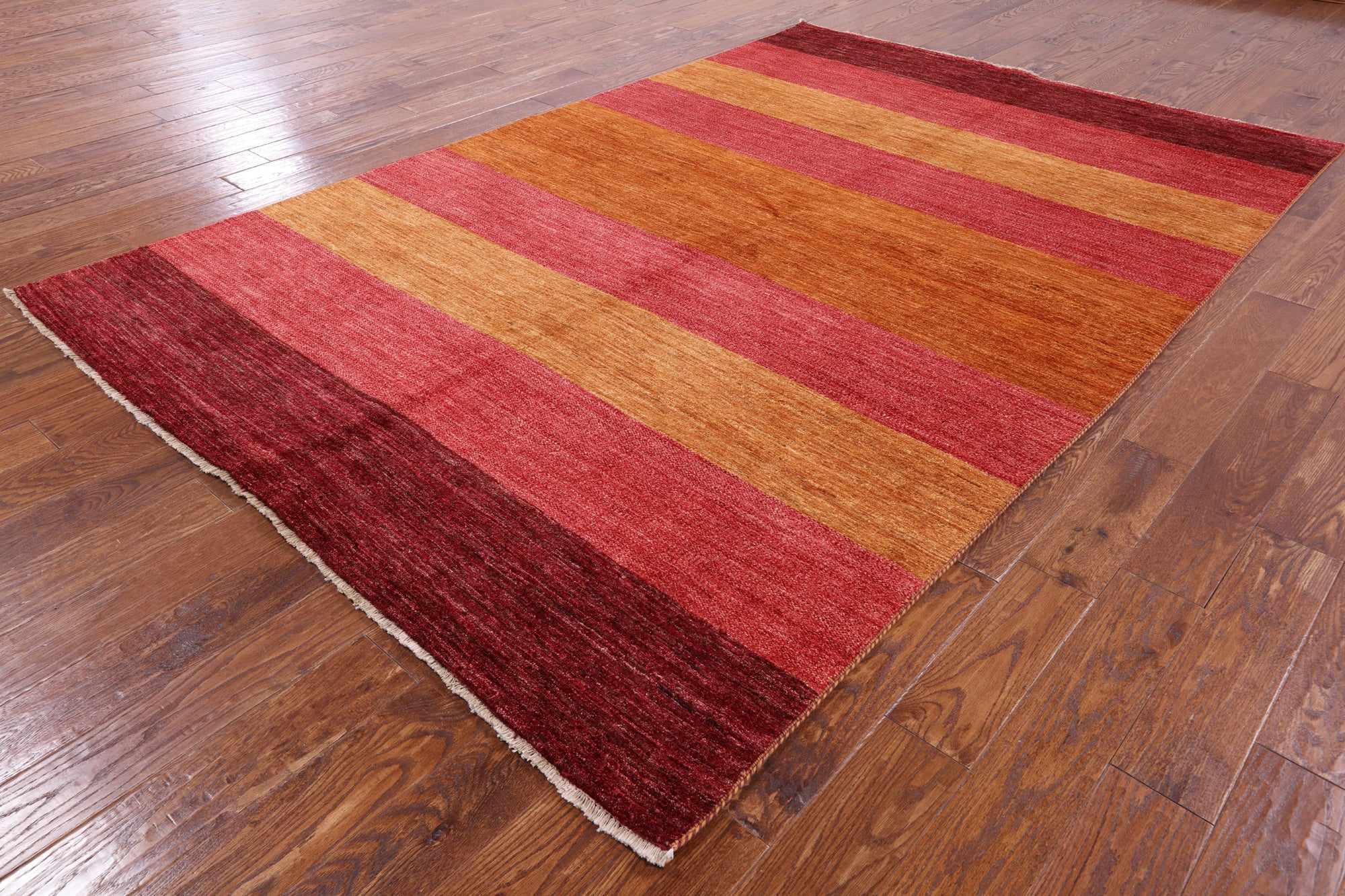Gabbeh rugs are hand knotted to reflect tribal and other patterns such as solids, and nomadic designs. The simplistic "child-like" bold designs of Gabbeh rugs is what makes them perfectly suitable for any decor. Gabbeh rugs are made from high-quality wool and have a high density of knots. Gabbeh rugs are hand-knotted and eco-friendly, because only natural dyes are used in their production.