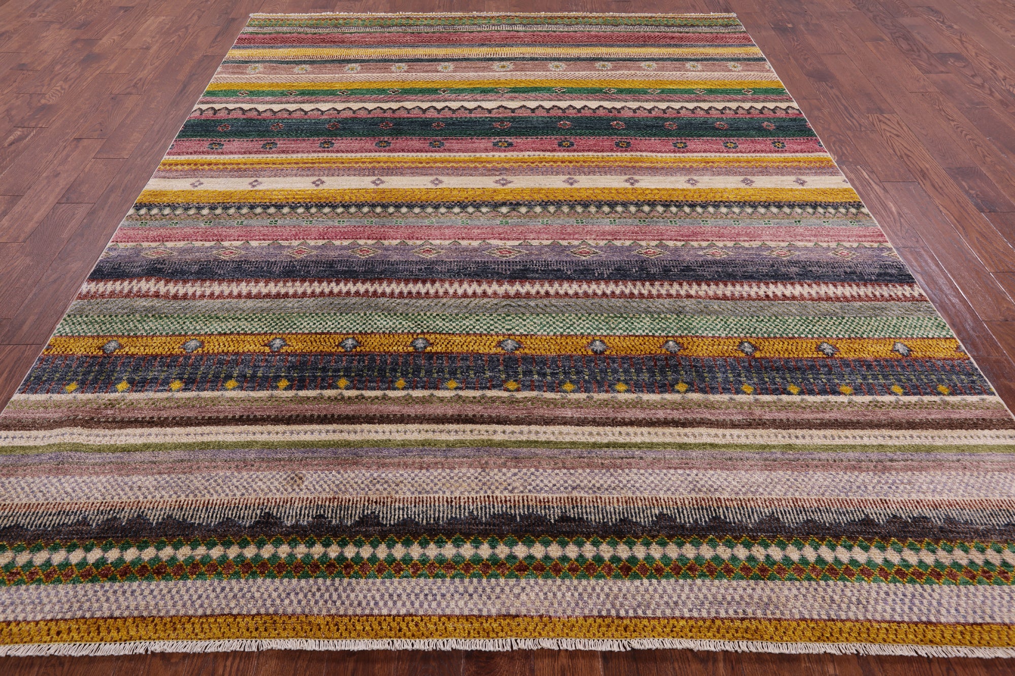 8' 0" X 10' 2" Hand Knotted Loribaft Persian Gabbeh Area Rug - P7362 is backordered and will ship as soon as it is back in stock.