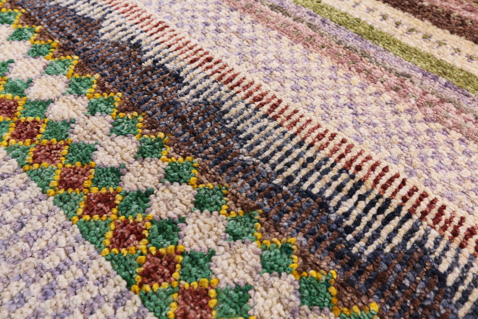 This is a genuine hand knotted cut pile rug, not tufted, hooked, or machine made. All we do is hand knotted.