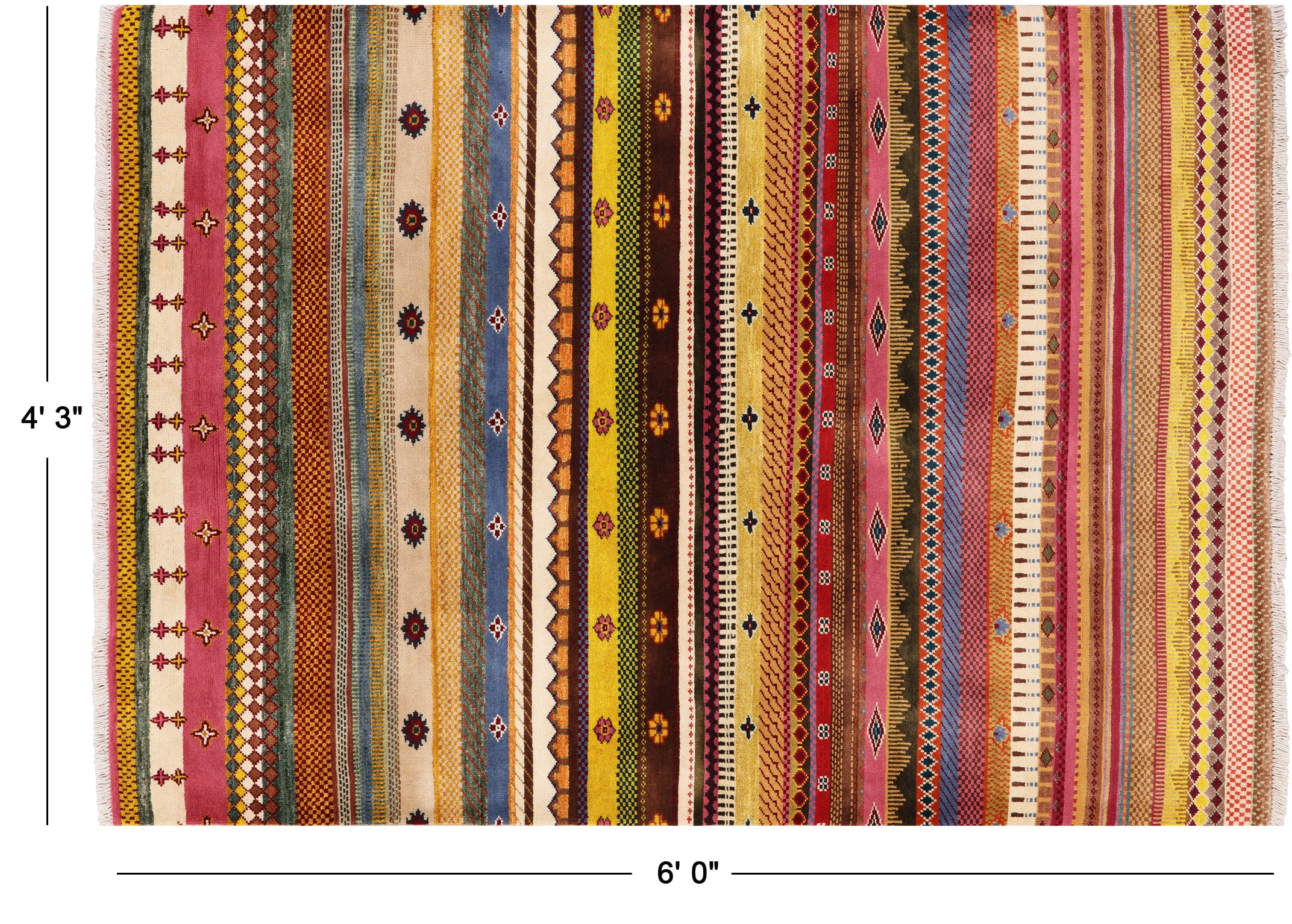 Handmade Gabbeh Loribaft Rug 4' 3" X 6' 0" - P7491