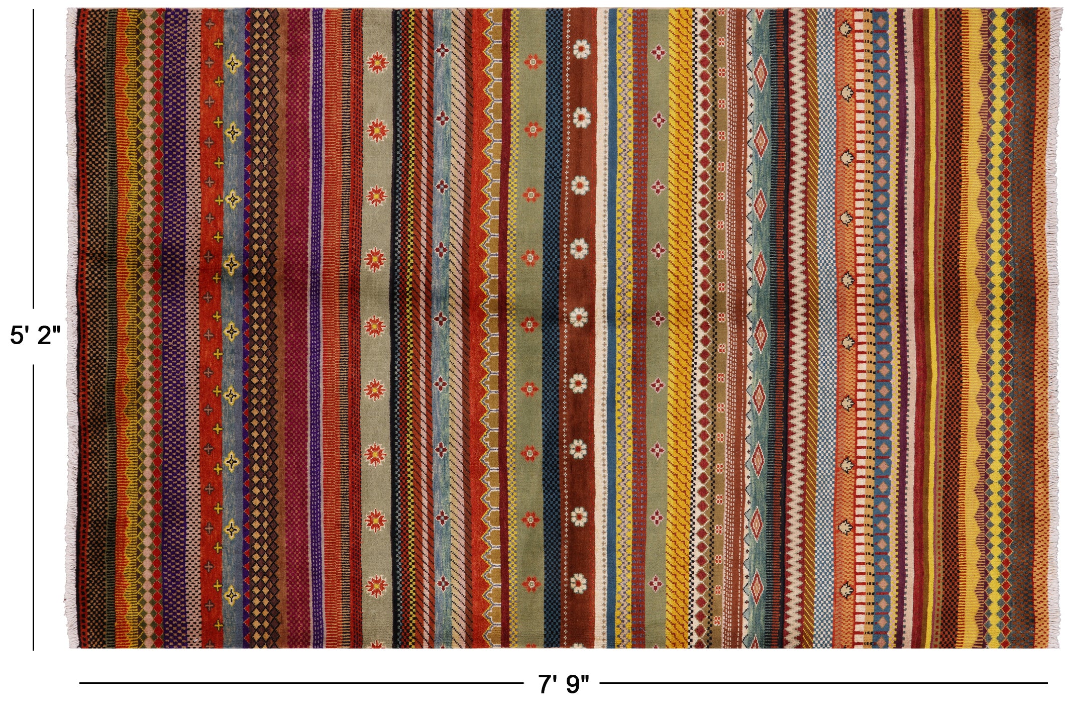 5' 2" X 7' 9" Handmade Loribaft Persian Gabbeh Rug - P7450