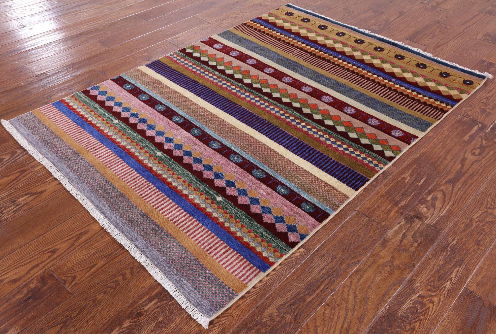 Handmade Persian Gabbeh Loribaft Wool Rug 4' 0" X 5' 8" - P7545