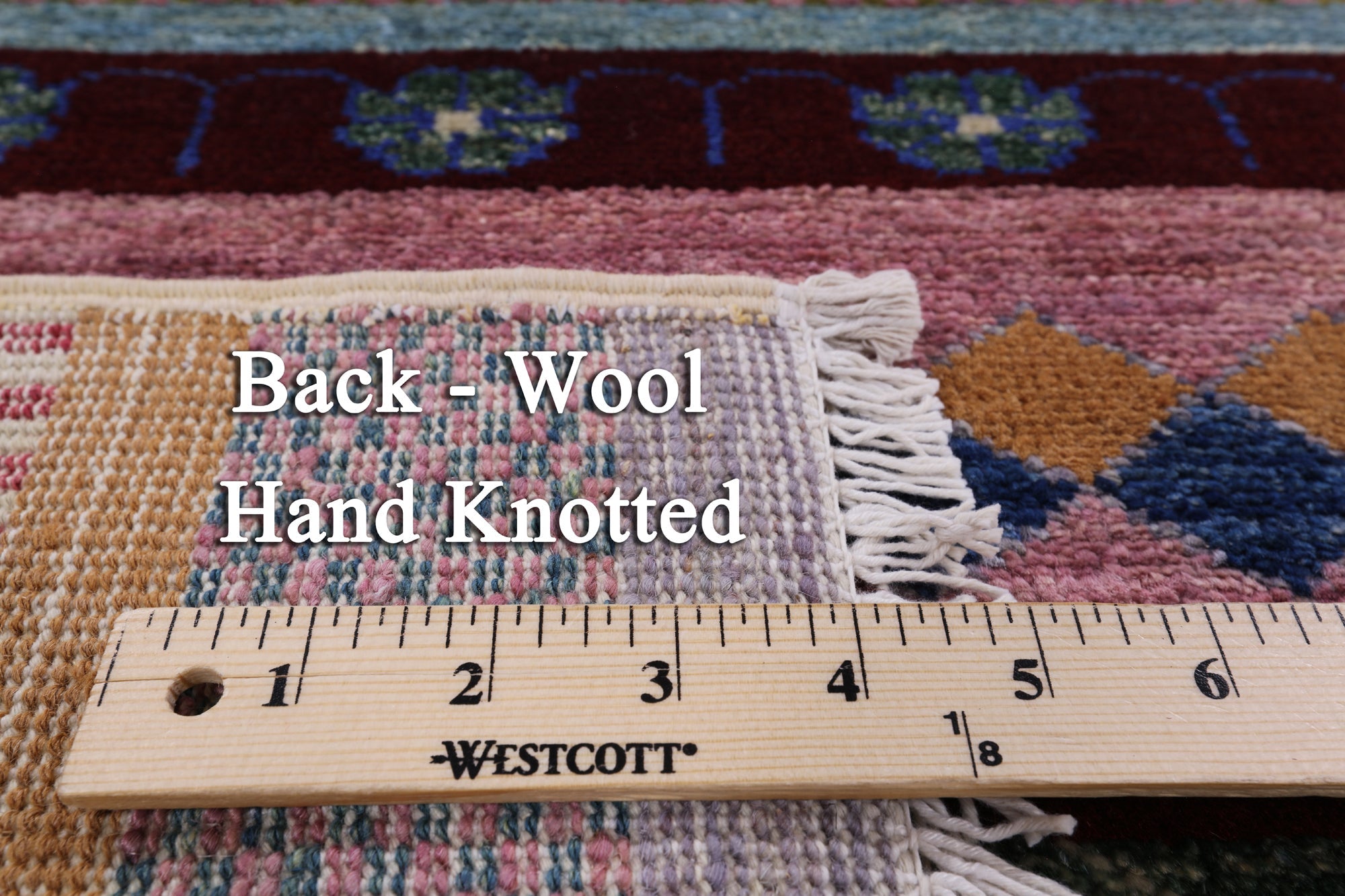 Gabbeh rugs are hand knotted to reflect tribal and other patterns such as solids, and nomadic designs. The simplistic "child-like" bold designs of Gabbeh rugs is what makes them perfectly suitable for any decor. Gabbeh rugs are made from high-quality wool and have a high density of knots. Gabbeh rugs are hand-knotted and eco-friendly, because only natural dyes are used in their production.