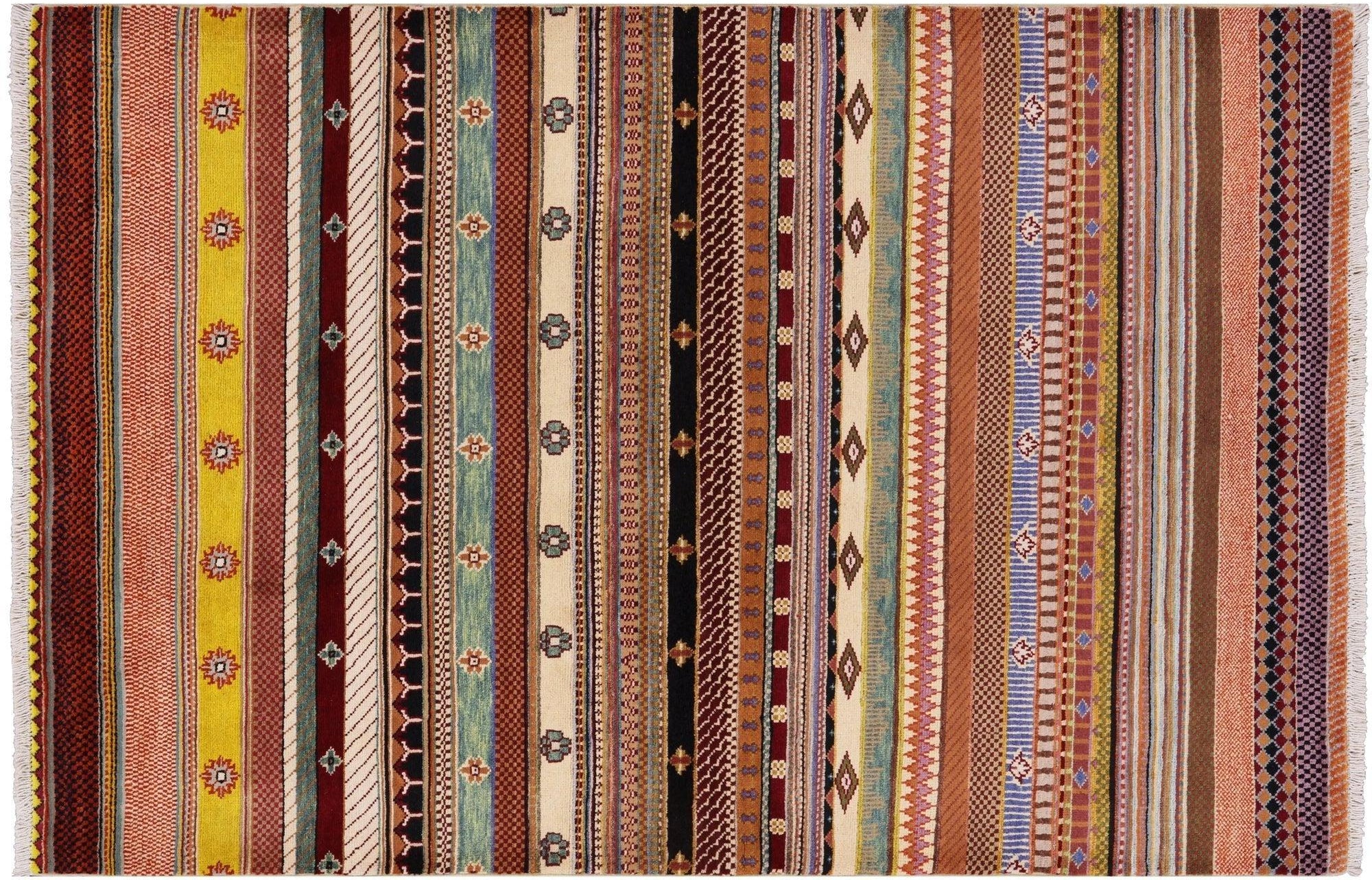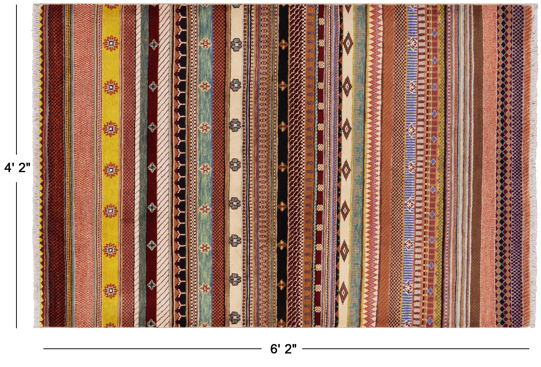4' 2" X 6' 2" Loribaft Hand Knotted Persian Gabbeh Rug - P7517