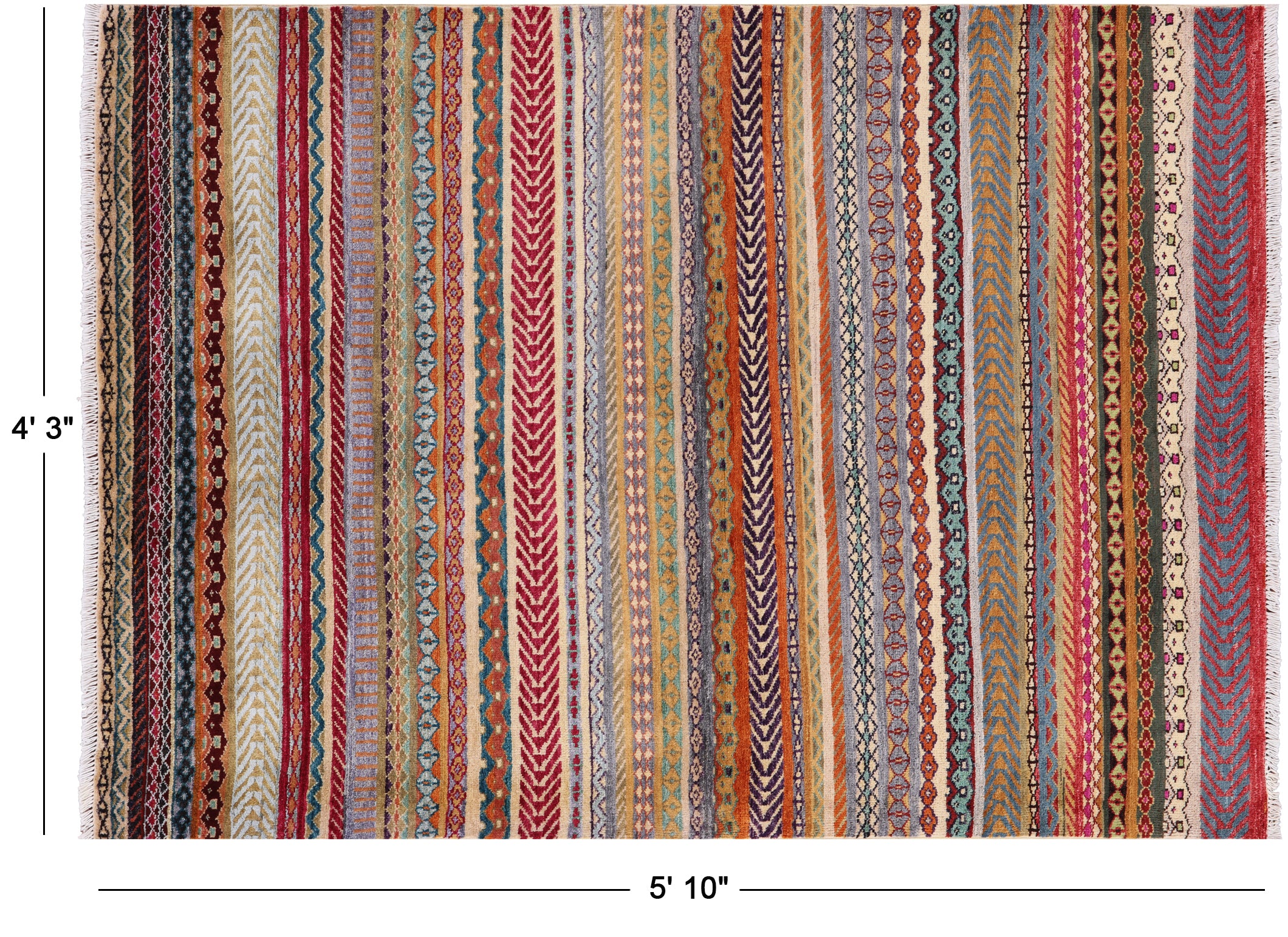 4' 3" X 5' 10" Loribaft Persian Gabbeh Hand Knotted Area Rug - P7478