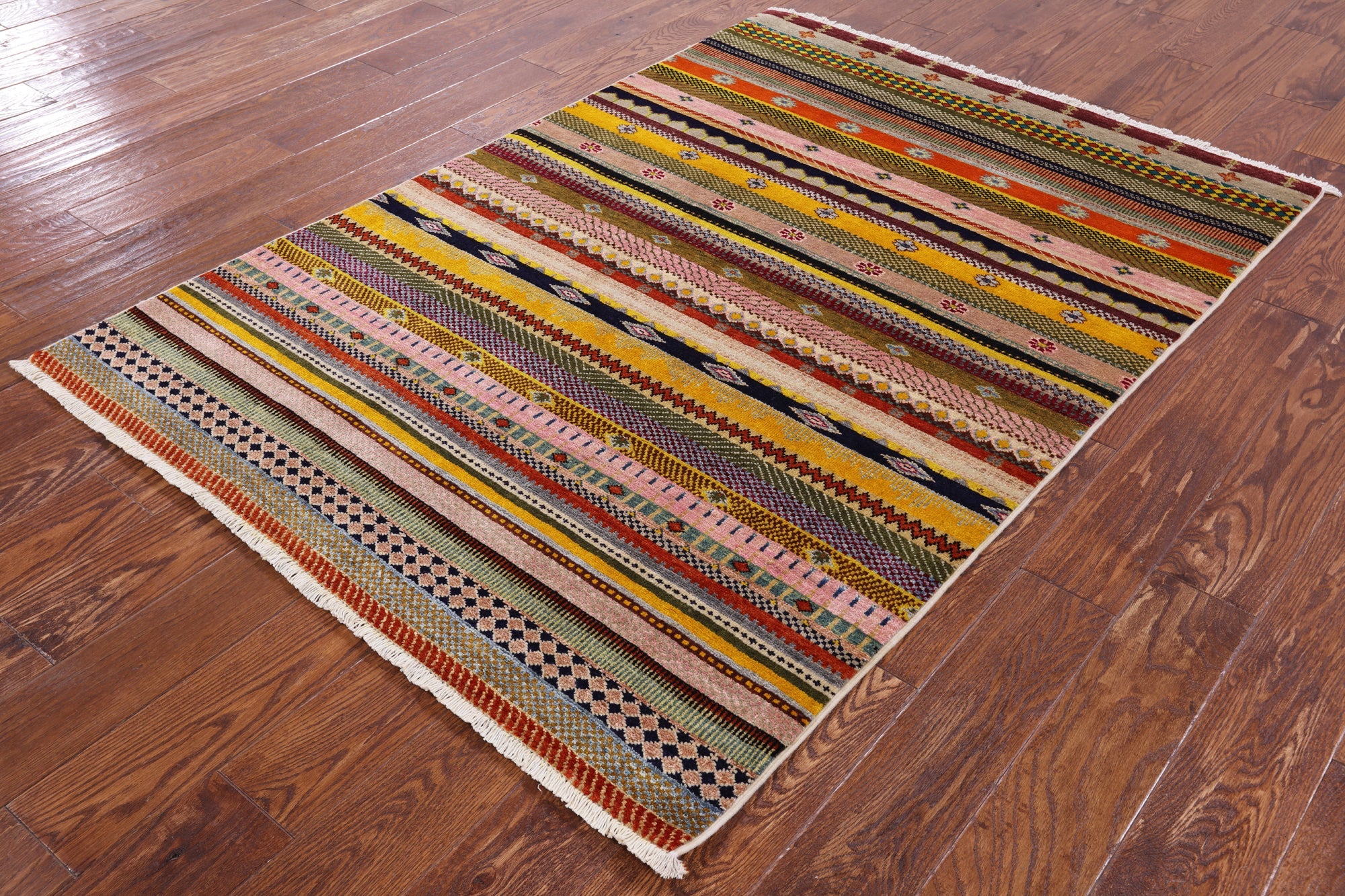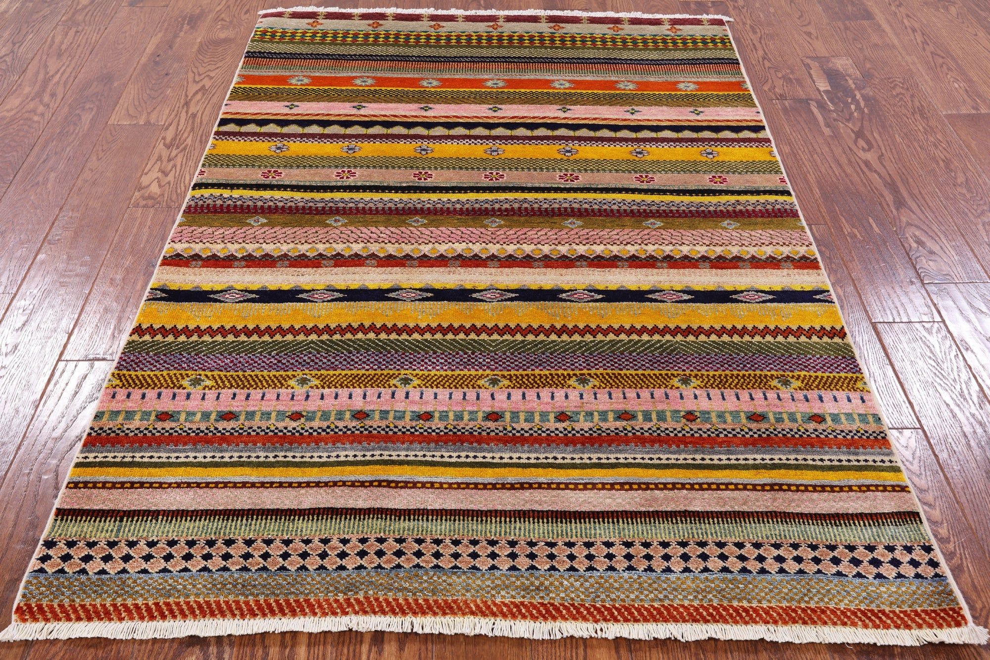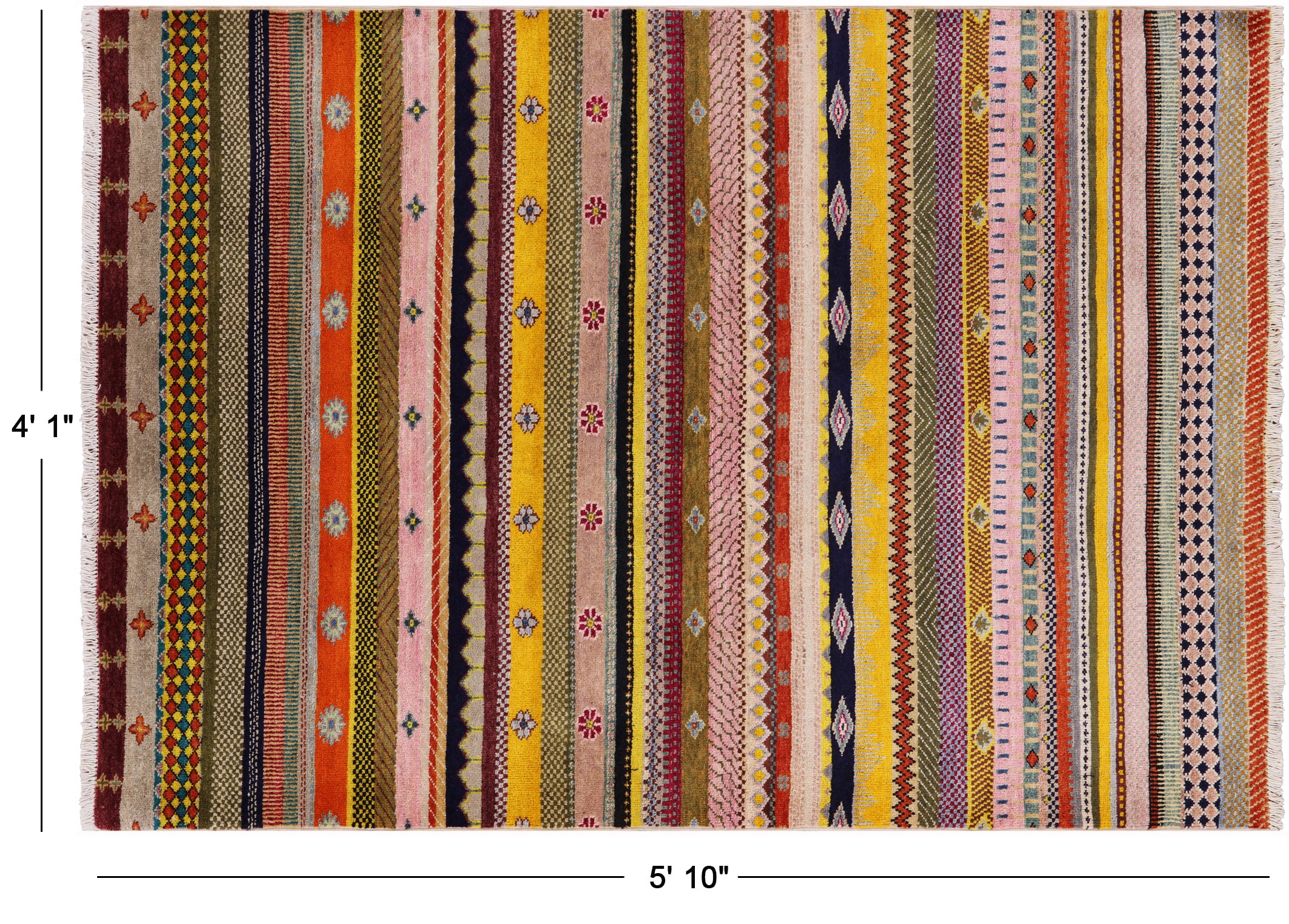 4' 1" X 5' 10" Loribaft Persian Gabbeh Handmade Wool Rug - P7562