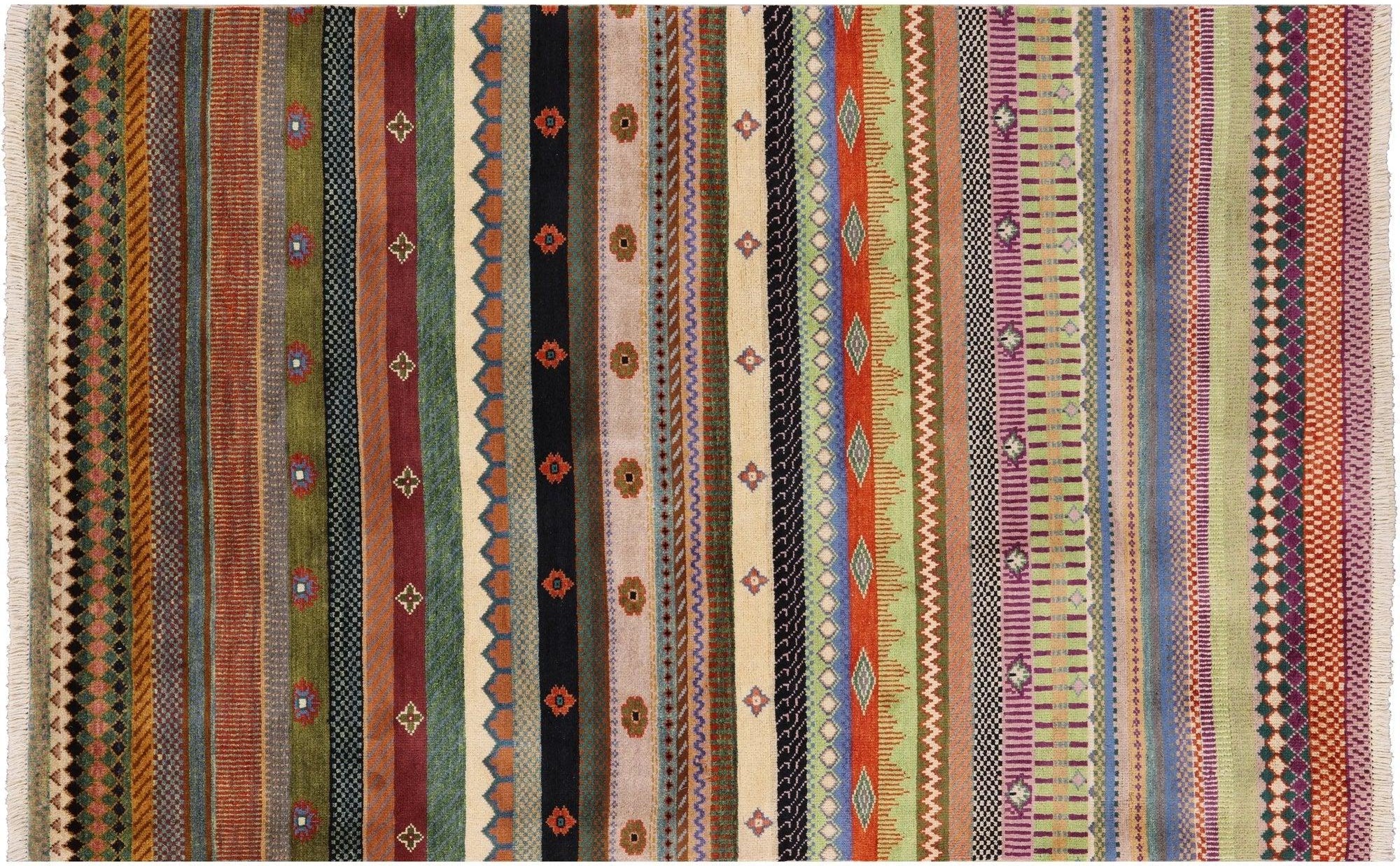 3' 11" X 6' 1" Persian Gabbeh Loribaft Hand Knotted Area Rug - P7470