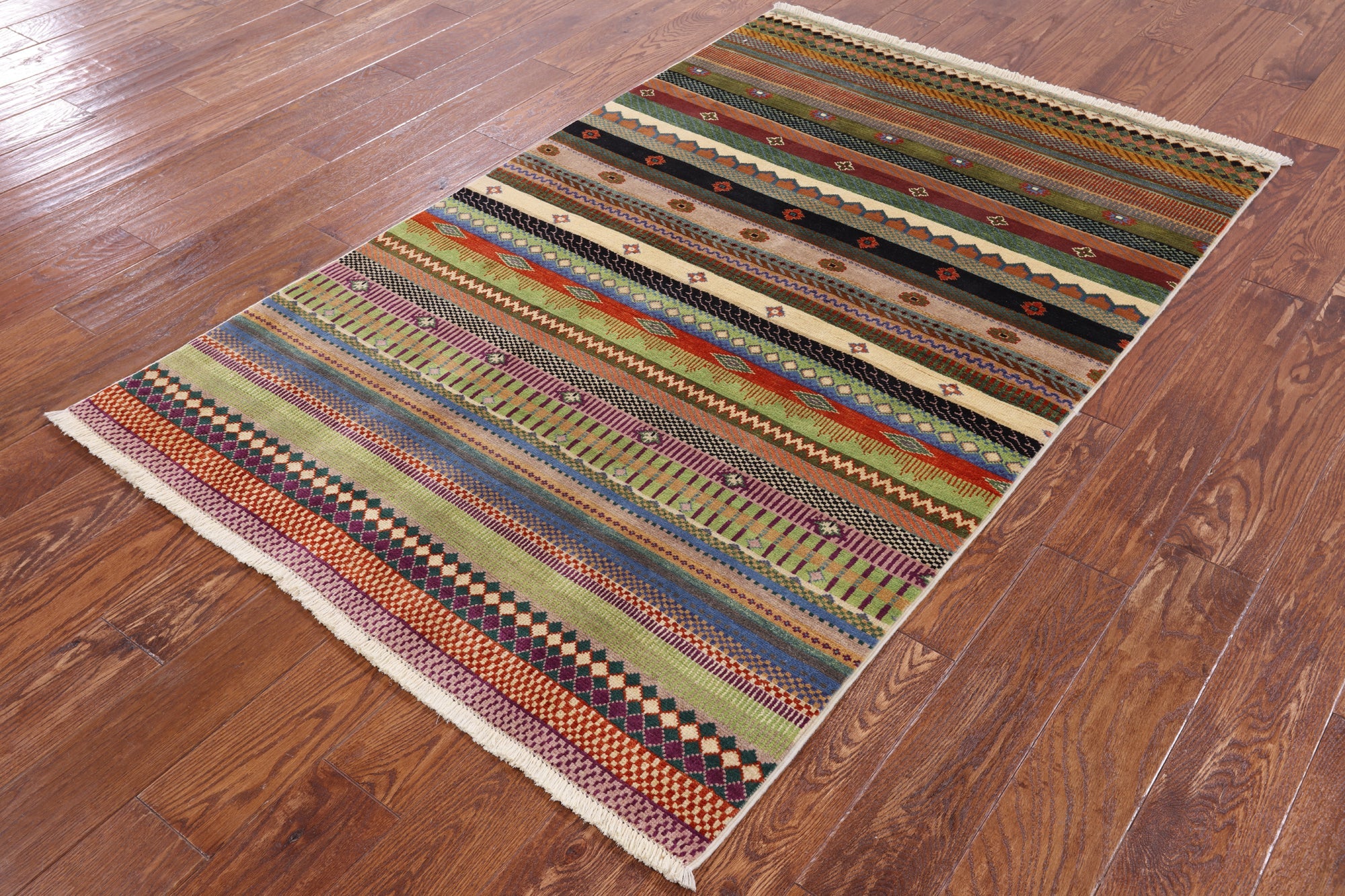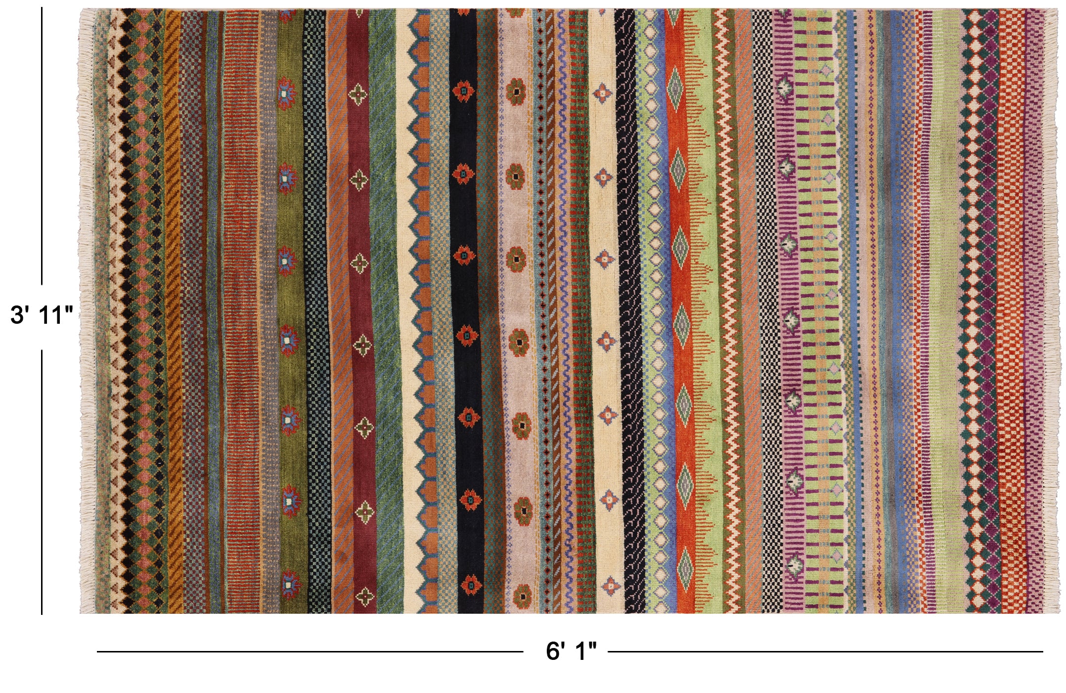 3' 11" X 6' 1" Persian Gabbeh Loribaft Hand Knotted Area Rug - P7470 is backordered and will ship as soon as it is back in stock.