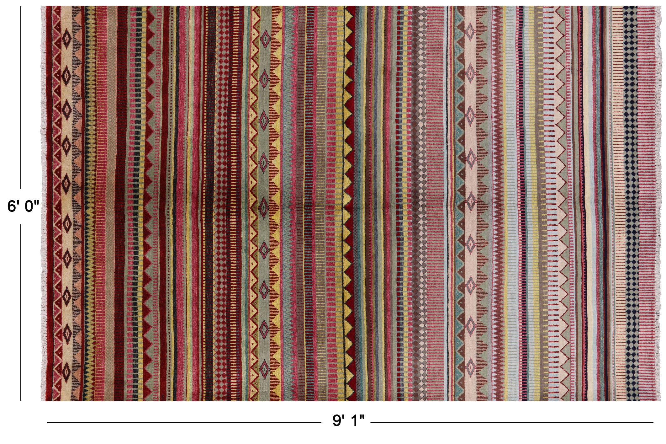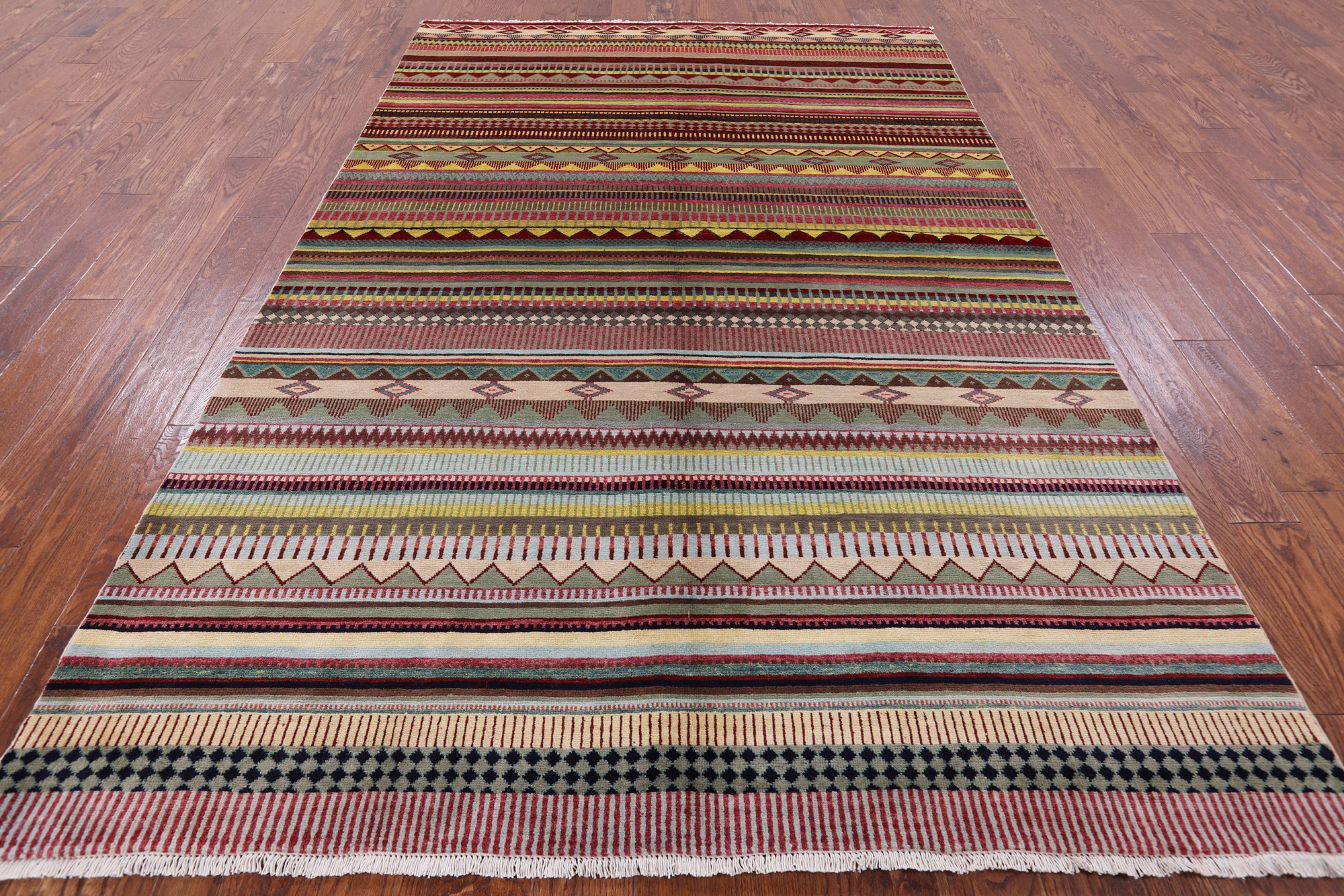 6' 0" X 9' 1" Persian Gabbeh Loribaft Hand Knotted Rug - P7416