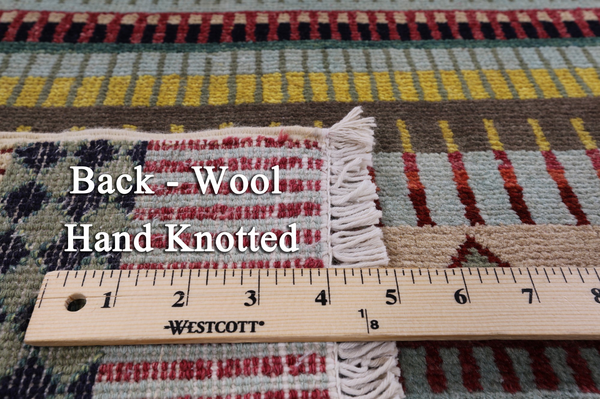 Gabbeh rugs are hand knotted to reflect tribal and other patterns such as solids, and nomadic designs. The simplistic "child-like" bold designs of Gabbeh rugs is what makes them perfectly suitable for any decor. Gabbeh rugs are made from high-quality wool and have a high density of knots. Gabbeh rugs are hand-knotted and eco-friendly, because only natural dyes are used in their production.