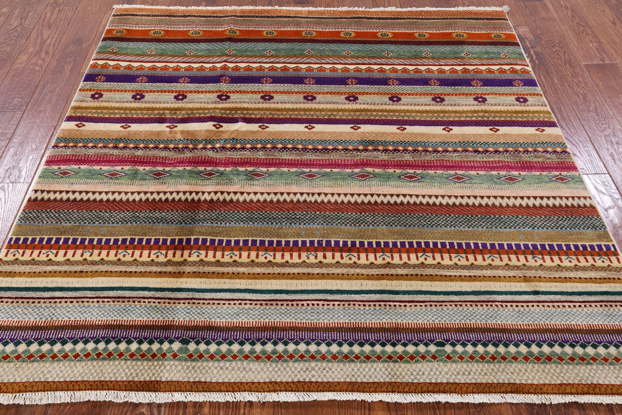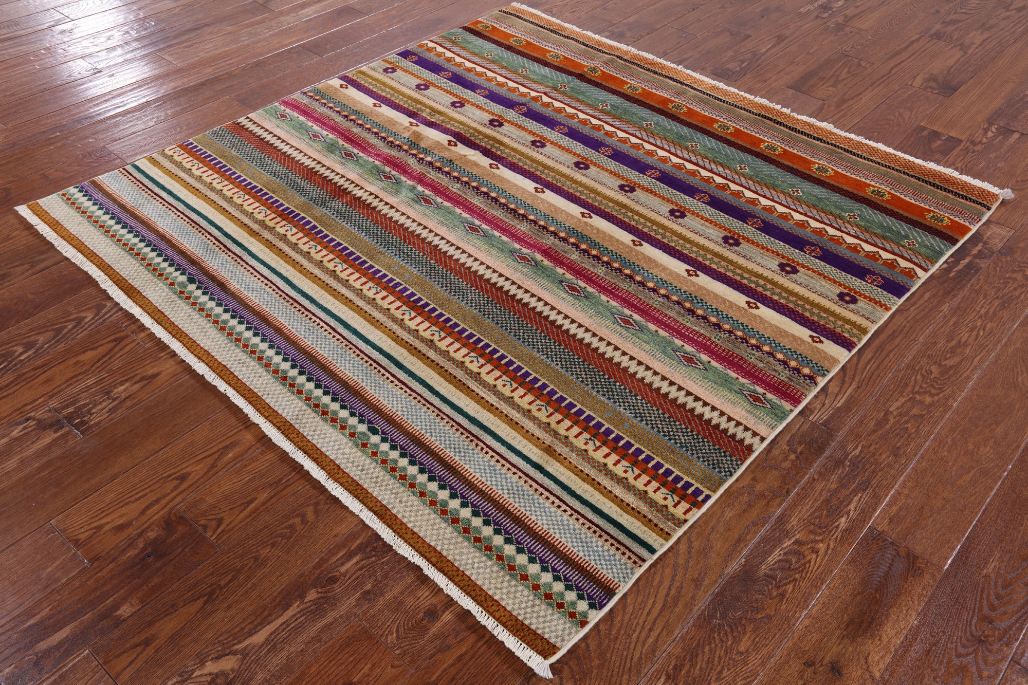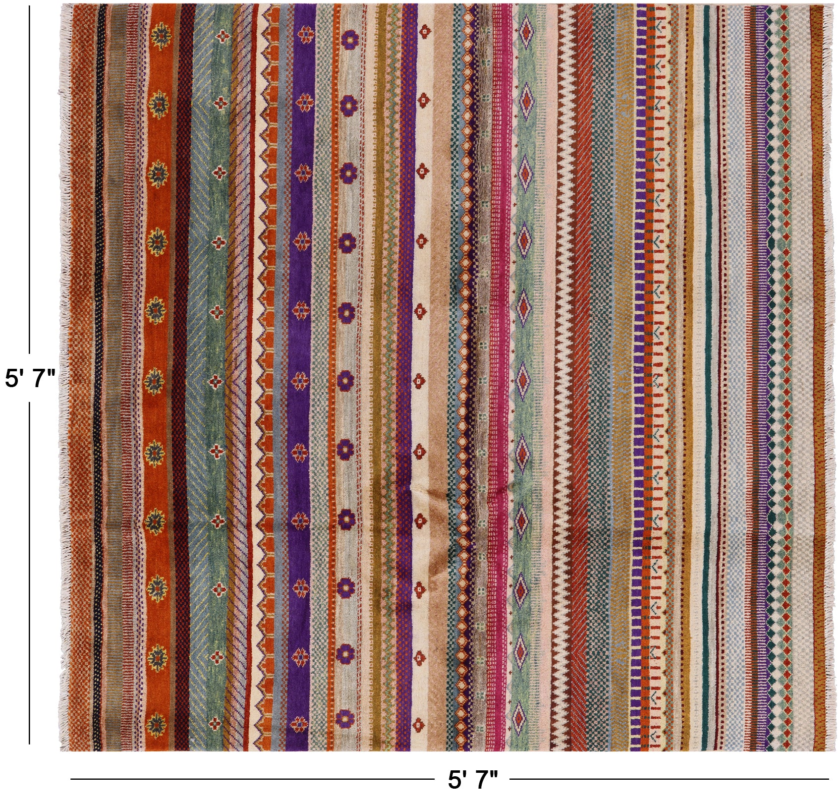 6' Square Hand-Knotted Loribaft Persian Gabbeh Rug - P7431 is backordered and will ship as soon as it is back in stock.
