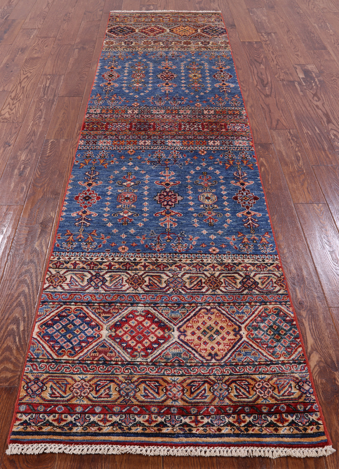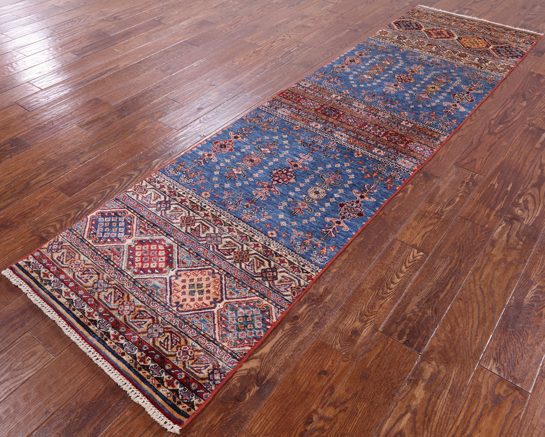 Blue Hand-Knotted Khorjin Super Kazak Runner Rug 2' 6" X 9' 9" - Q7593