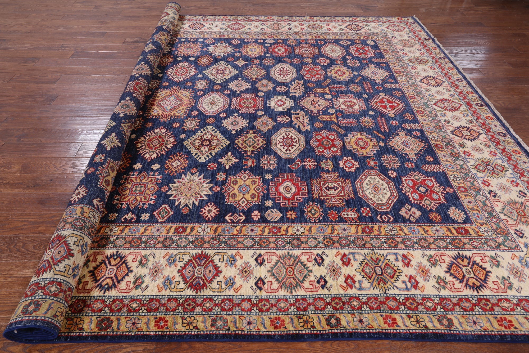 Blue 10' 0" X 13' 4" Hand-Knotted Super Fine Kazak Wool Rug - P7858 is backordered and will ship as soon as it is back in stock.