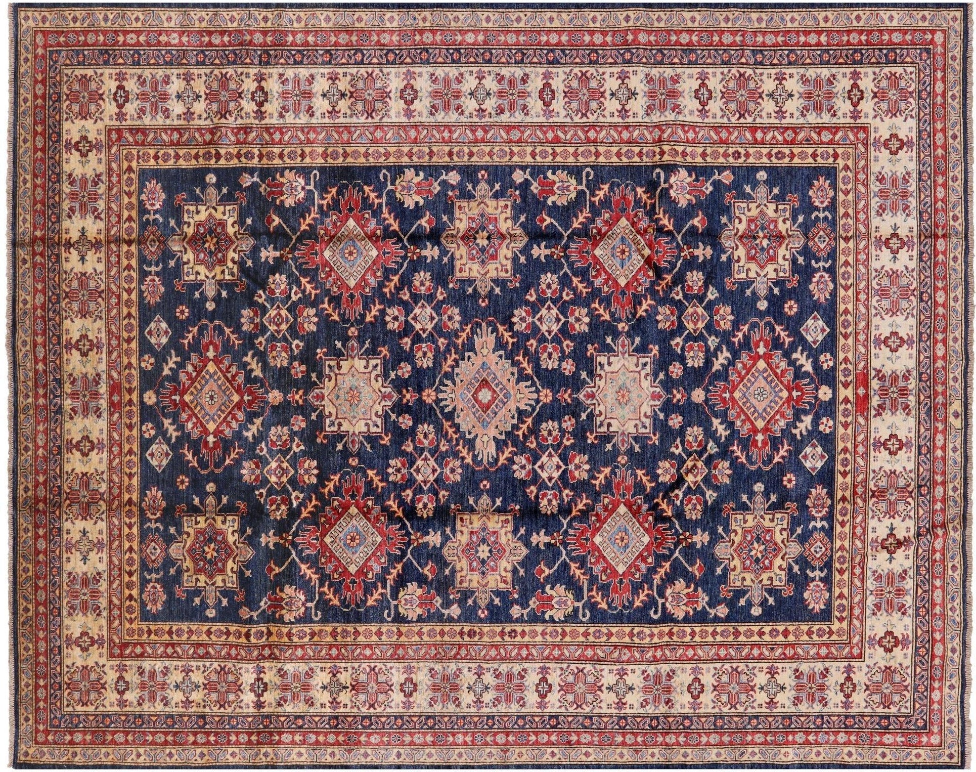 Blue Hand Knotted Super Kazak Area Rug 8' 0" X 9' 10" - P6716