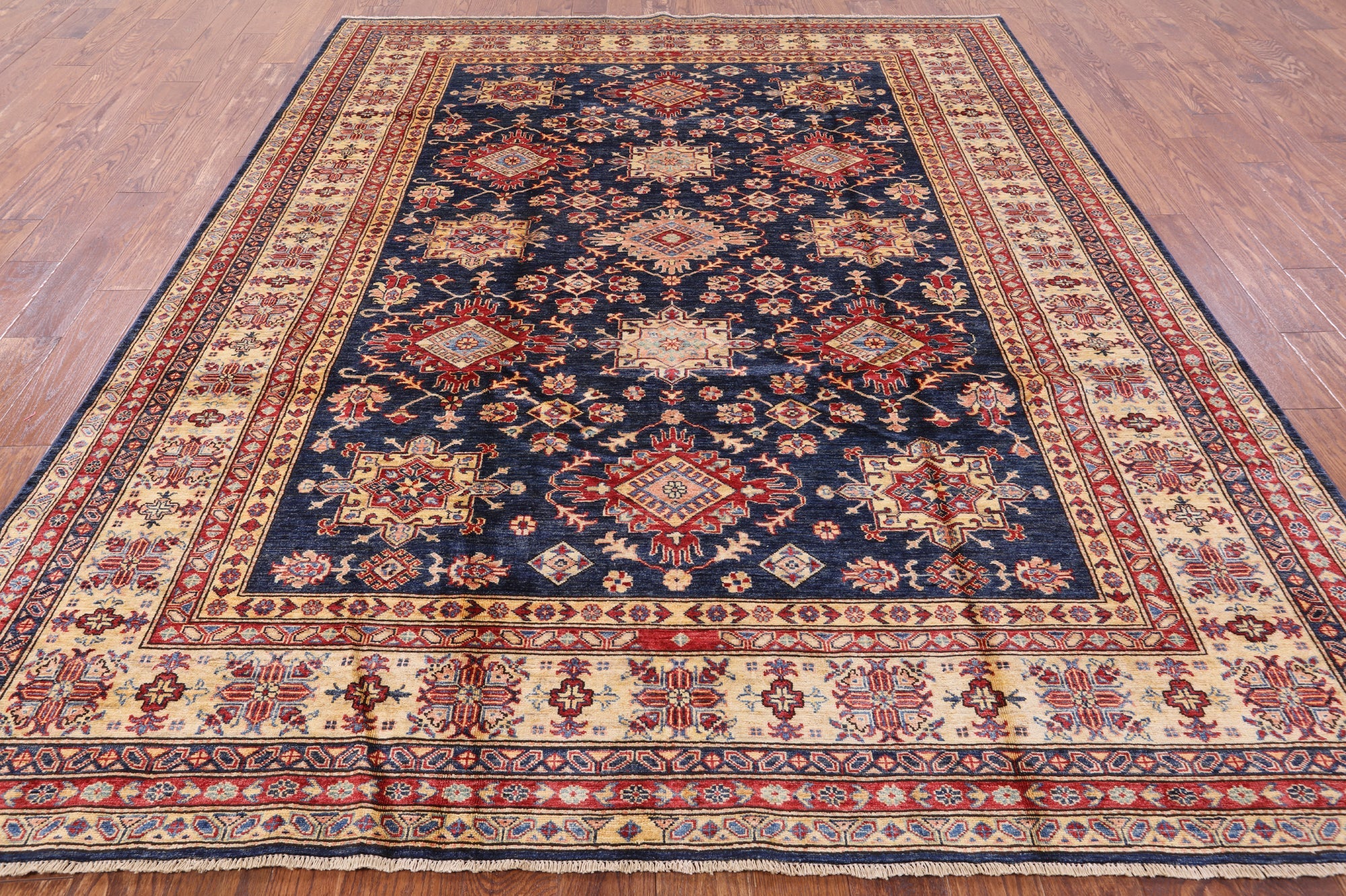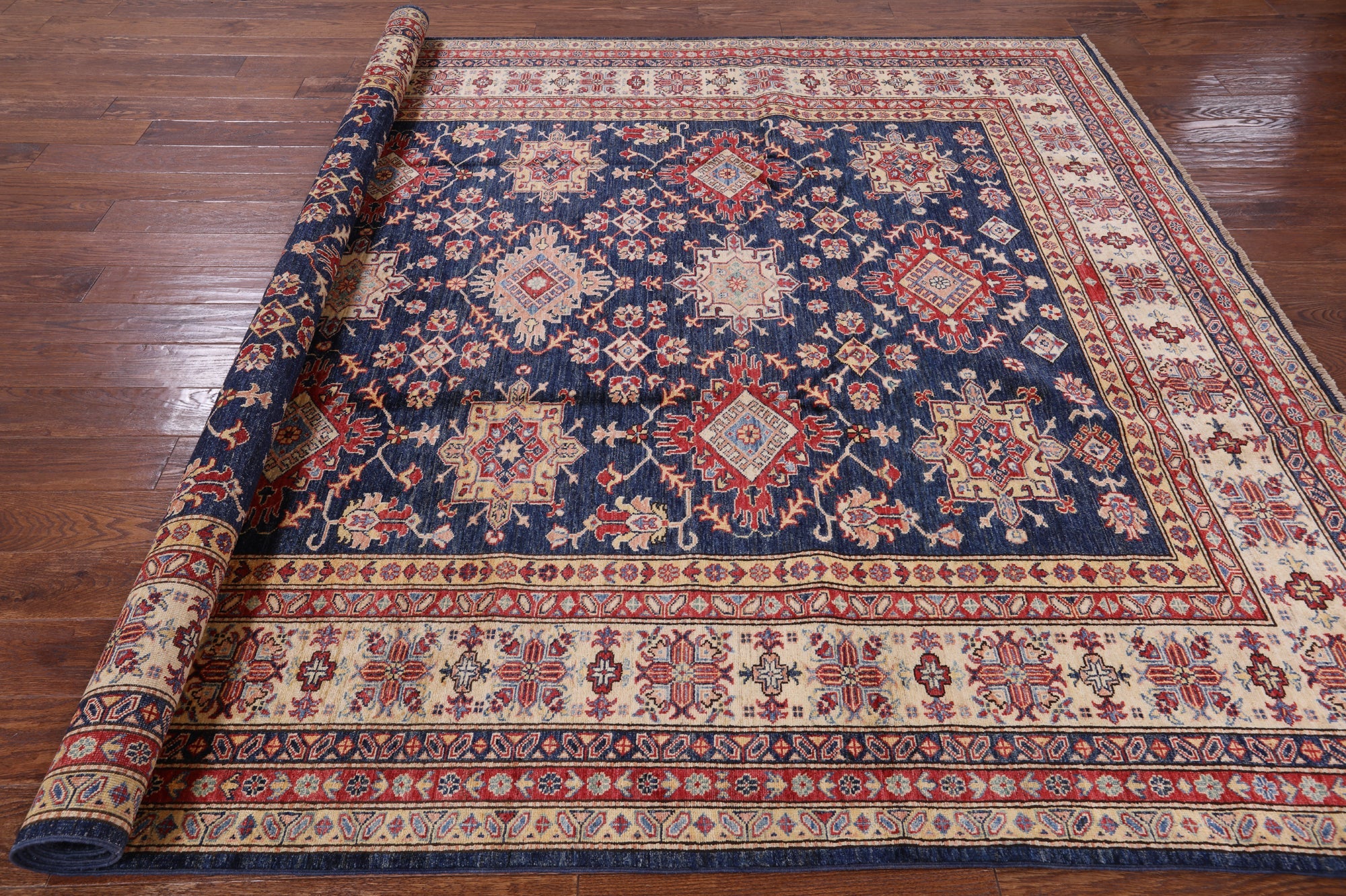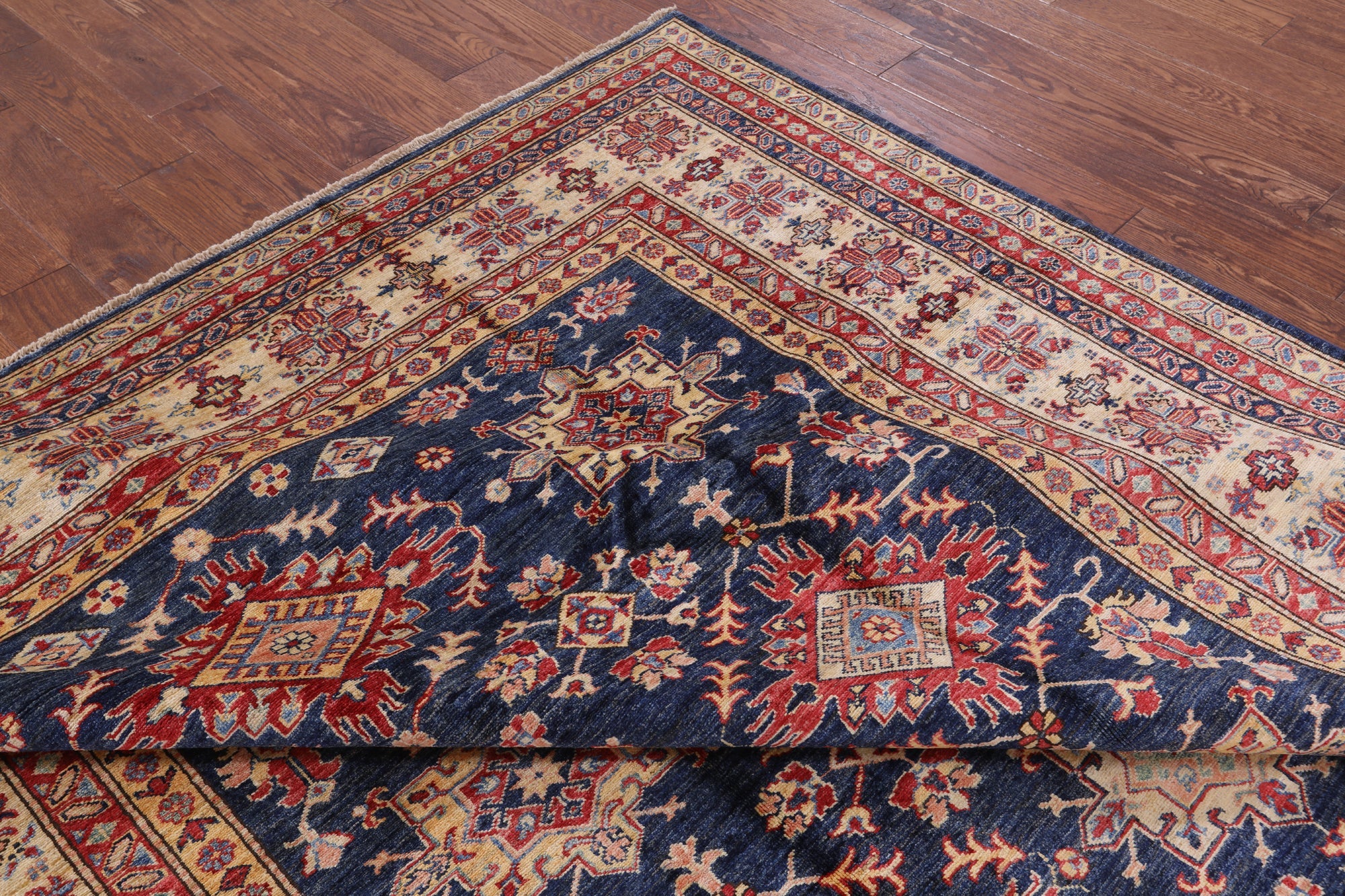 Blue Hand Knotted Super Kazak Area Rug 8' 0" X 9' 10" - P6716 is backordered and will ship as soon as it is back in stock.