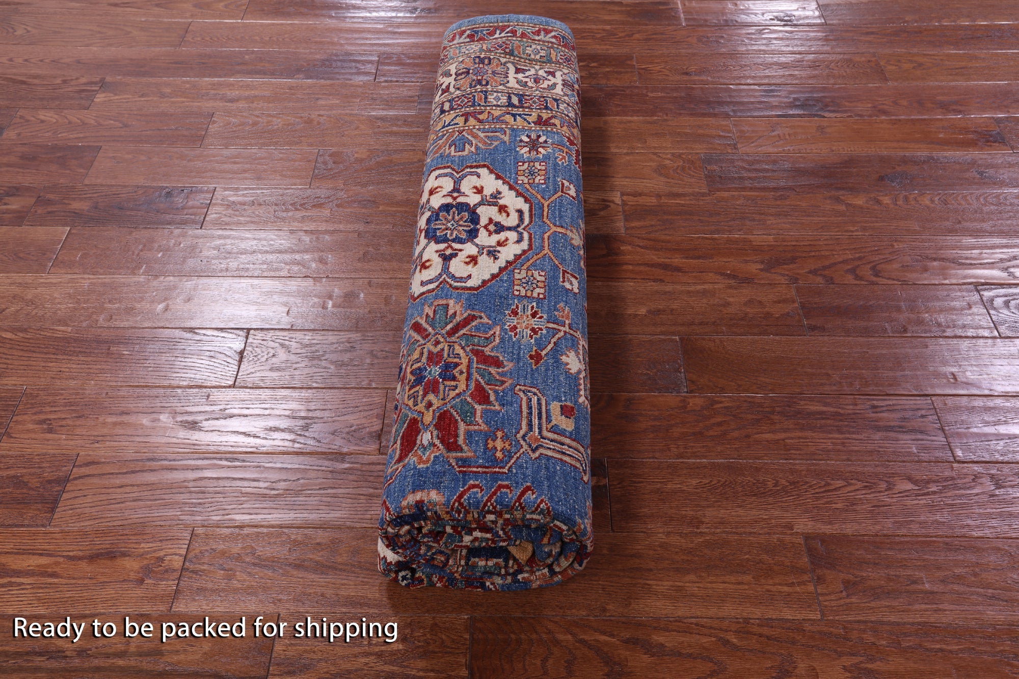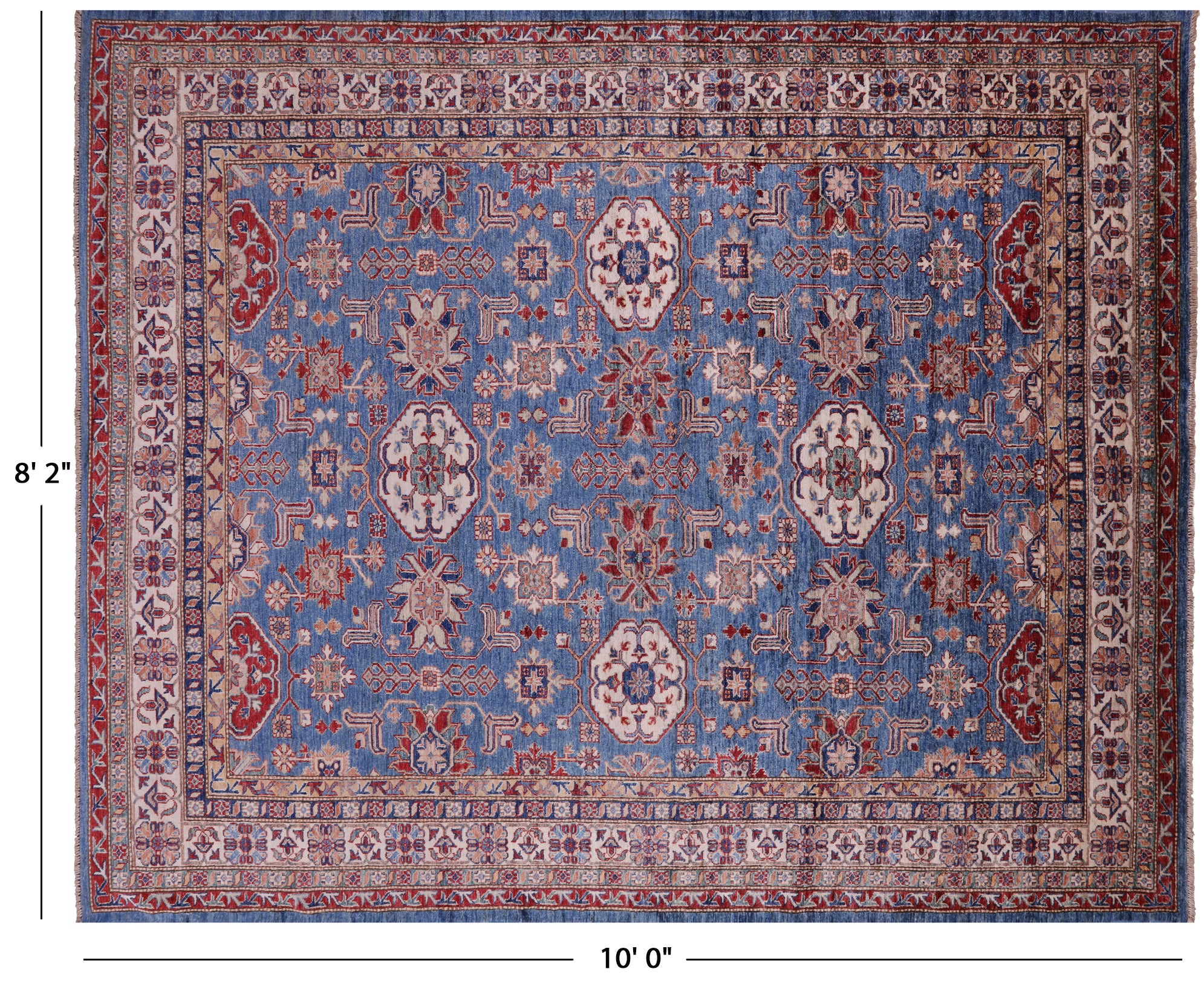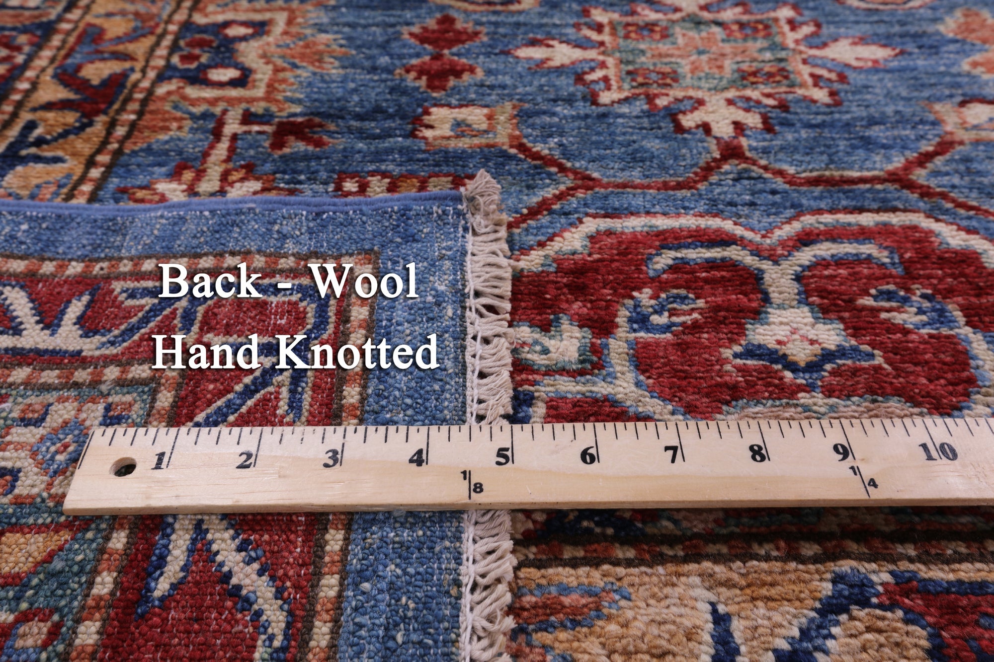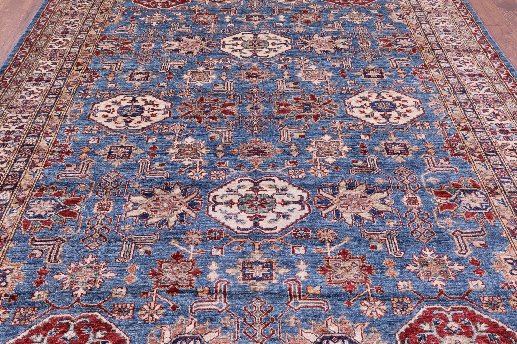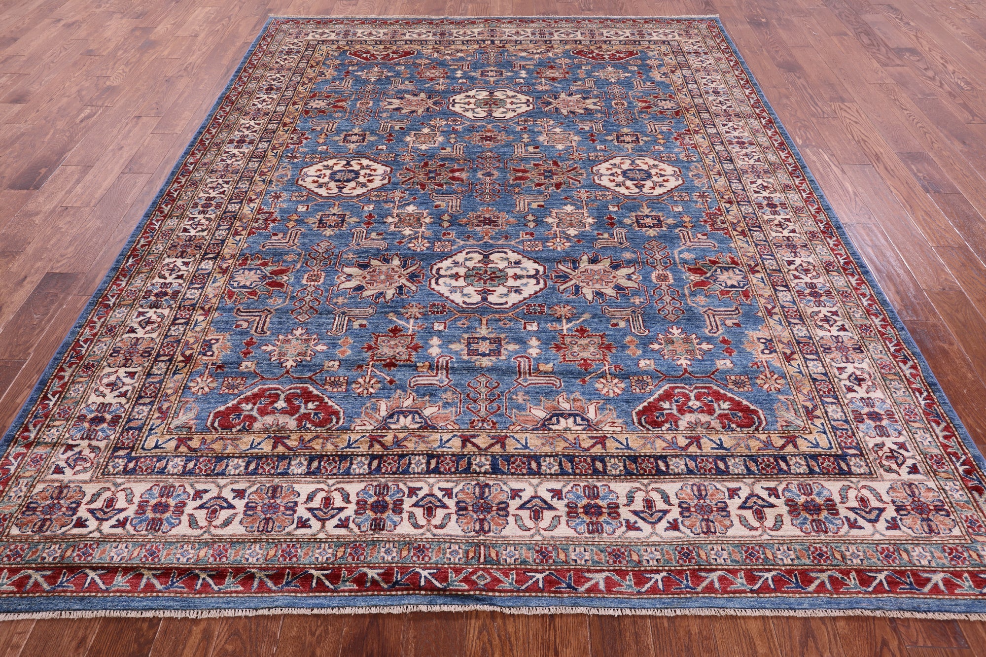 Blue Hand-Knotted Super Kazak Wool Rug 8' 2" X 10' 0" - Q18225 is backordered and will ship as soon as it is back in stock.