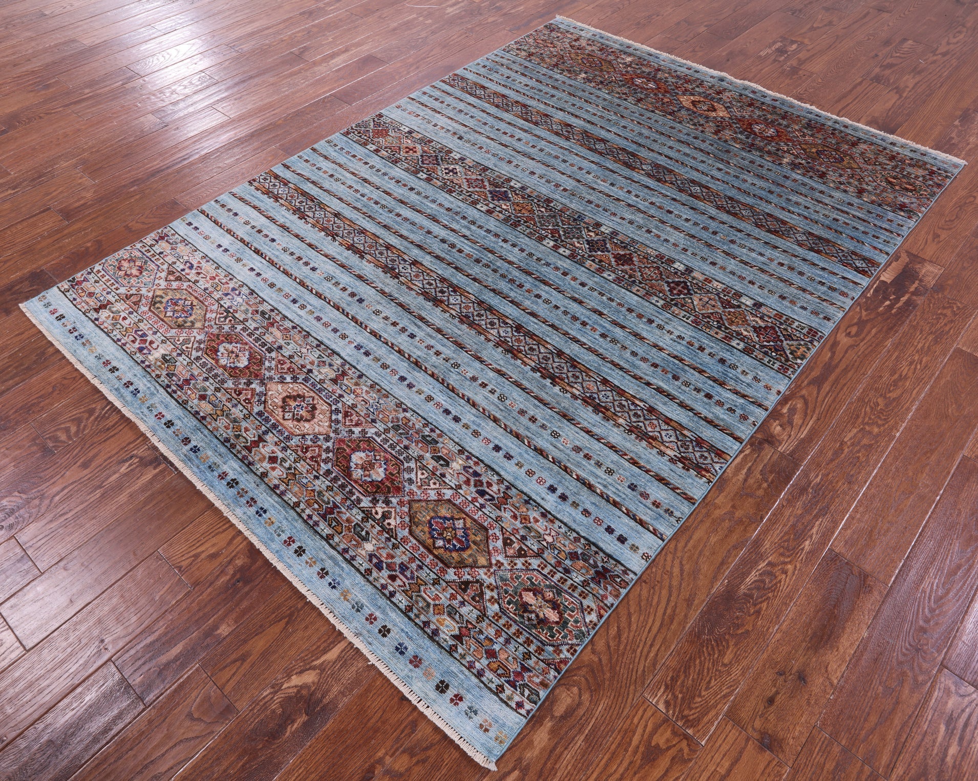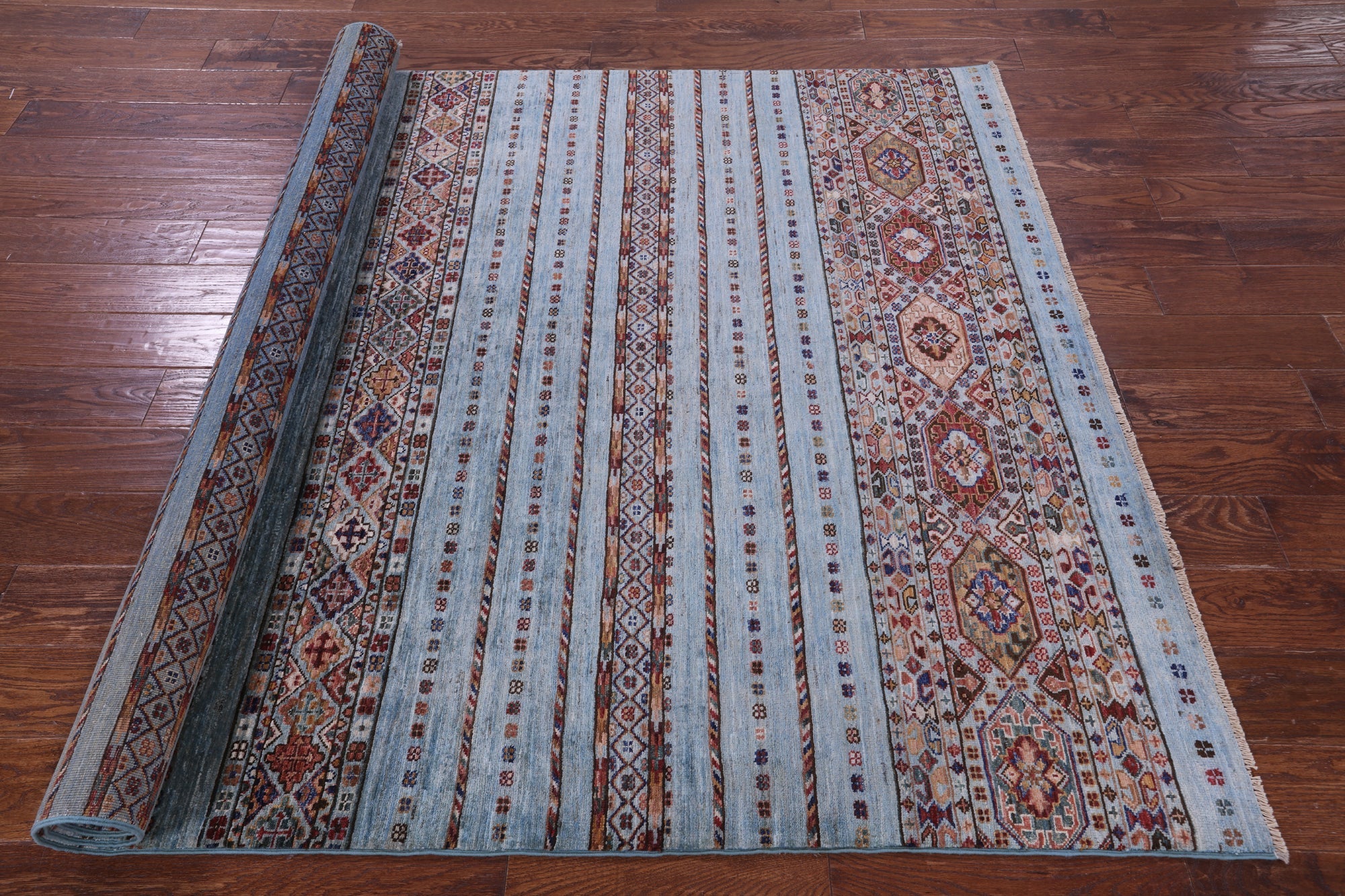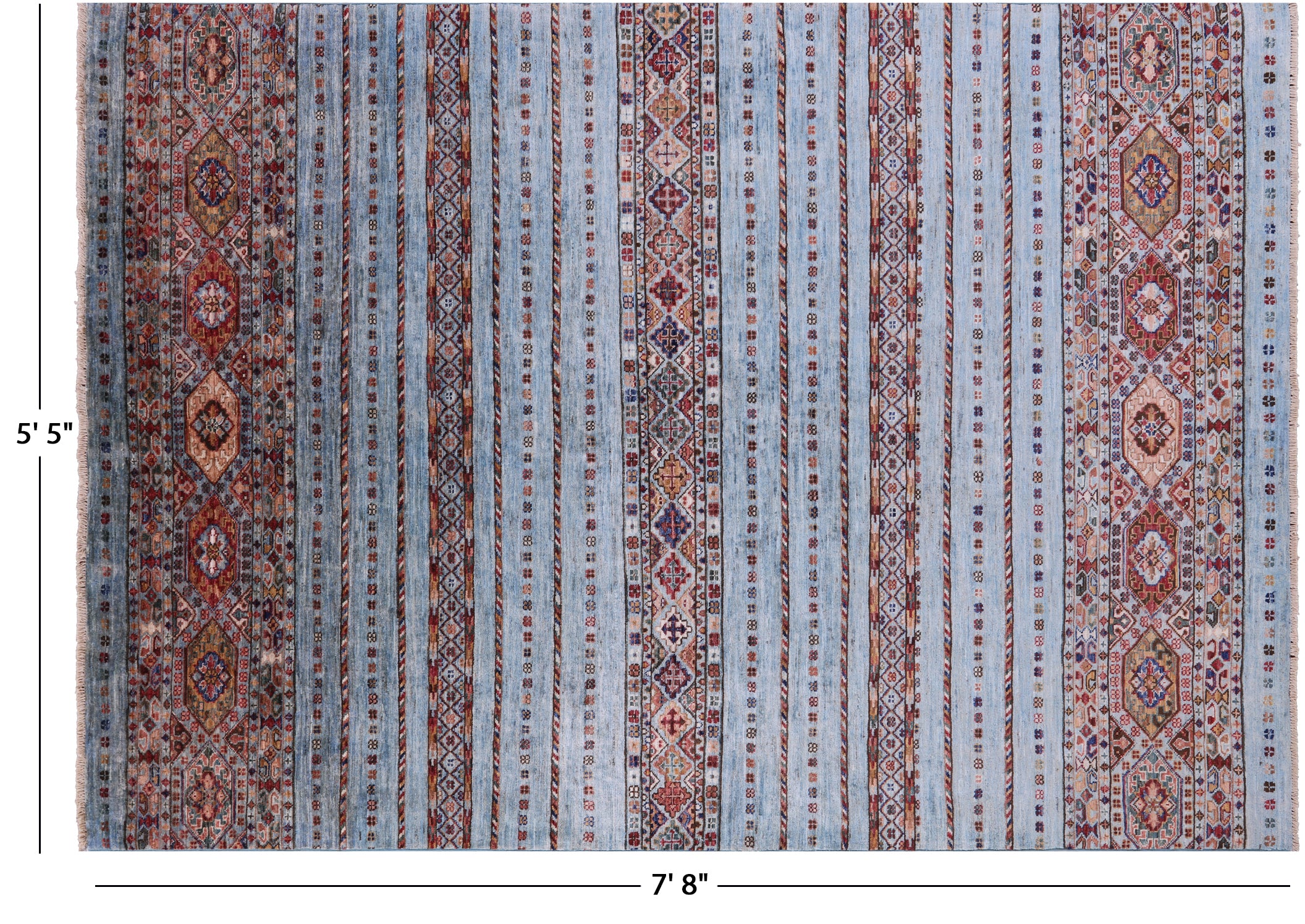 Blue Handmade Khorjin Super Kazak Wool Rug 5' 5" X 7' 8" - Q20613