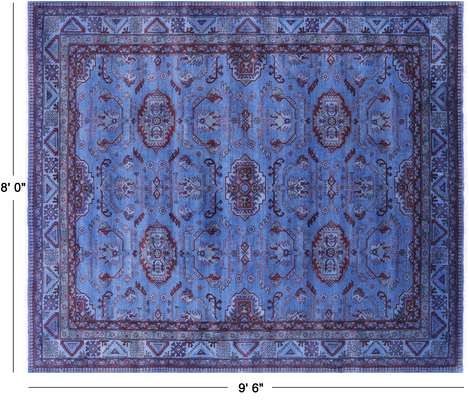 Blue Handmade Super Kazak Full Pile Overdyed Rug 8' 0" X 9' 6" - Q12858