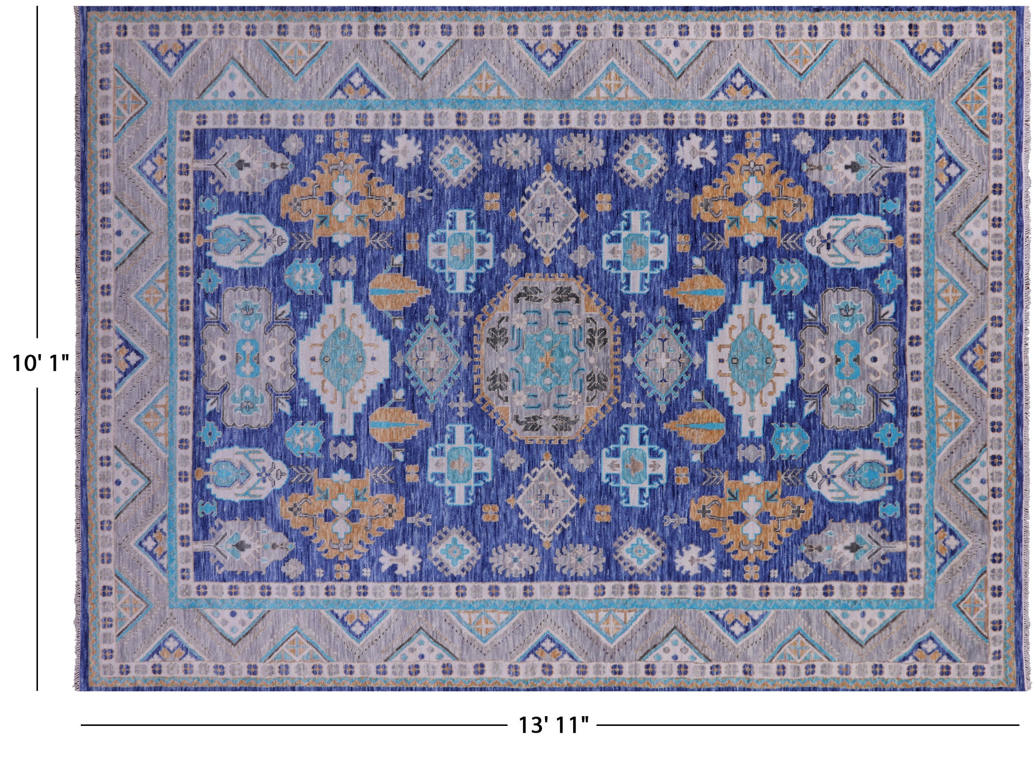 Blue Kazak Hand Knotted Wool Rug 10' 1" X 13' 11" - Q19909