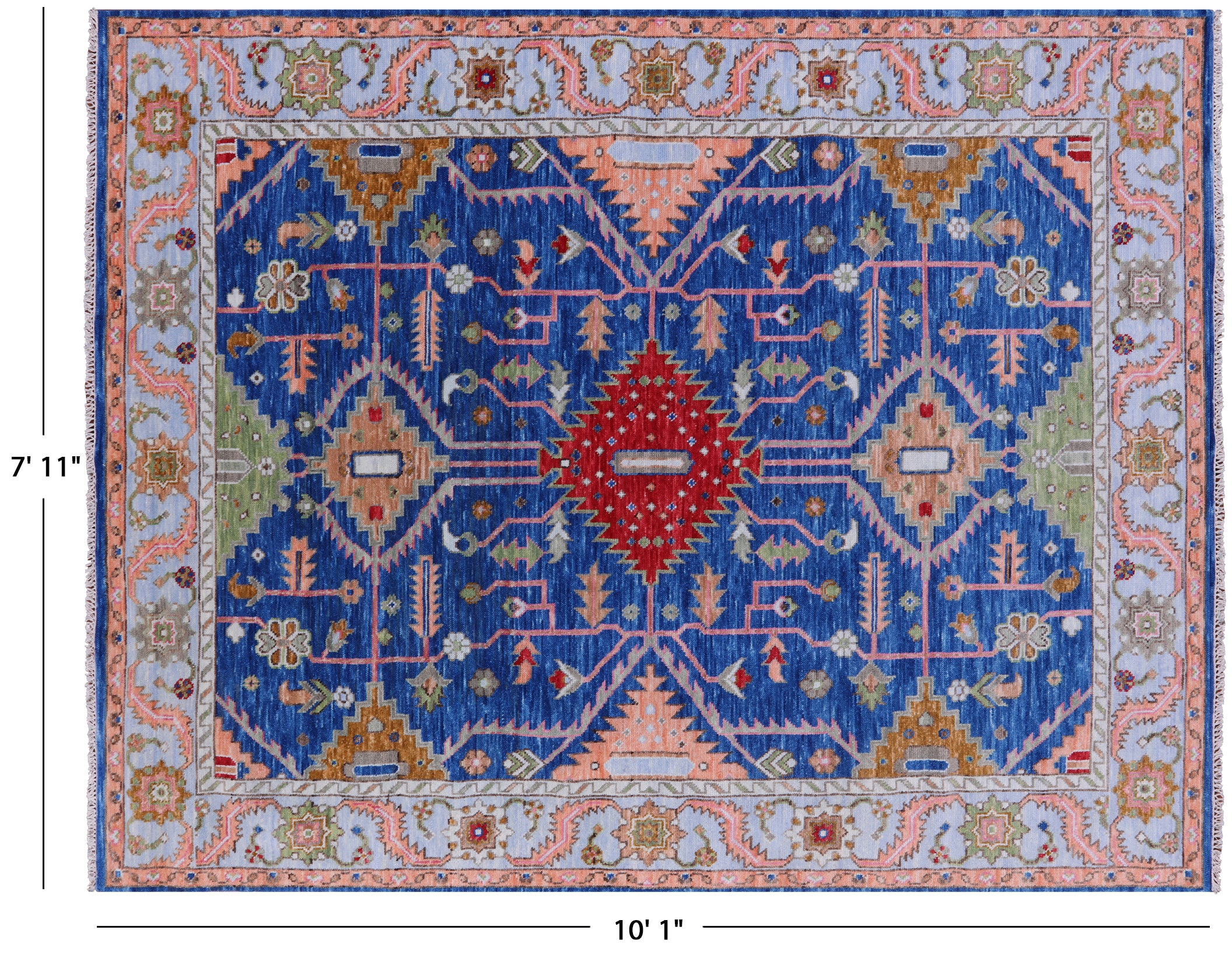 Blue 7' 11" X 10' 1" Kazak Hand-Knotted Wool Rug - Q20219