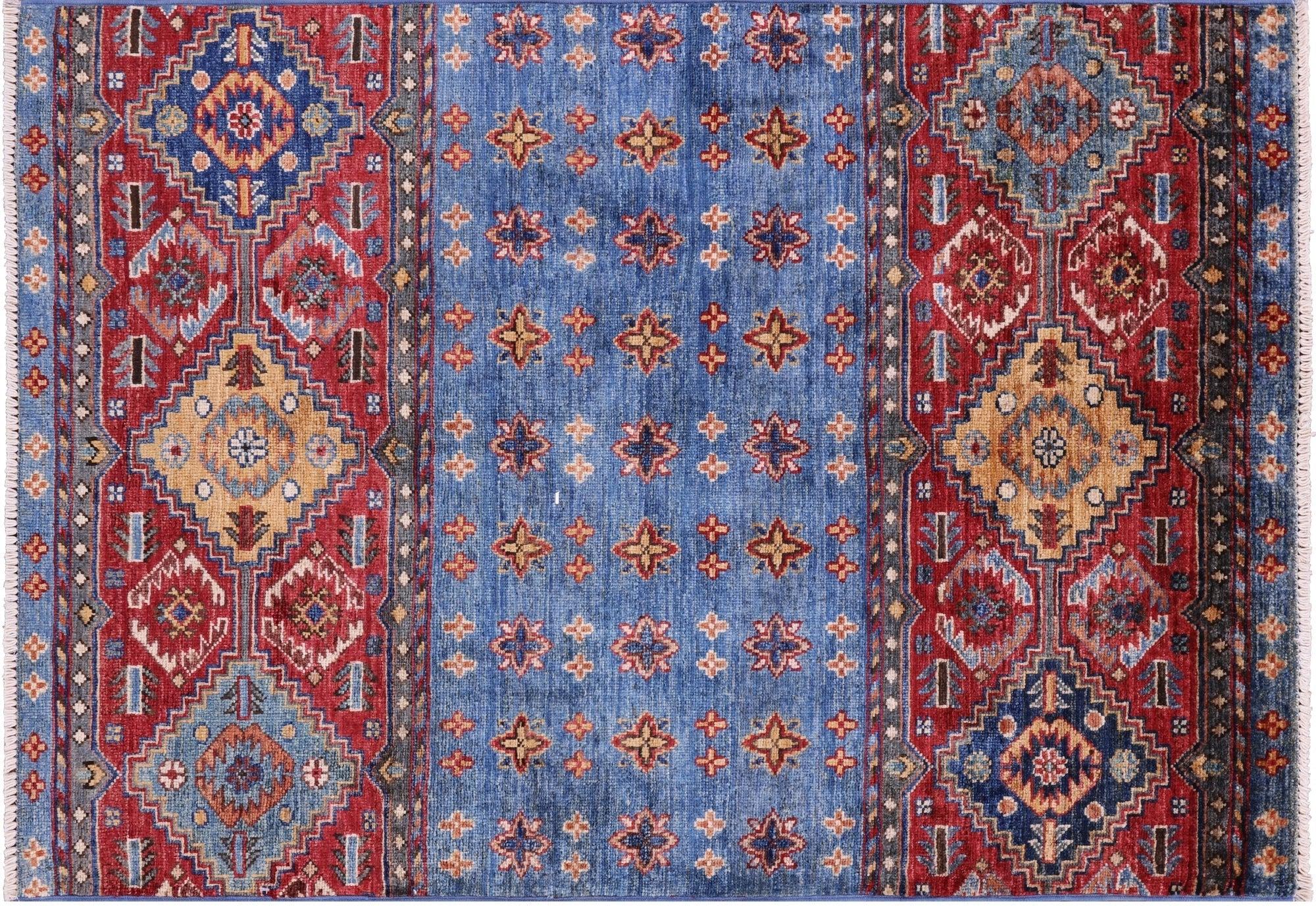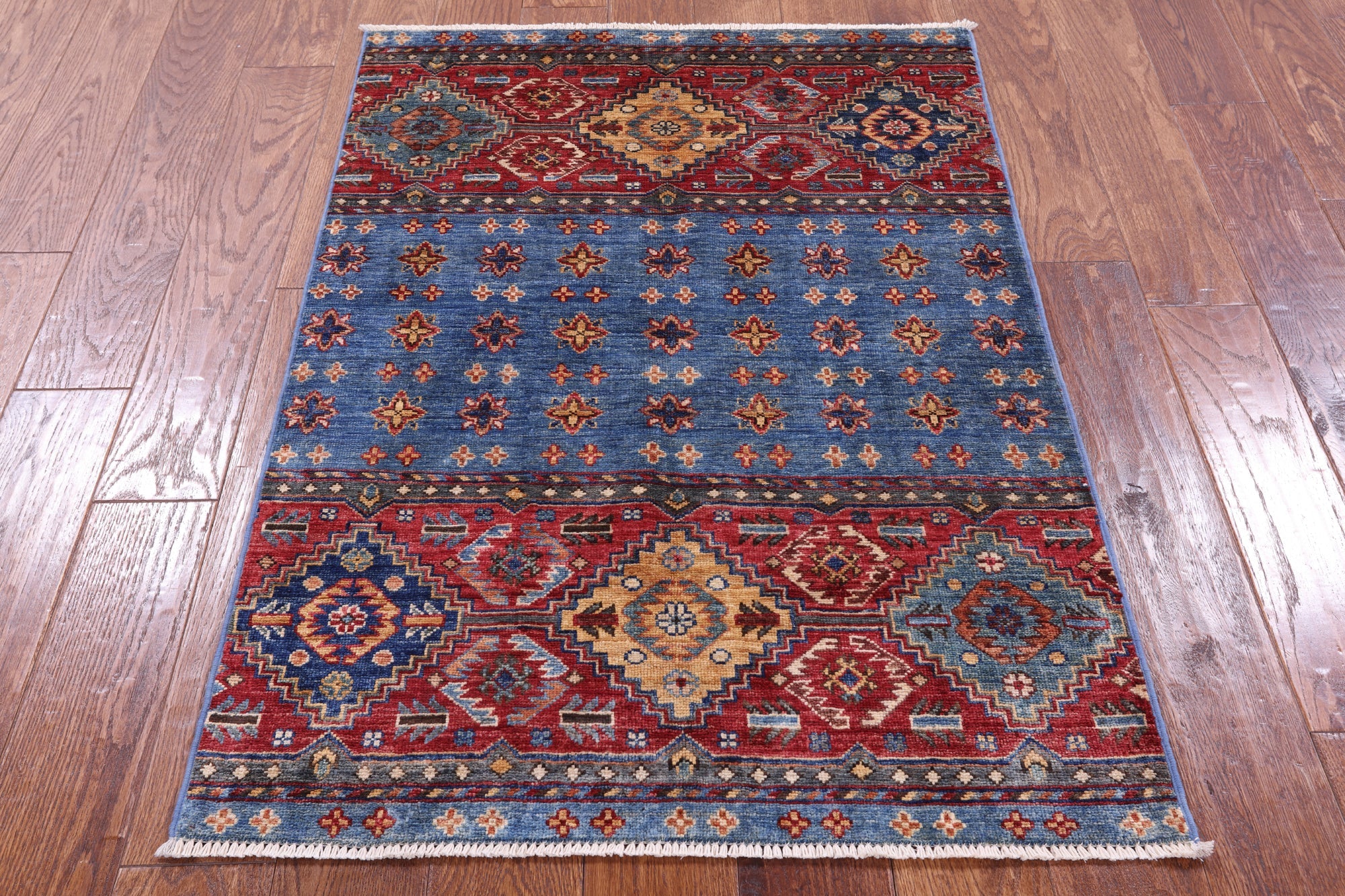 Blue 2' 9" X 4' 0" Khorjin Super Kazak Hand-Knotted Wool Rug - Q14048