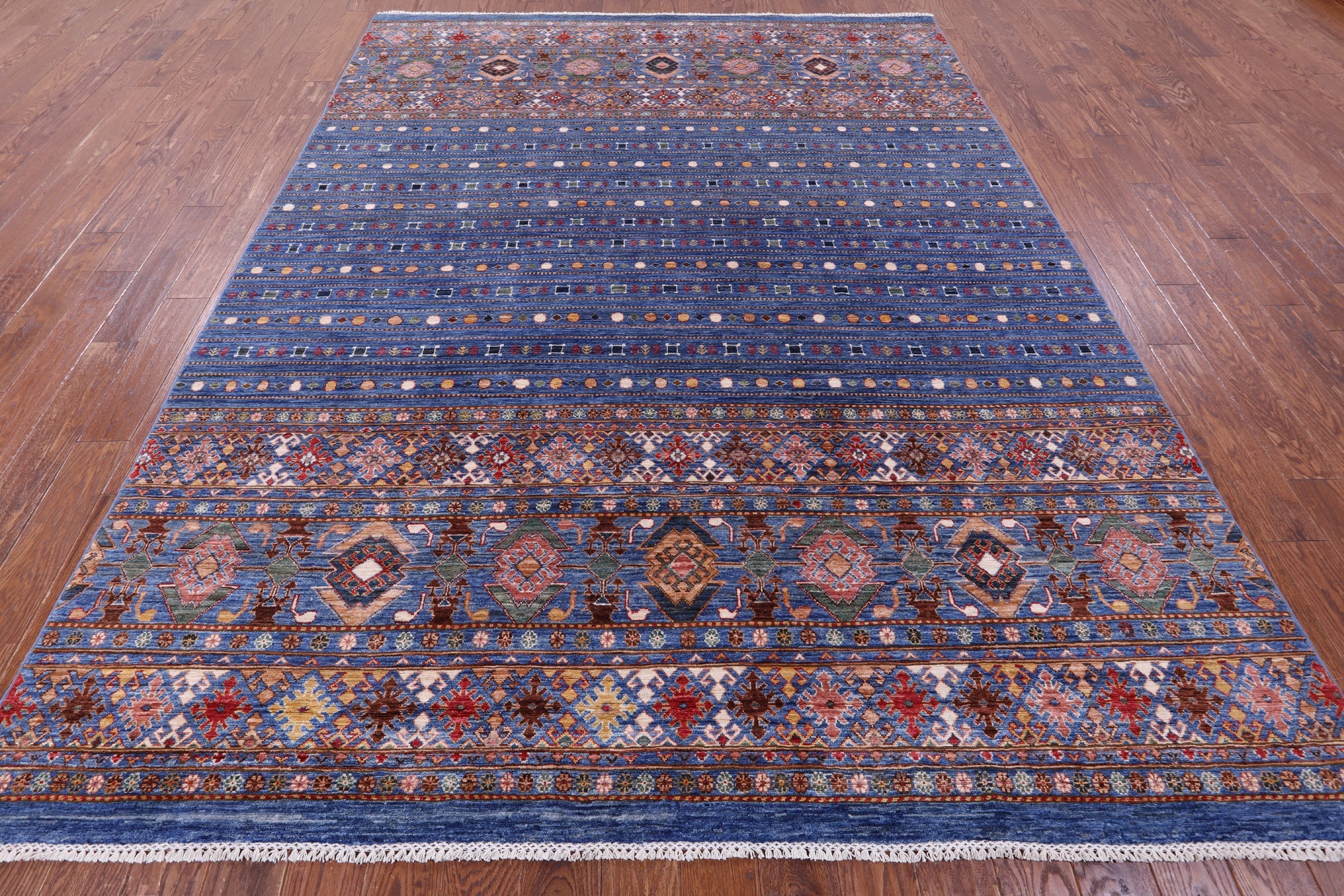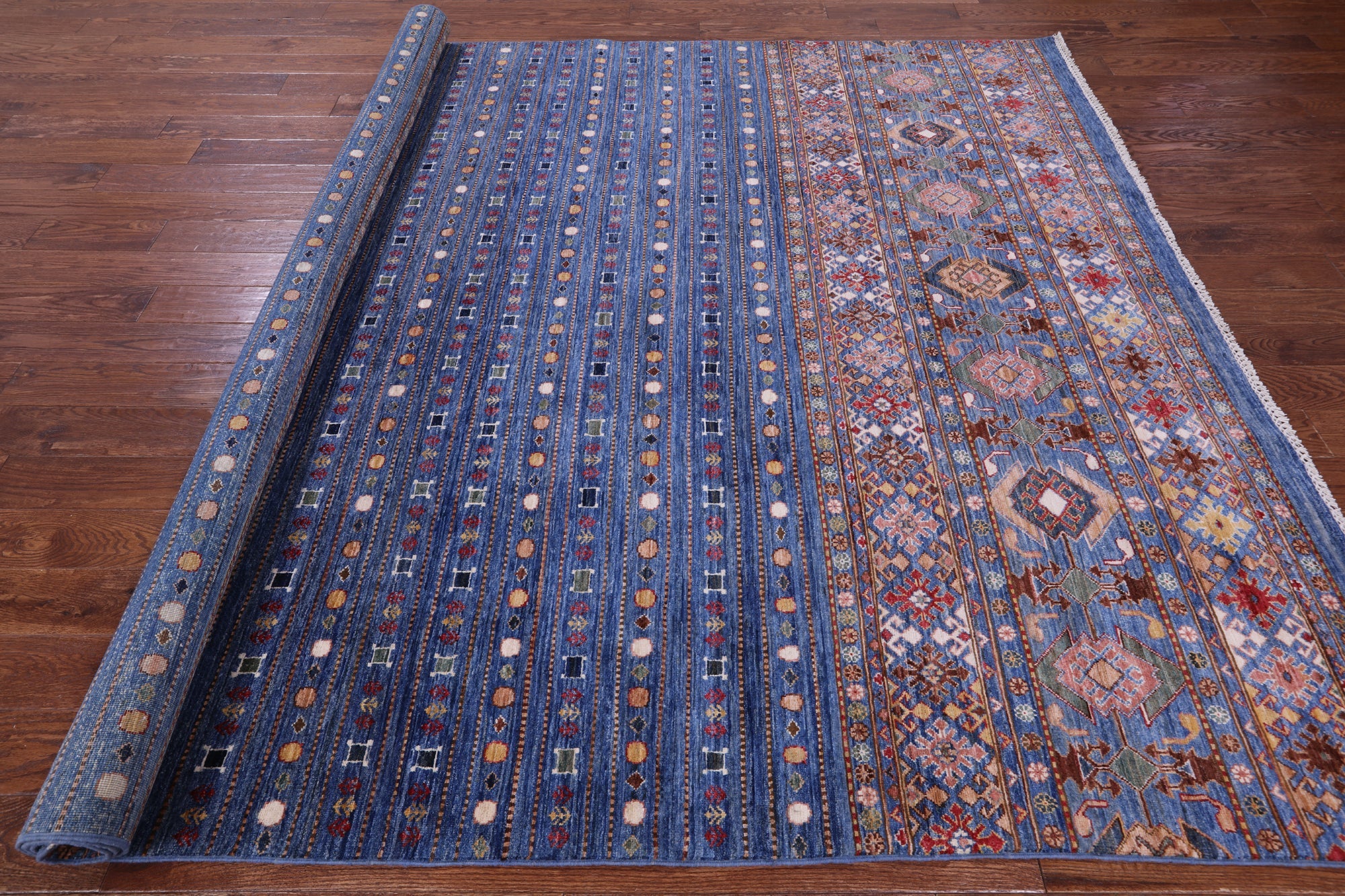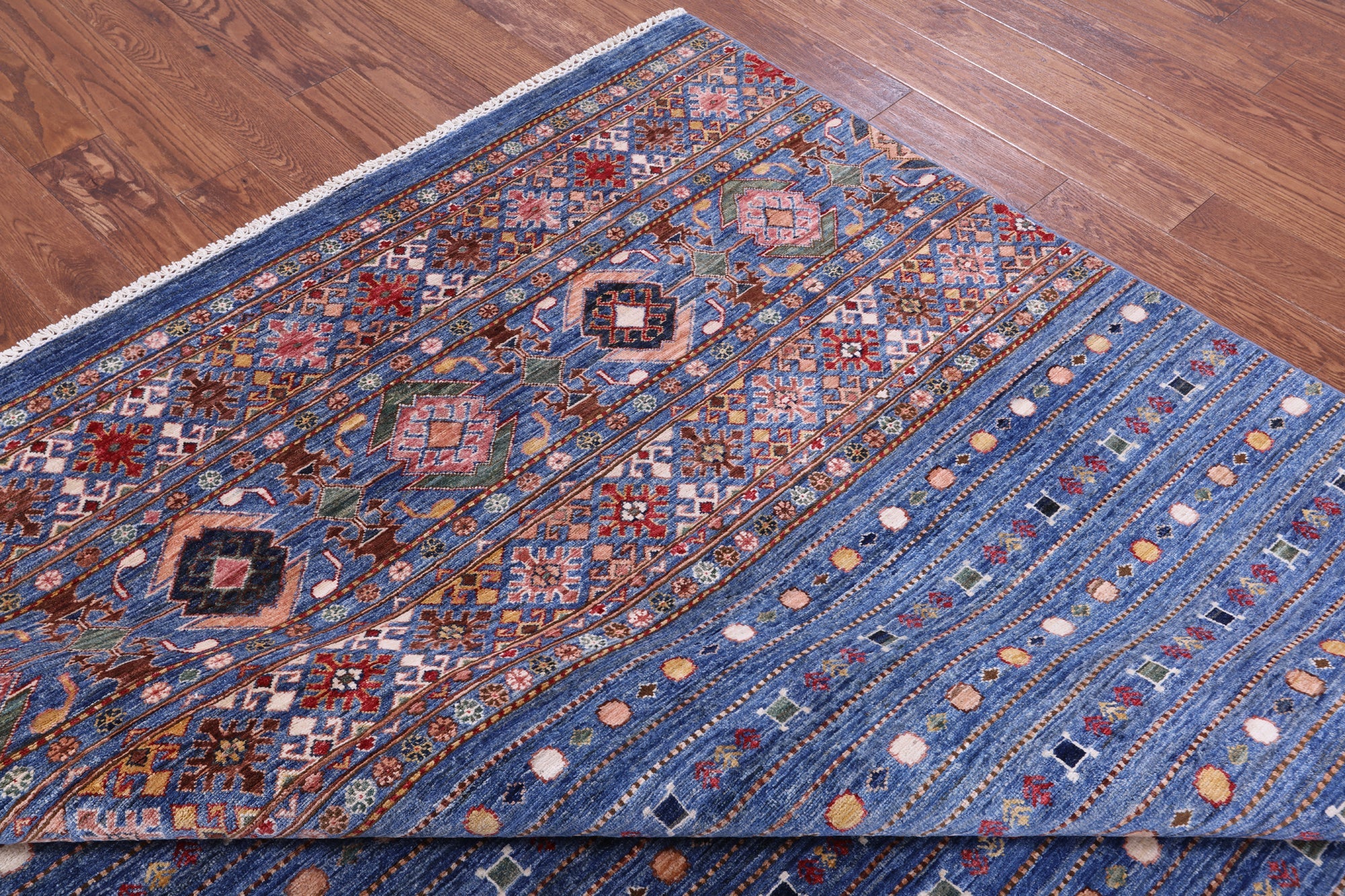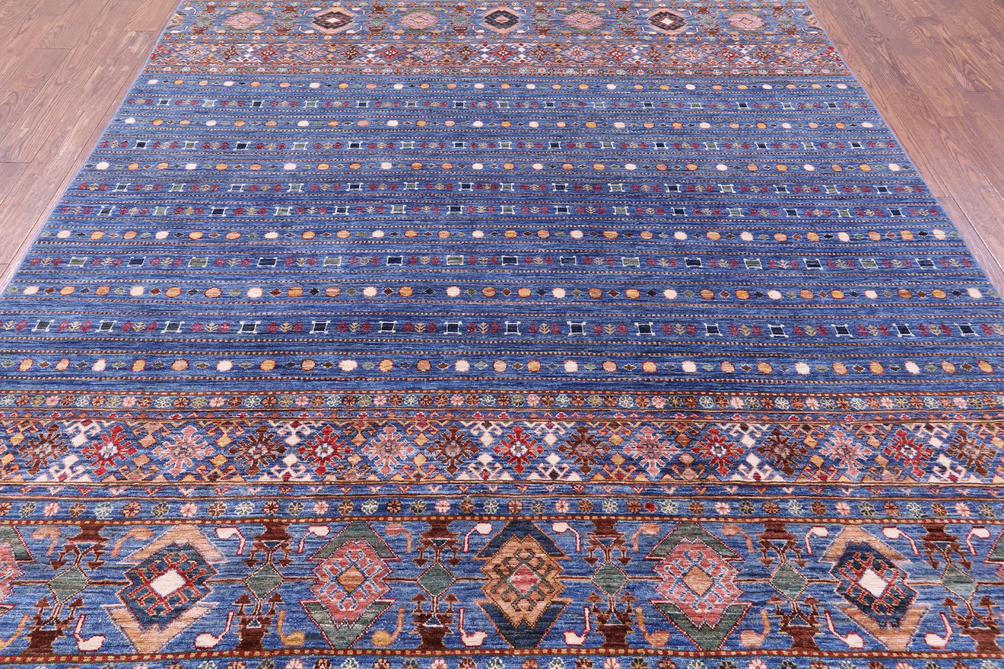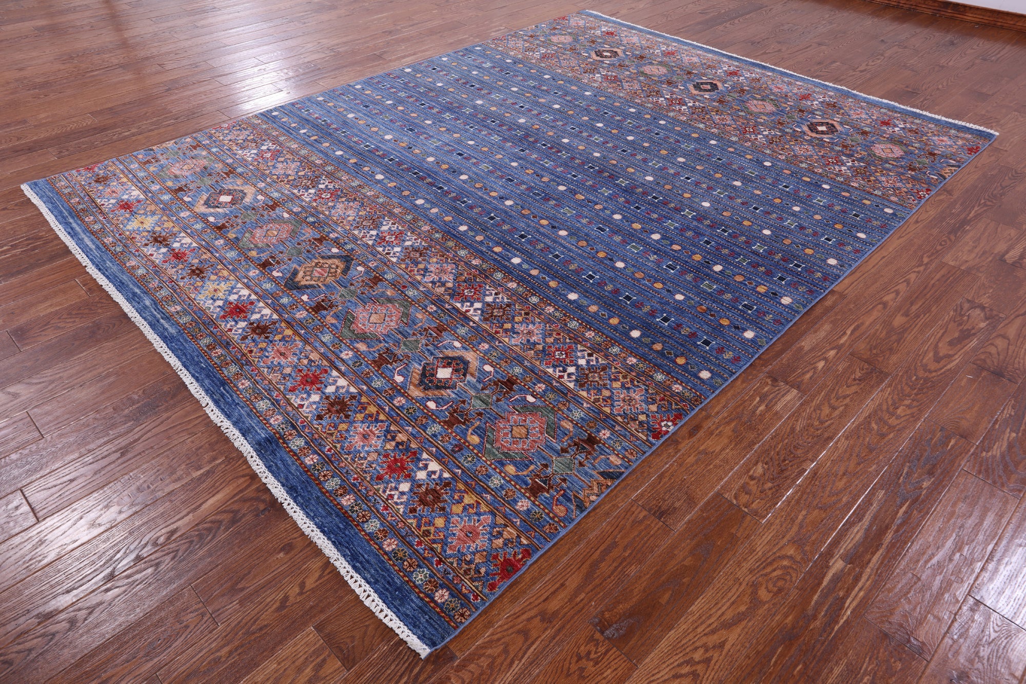 Blue 8' 2" X 10' 8" Khorjin Super Kazak Hand Knotted Wool Rug - Q14334 is backordered and will ship as soon as it is back in stock.