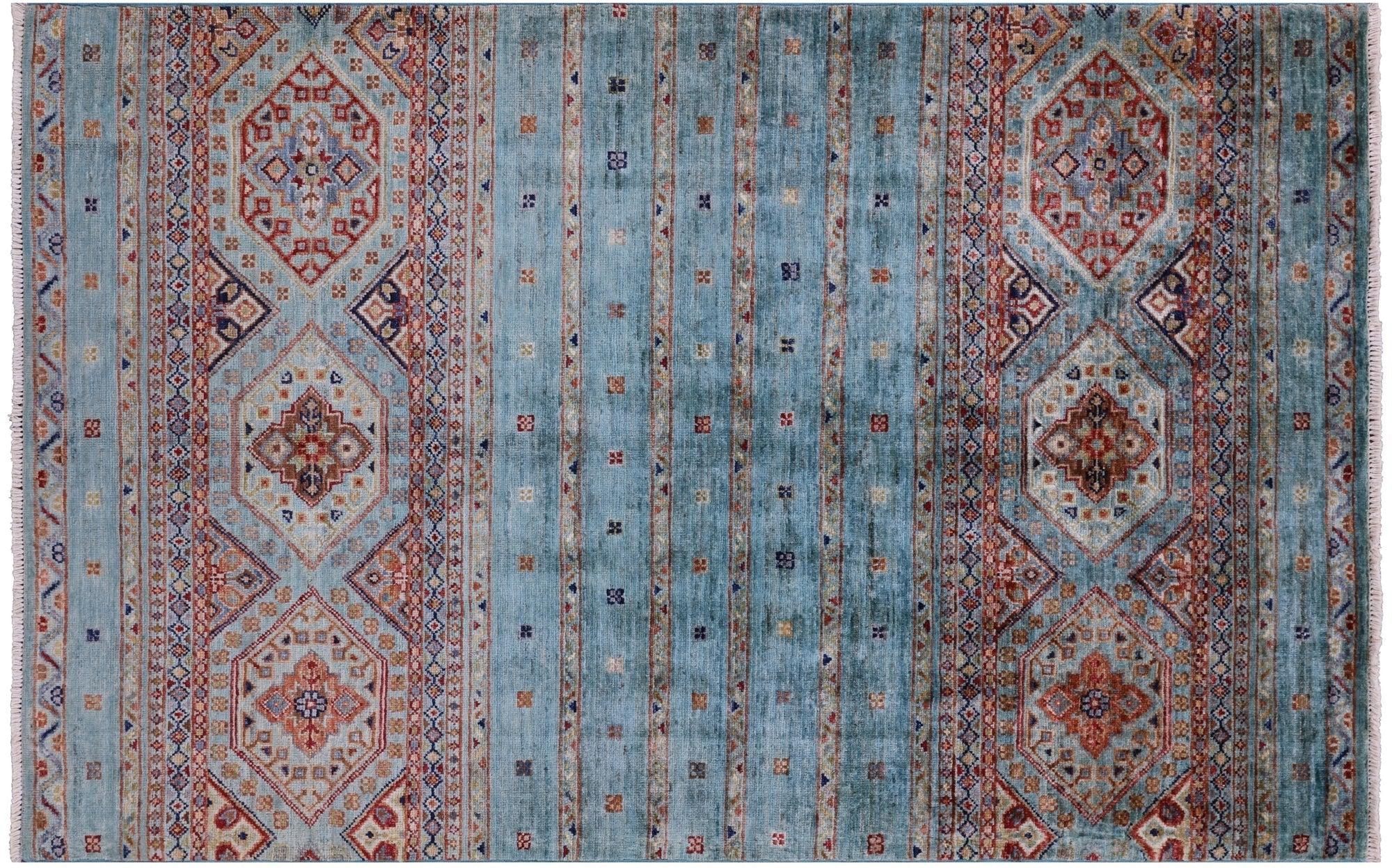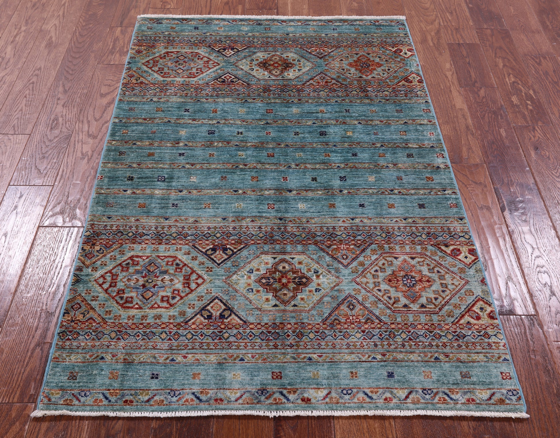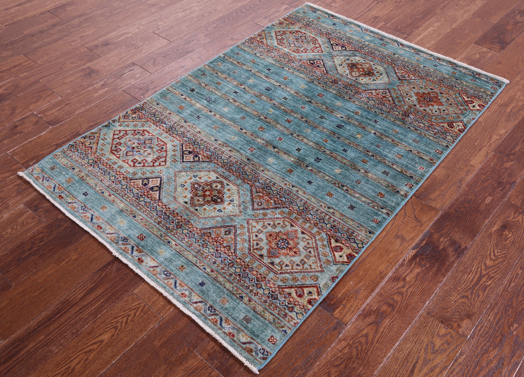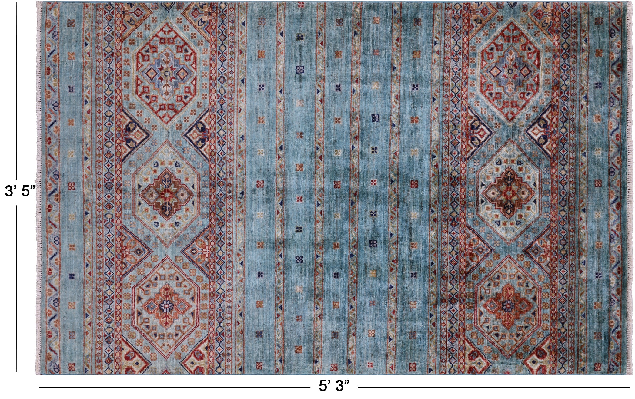 Blue Khorjin Super Kazak Hand Knotted Wool Rug 3' 5" X 5' 3" - Q21046