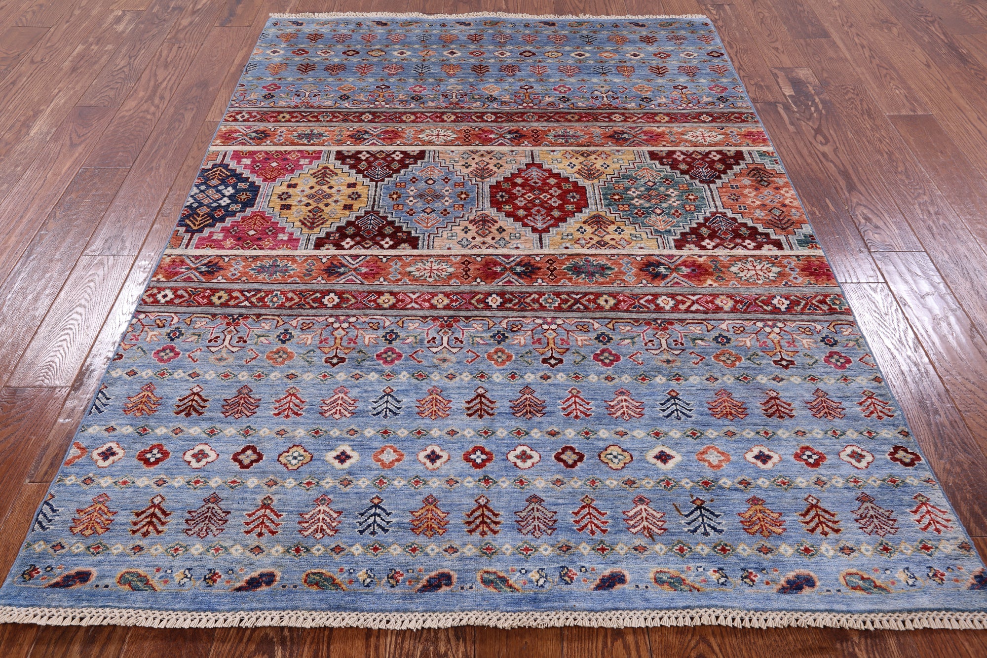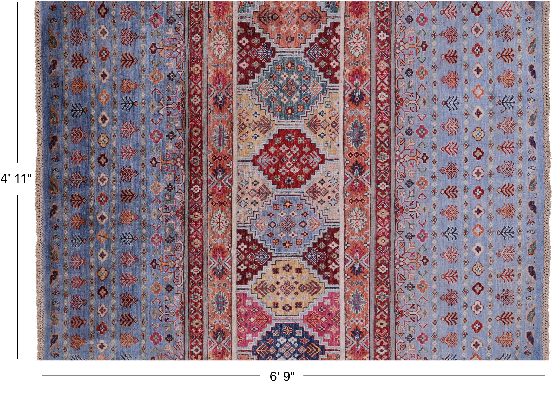 Blue 4' 11" X 6' 9" Khorjin Super Kazak Handmade Rug - Q7566
