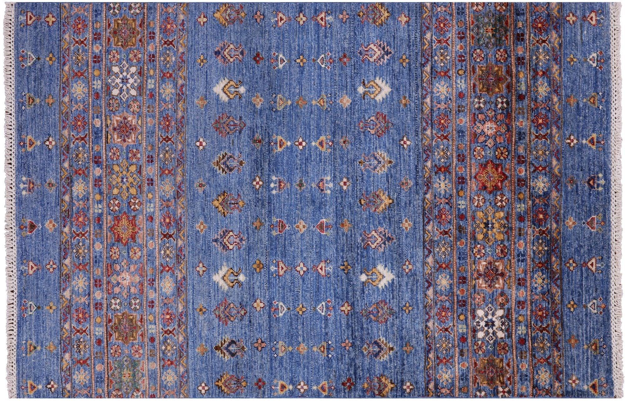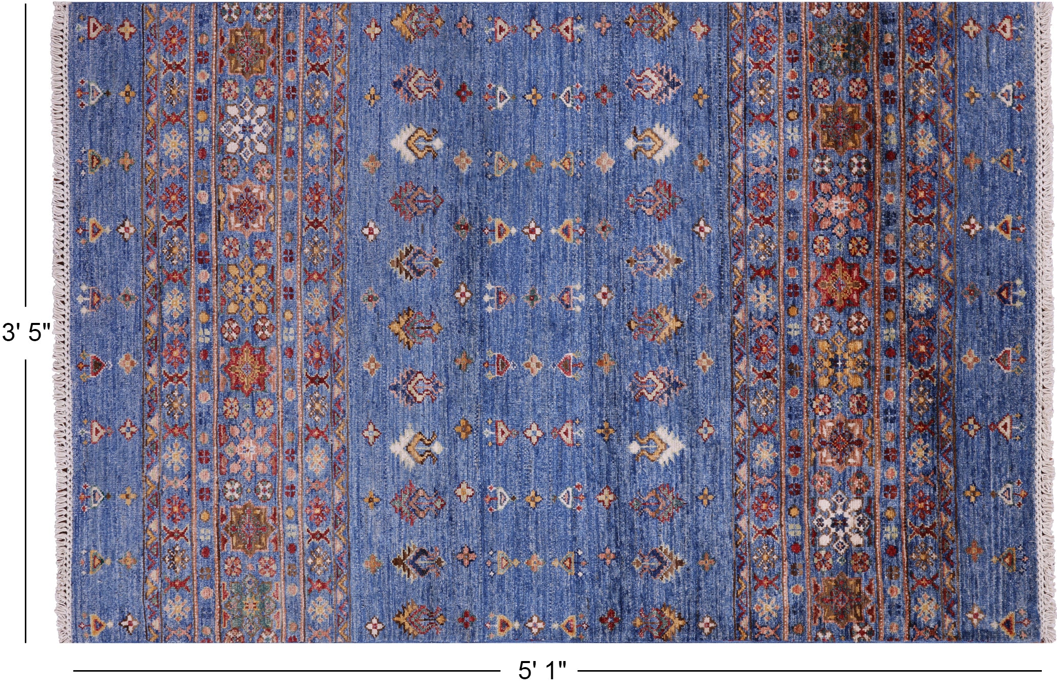 Blue 3' 5" X 5' 1" Khorjin Super Kazak Handmade Wool Rug - Q10026