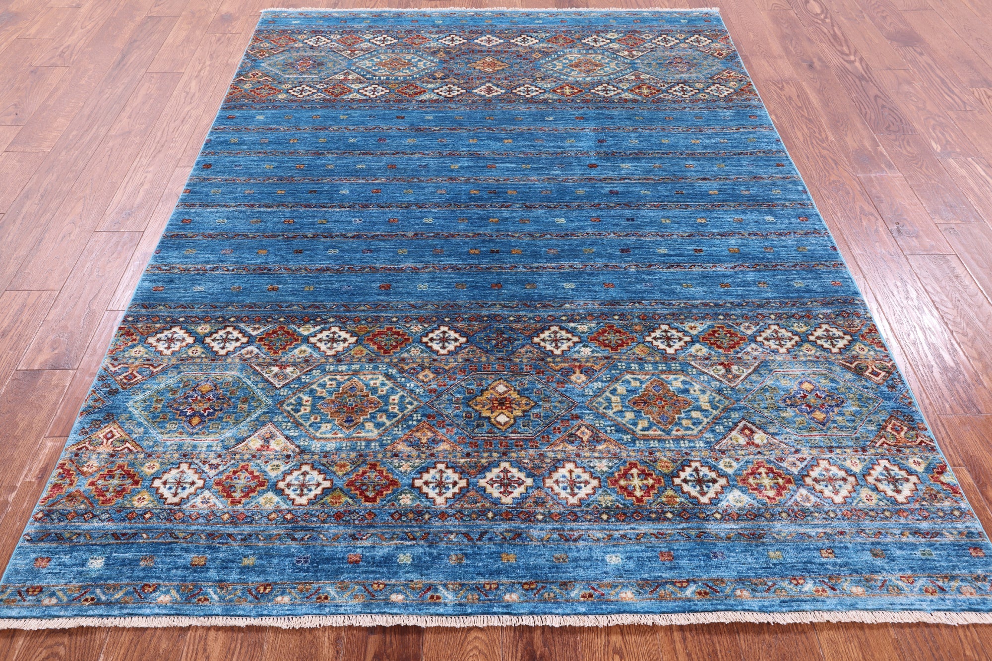 Blue Khorjin Super Kazak Handmade Wool Rug 5' 7" X 7' 6" - Q17217 is backordered and will ship as soon as it is back in stock.