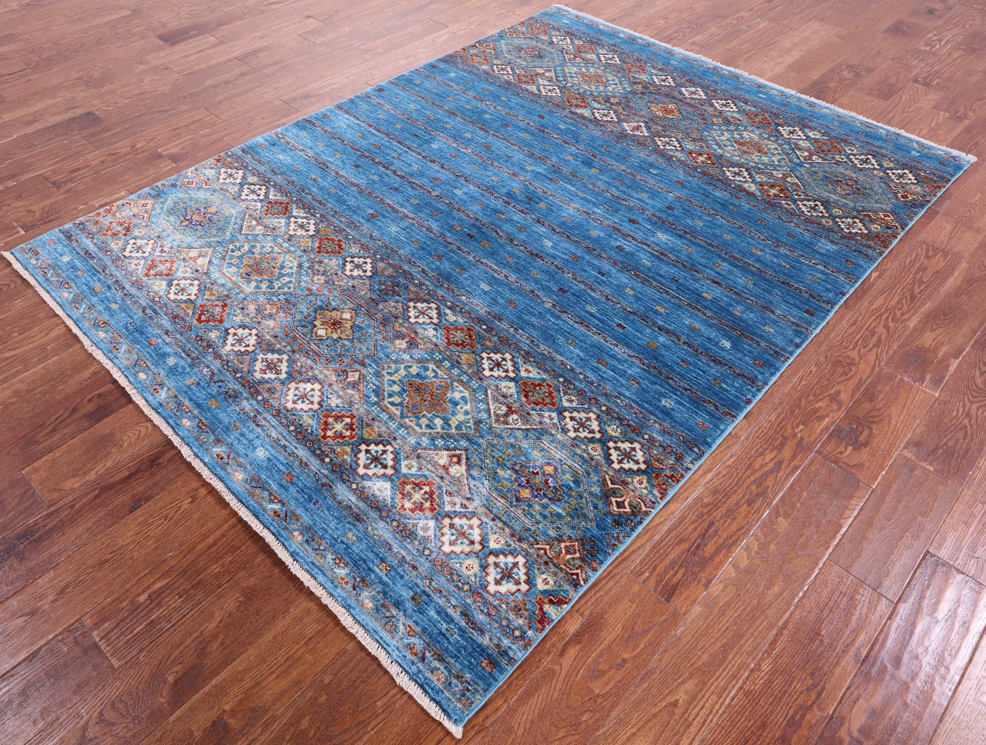 Blue Khorjin Super Kazak Handmade Wool Rug 5' 7" X 7' 6" - Q17217