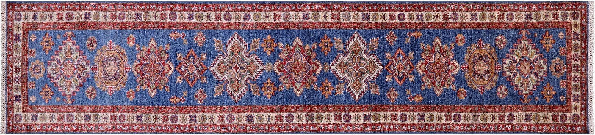 Blue Runner Handmade Super Kazak Wool Rug 2' 9" X 12' 5" - Q11233