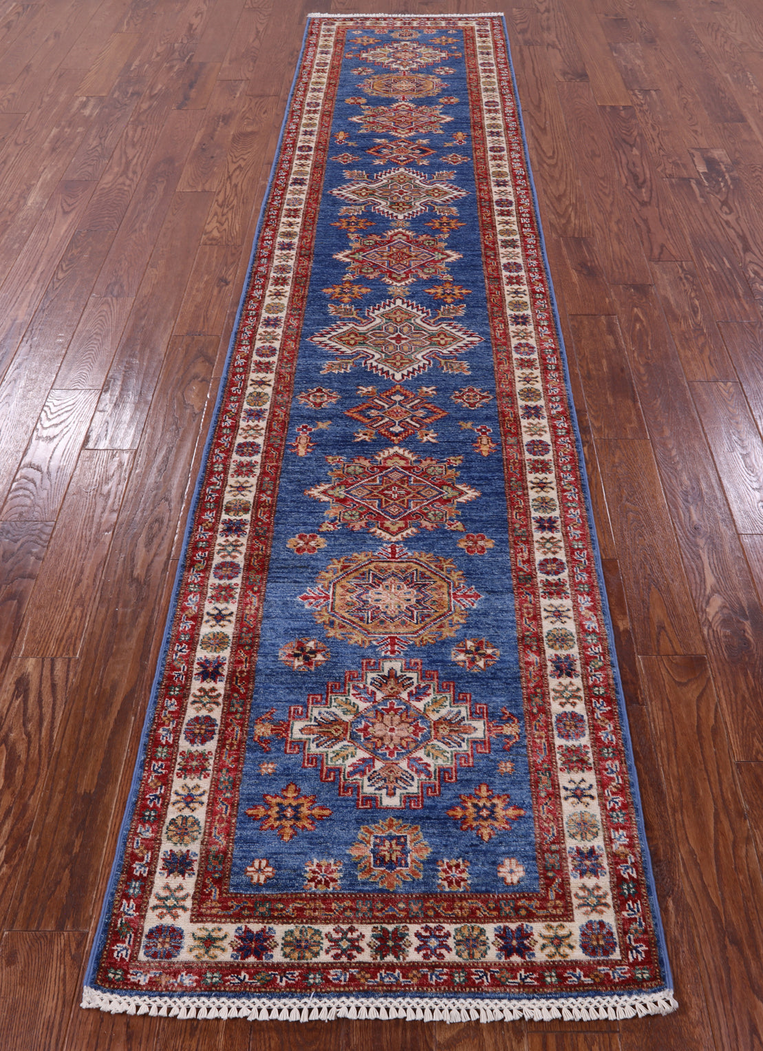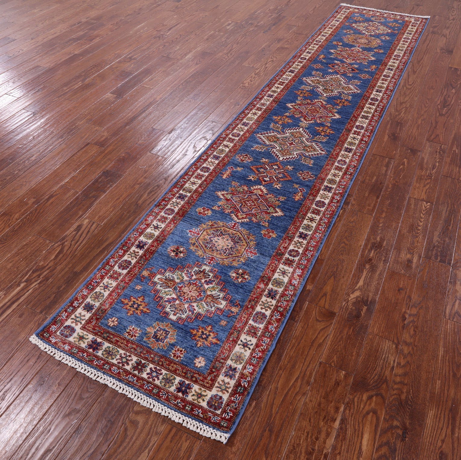Blue Runner Handmade Super Kazak Wool Rug 2' 9" X 12' 5" - Q11233 is backordered and will ship as soon as it is back in stock.